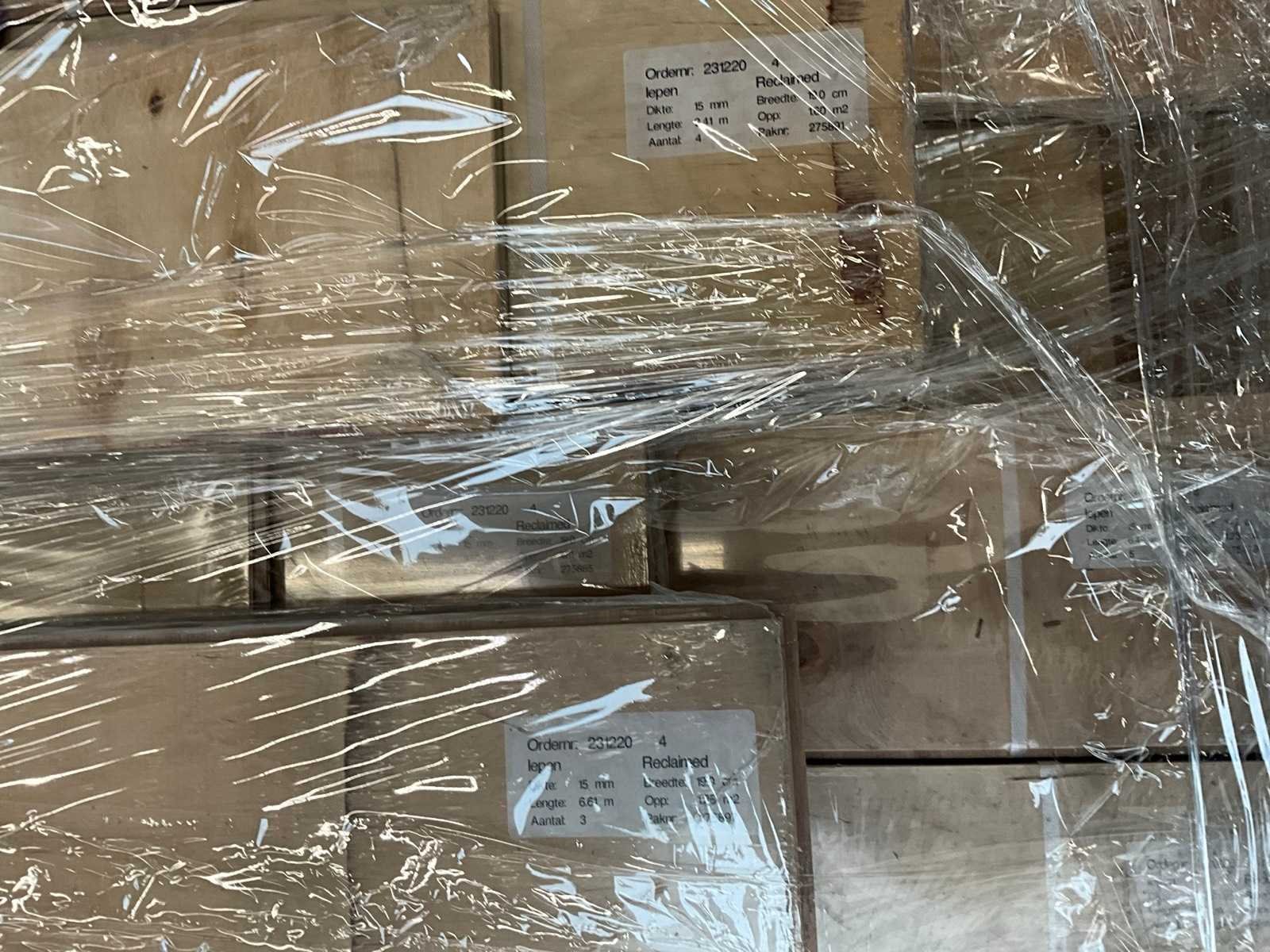 15mm dik, 120/140/160/190mm breed, diverse lengtes Product type: Multiplank oud Iepen (reclaimed) Oppervlakte: 70.16m² Afwerking: Onbehandeld Gewicht: 1000kg Lengte: 3200mm Breedte: 1200mm Hoogte: 650mm