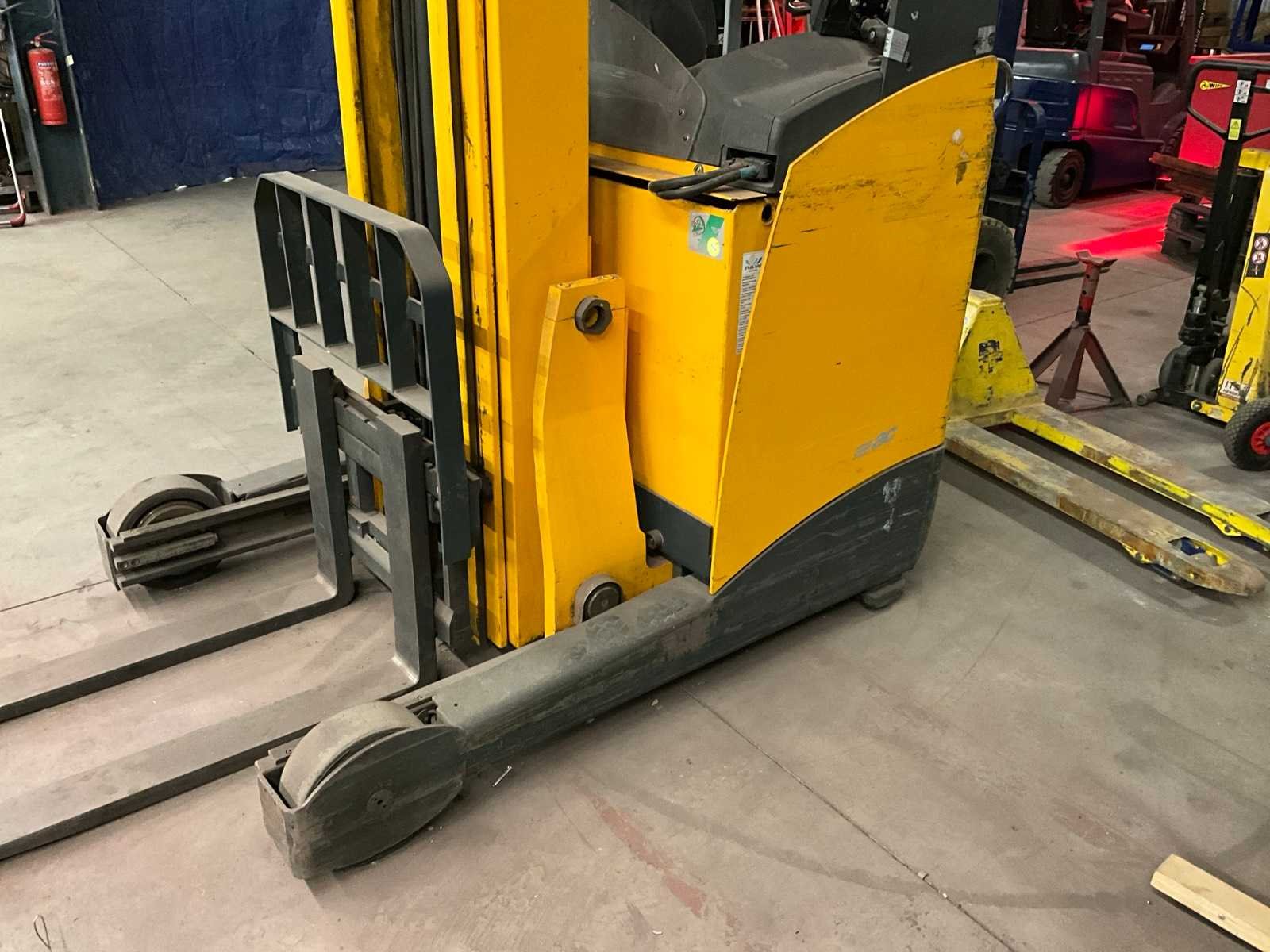 Staat in storing,zelftest error’ , werking onbekend Merk: Jungheinrich Type: ETV216 Bouwjaar: 2005 Free-lift: true Side-shift: true Triple mast: true Eigen gewicht: 3980kg Hefvermogen: 1600kg Lepellengte: 1150mm Hefhoogte: 9410mm Minimale doorrijhoogte: 3650mm Totale afmeting L: 2500mm Totale afmeting Breedte: 1280mm Totale afmeting Hoogte: 3650mm Elektrisch: true Vol rubber banden: true