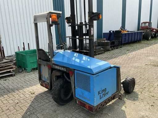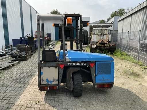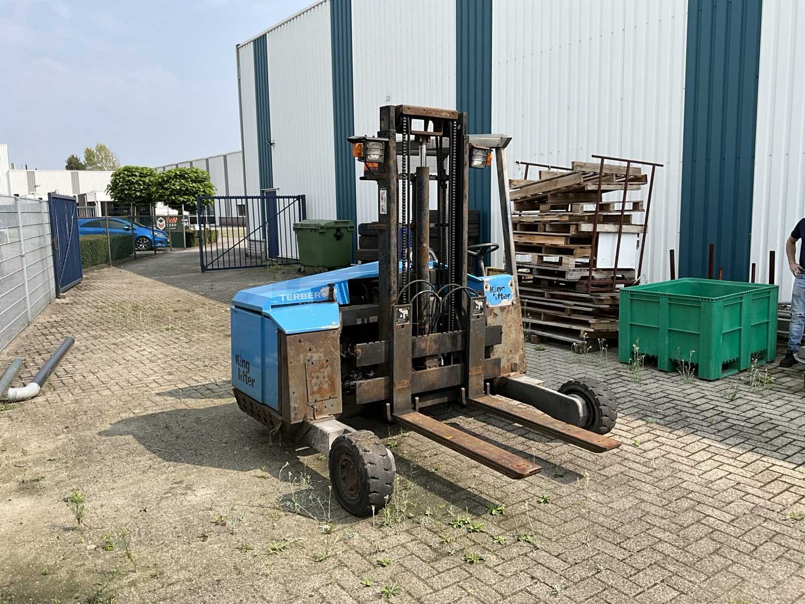 Voorzien van uitschuifbare vorken tot maximaal 210 cm, verlichting, Merk: Terberg Type: TKL-3x3-M Bouwjaar: 2004 Serienummer: 21040600 Diesel: true Aantal wielen: 3 Hefvermogen: 2000kg Hefhoogte: 2950mm Lepellengte: 1200mm Duplex mast: true Vol rubber banden: true Afgelezen urenstand: 1687 Eigen gewicht: 1808kg Totale afmeting Breedte: 2250mm Totale afmeting Hoogte: 2200mm