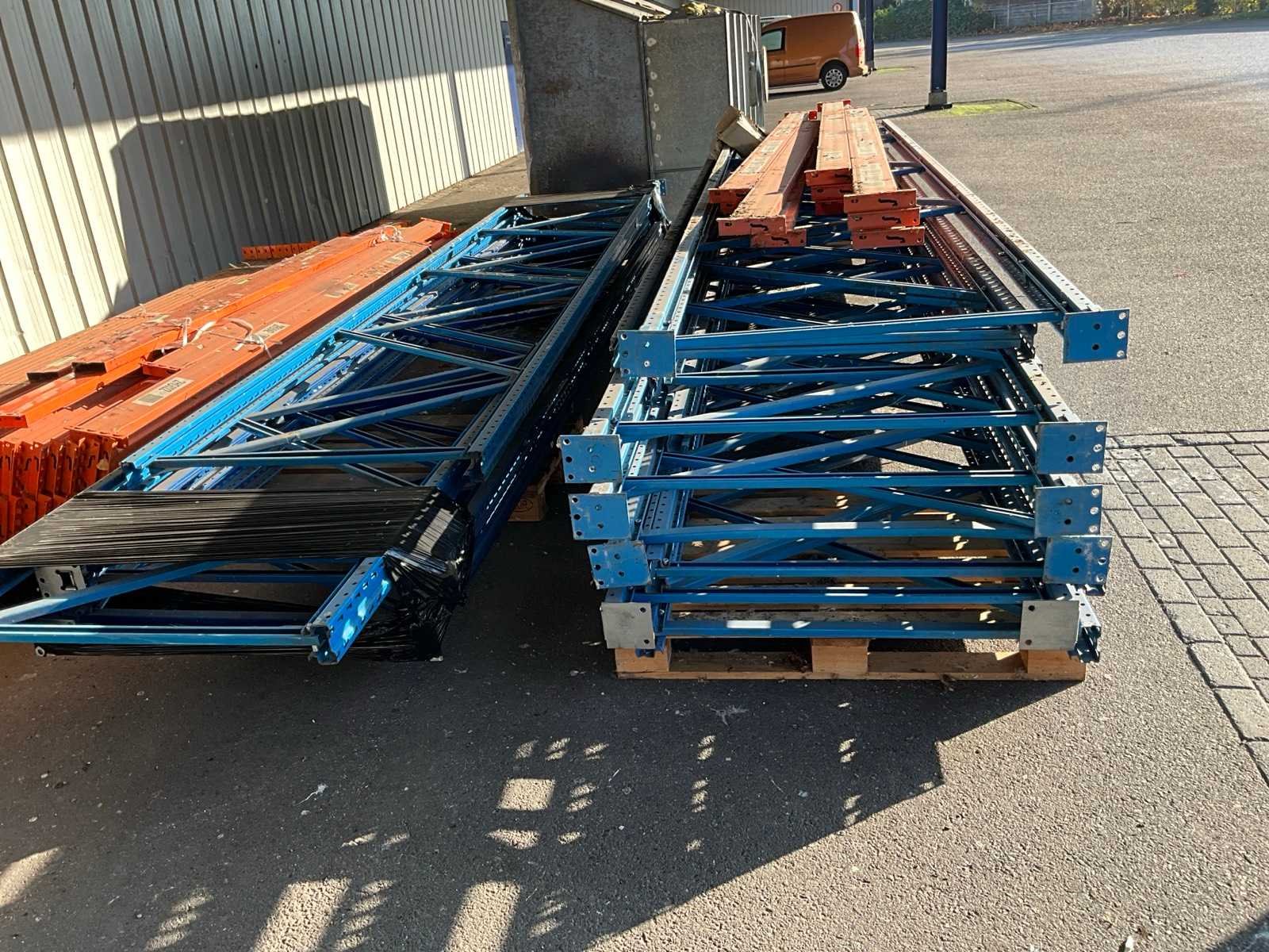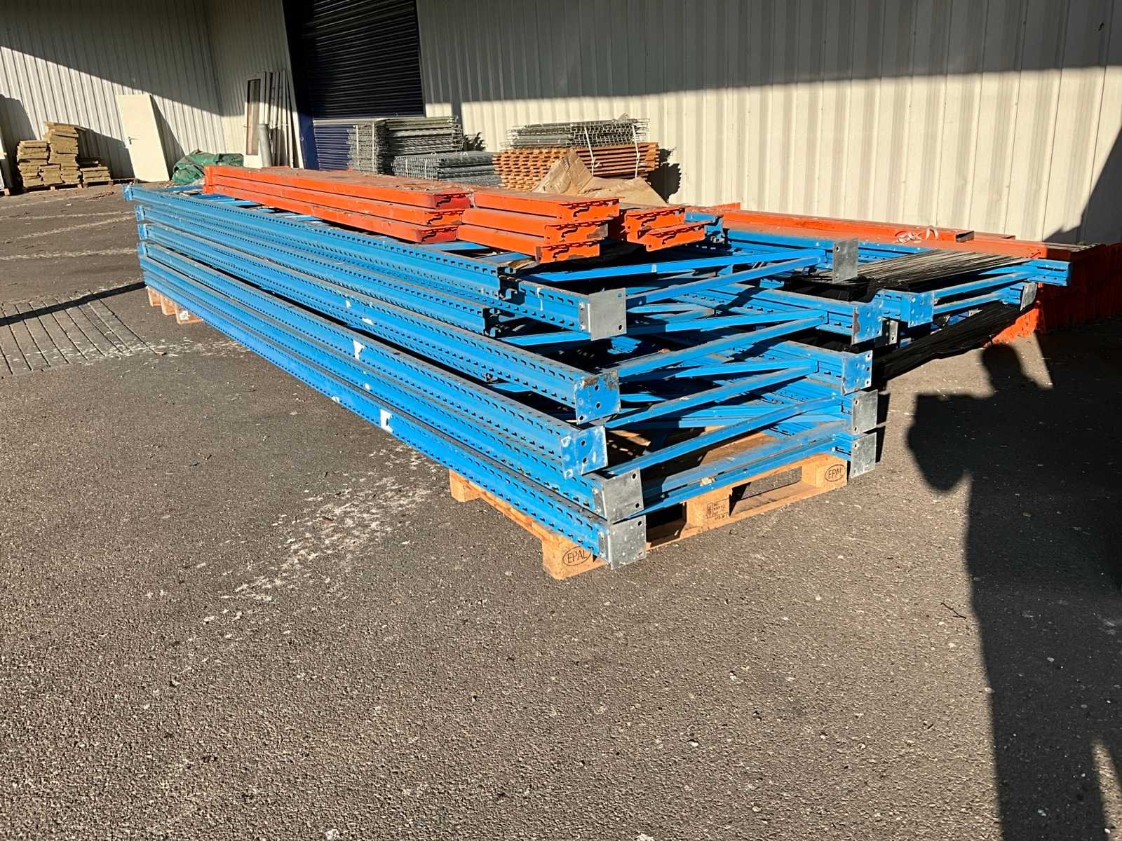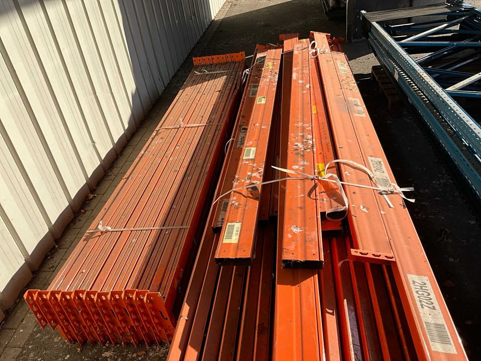 Waaronder 15 staanders hoogte van 610 tot 550 cm diepte 119 cm, circa 30 liggers met lengte 430 cm, 22 liggers met lengte 360 cm en 4 pallets met vlonders en stellingroosters