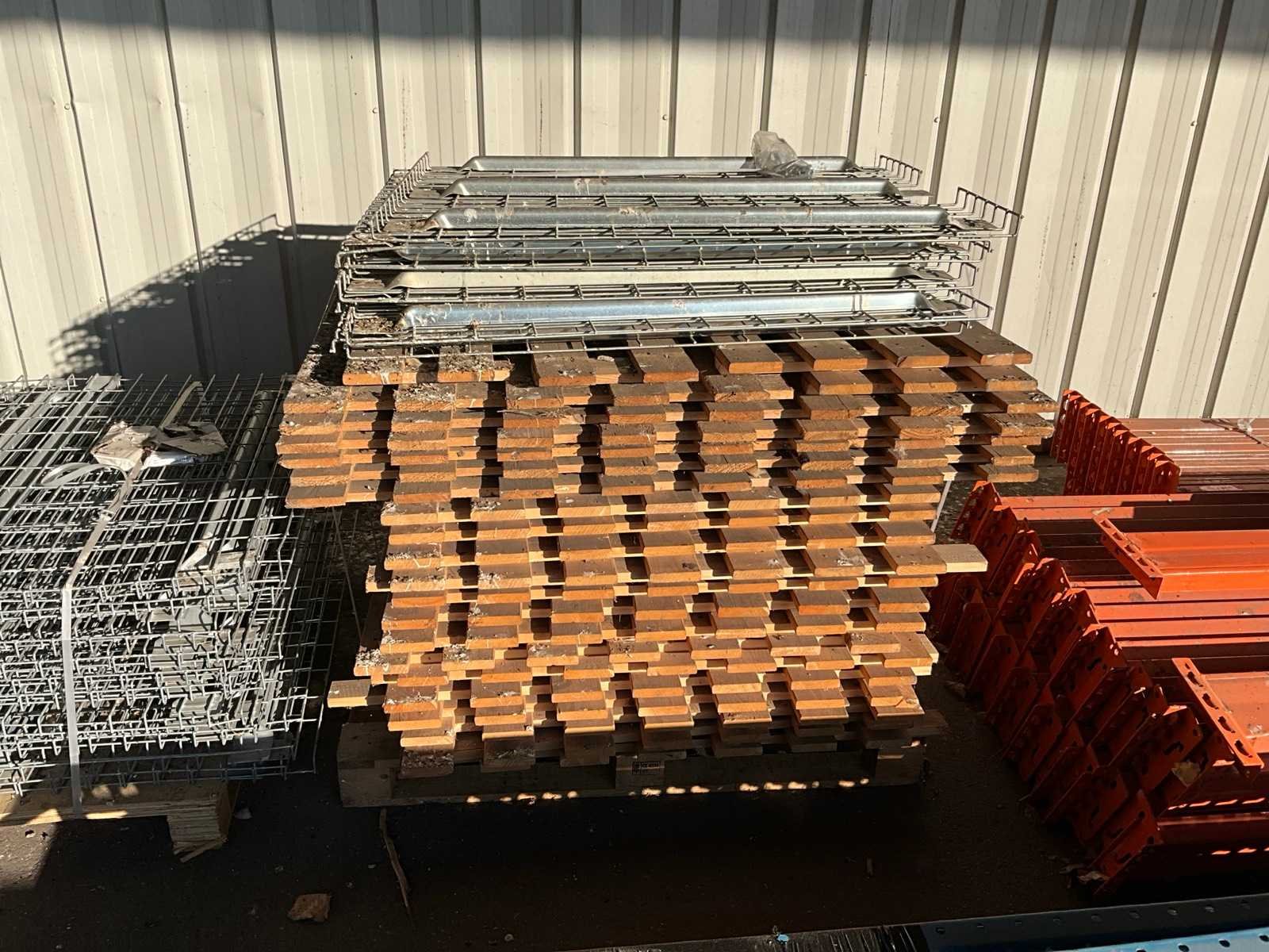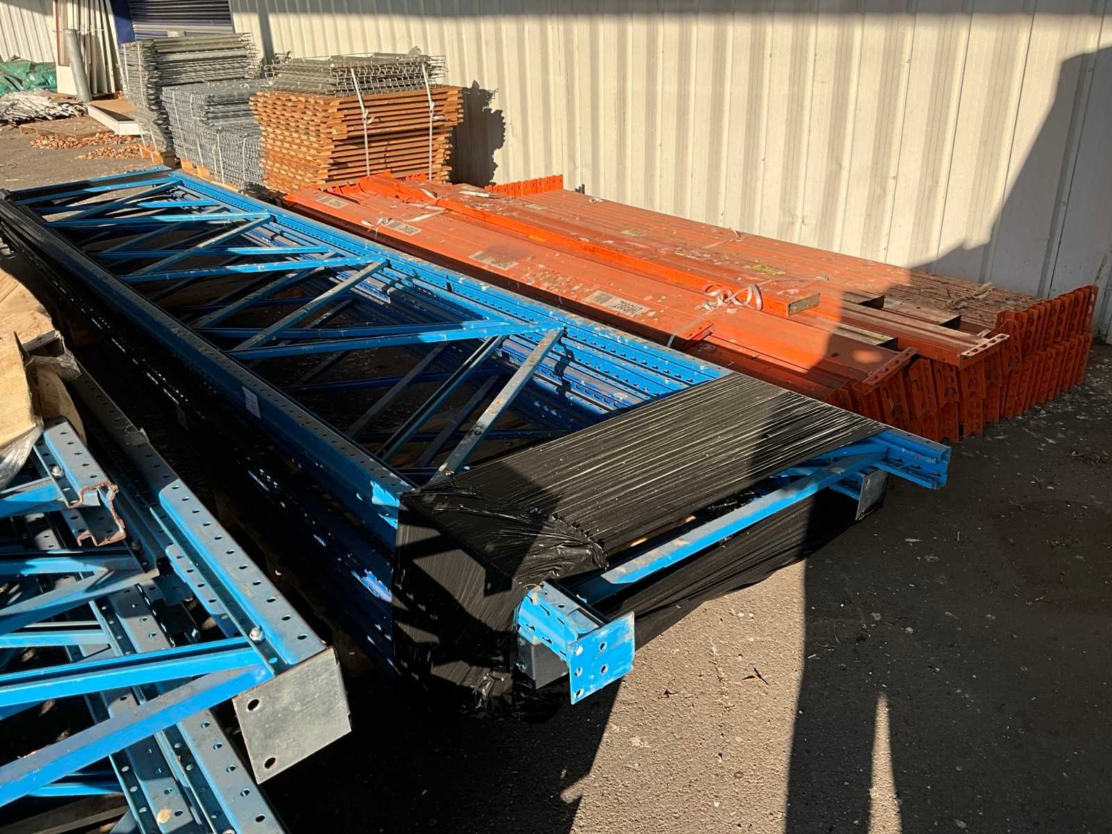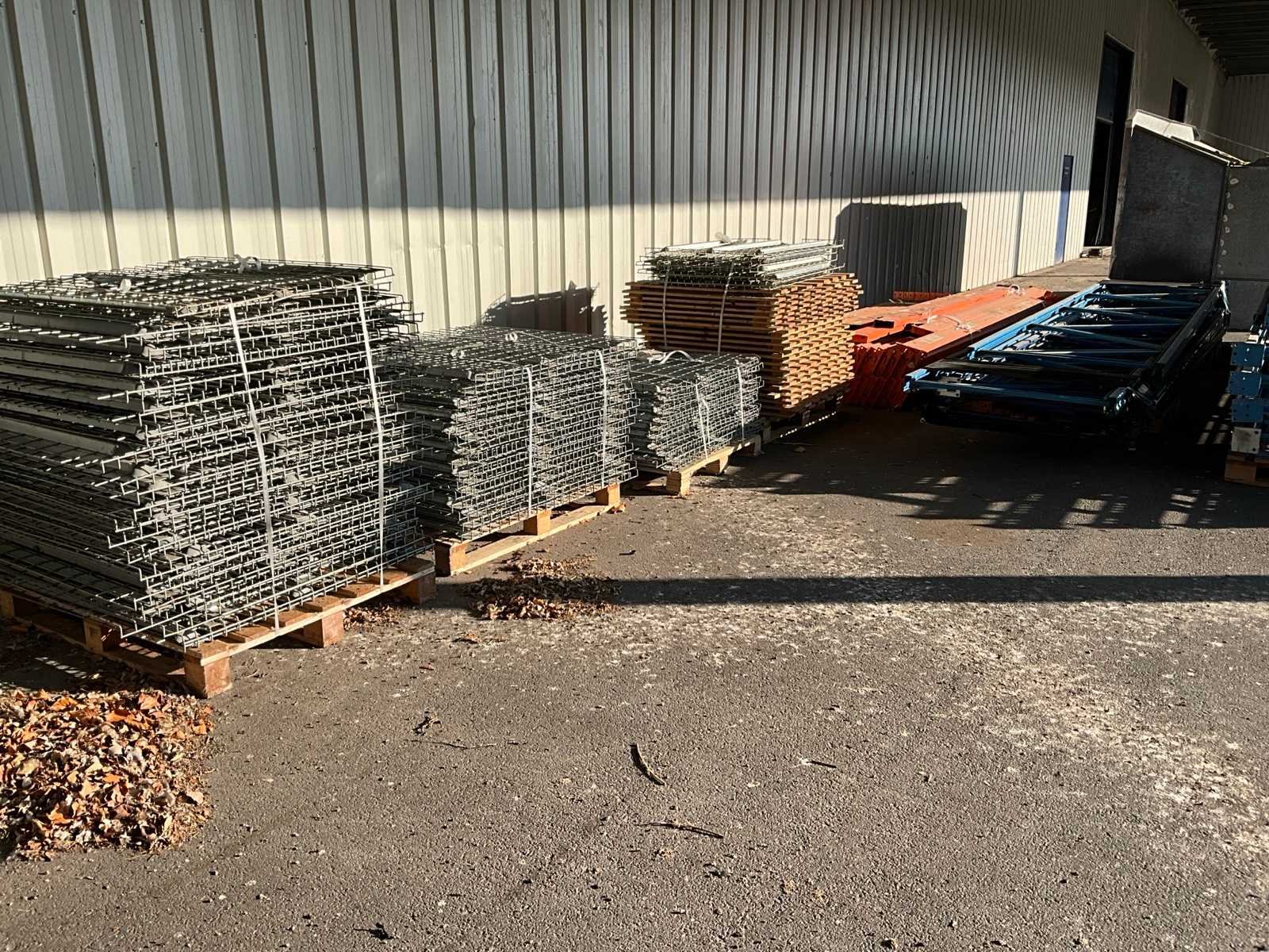 Waaronder 15 staanders hoogte van 610 tot 550 cm diepte 119 cm, circa 30 liggers met lengte 430 cm, 22 liggers met lengte 360 cm en 4 pallets met vlonders en stellingroosters