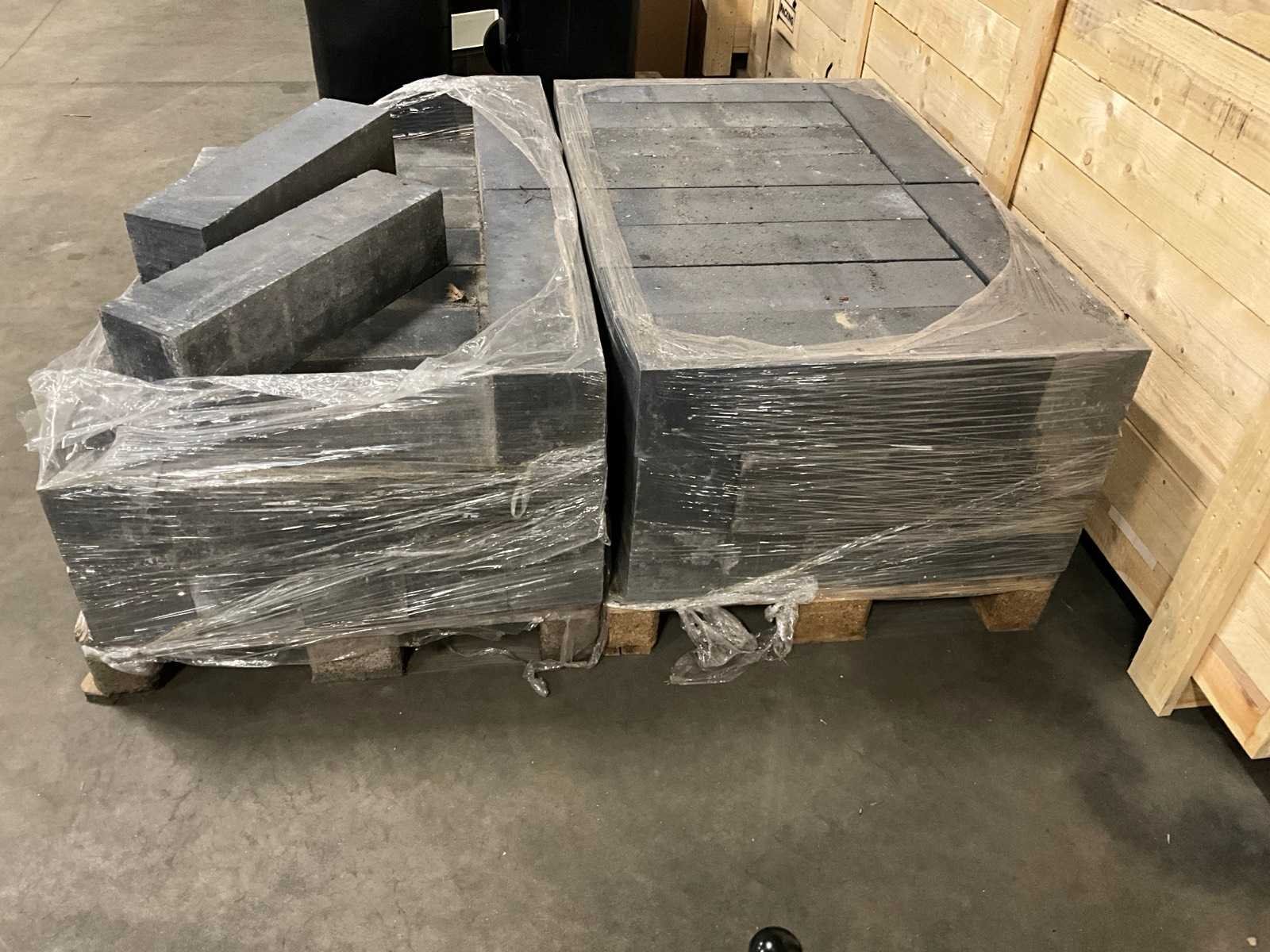 Totaal circa 54 stuks op 2 pallets Merk: Beton Kleur: Antraciet Lengte: 60cm Breedte: 15cm Dikte: 150mm