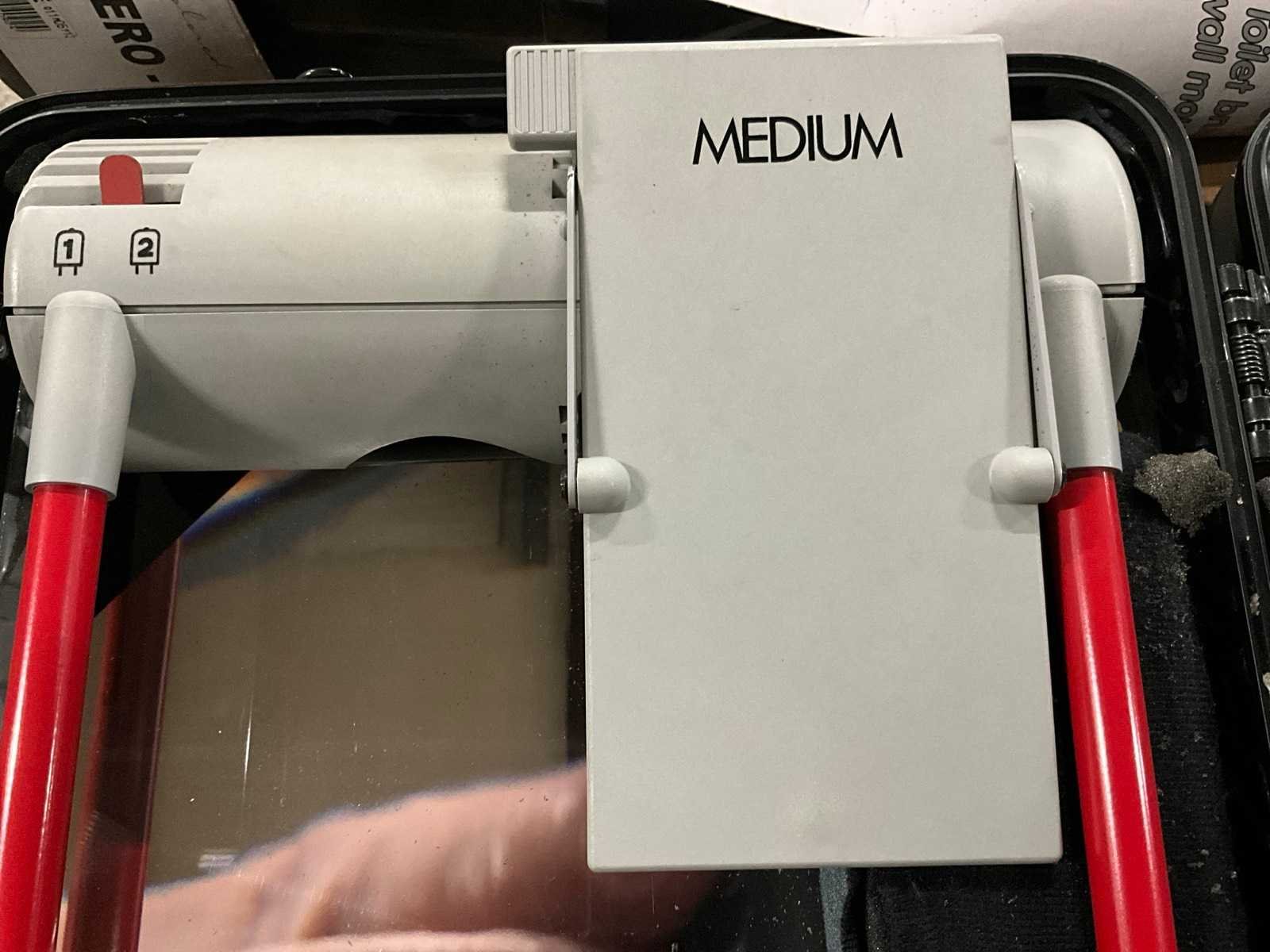 Met transportkoffer en diverse toebehoren Merk: Medium Type: Traveller 3 Gewicht: 7.2kg Lengte: 46cm Breedte: 30cm Hoogte: 9.5cm