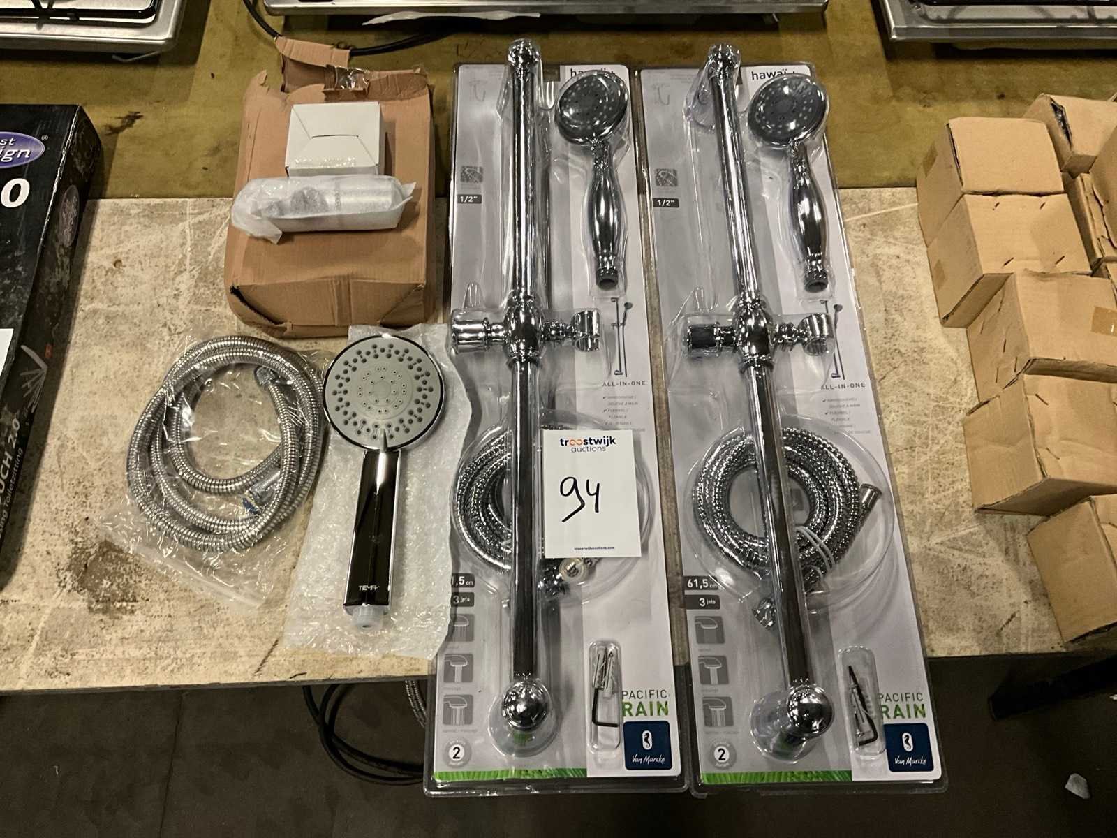 Waaronder 2 stuks complete douche set en 1 stuks handdouchekop met toebehoren.