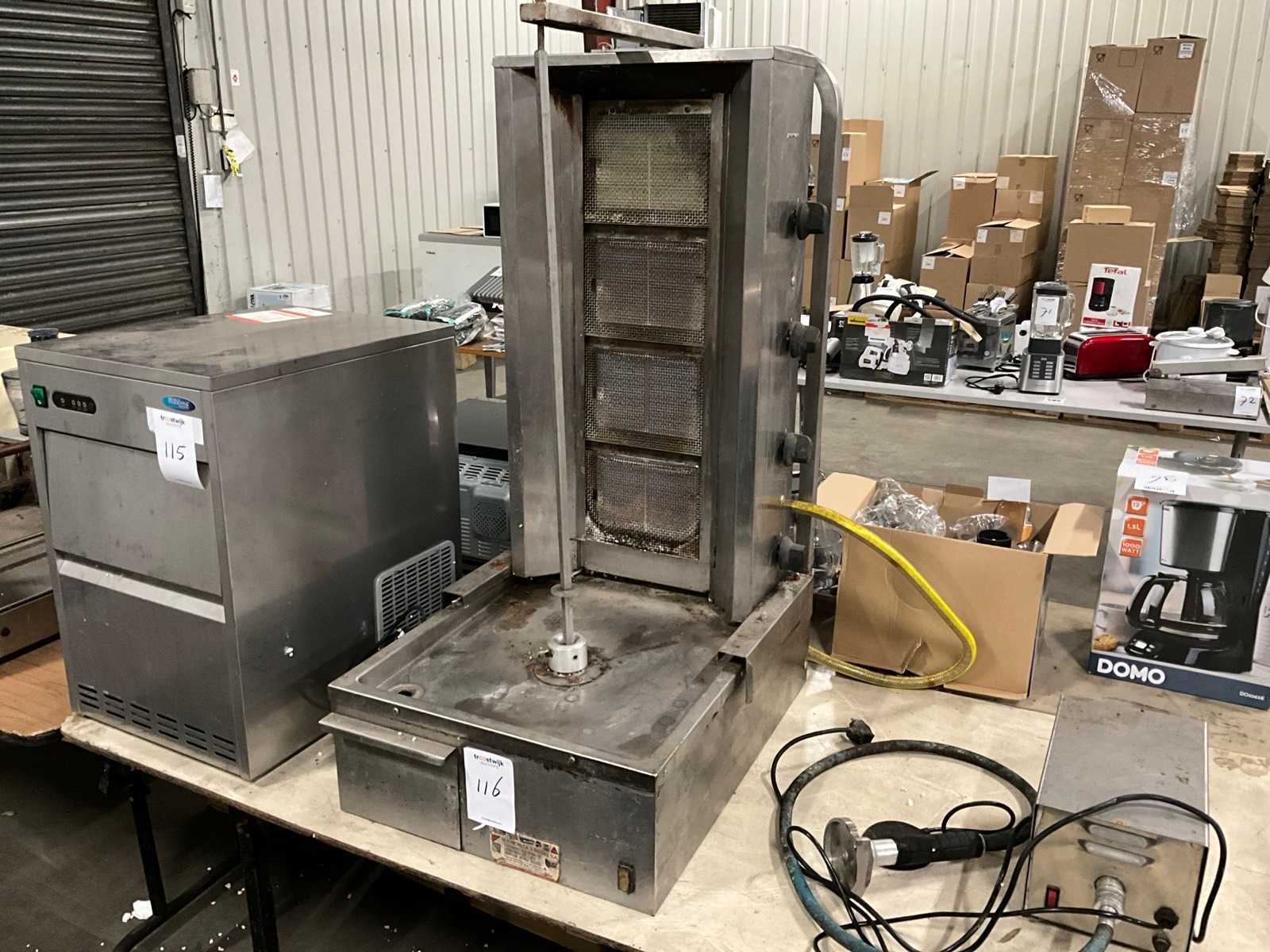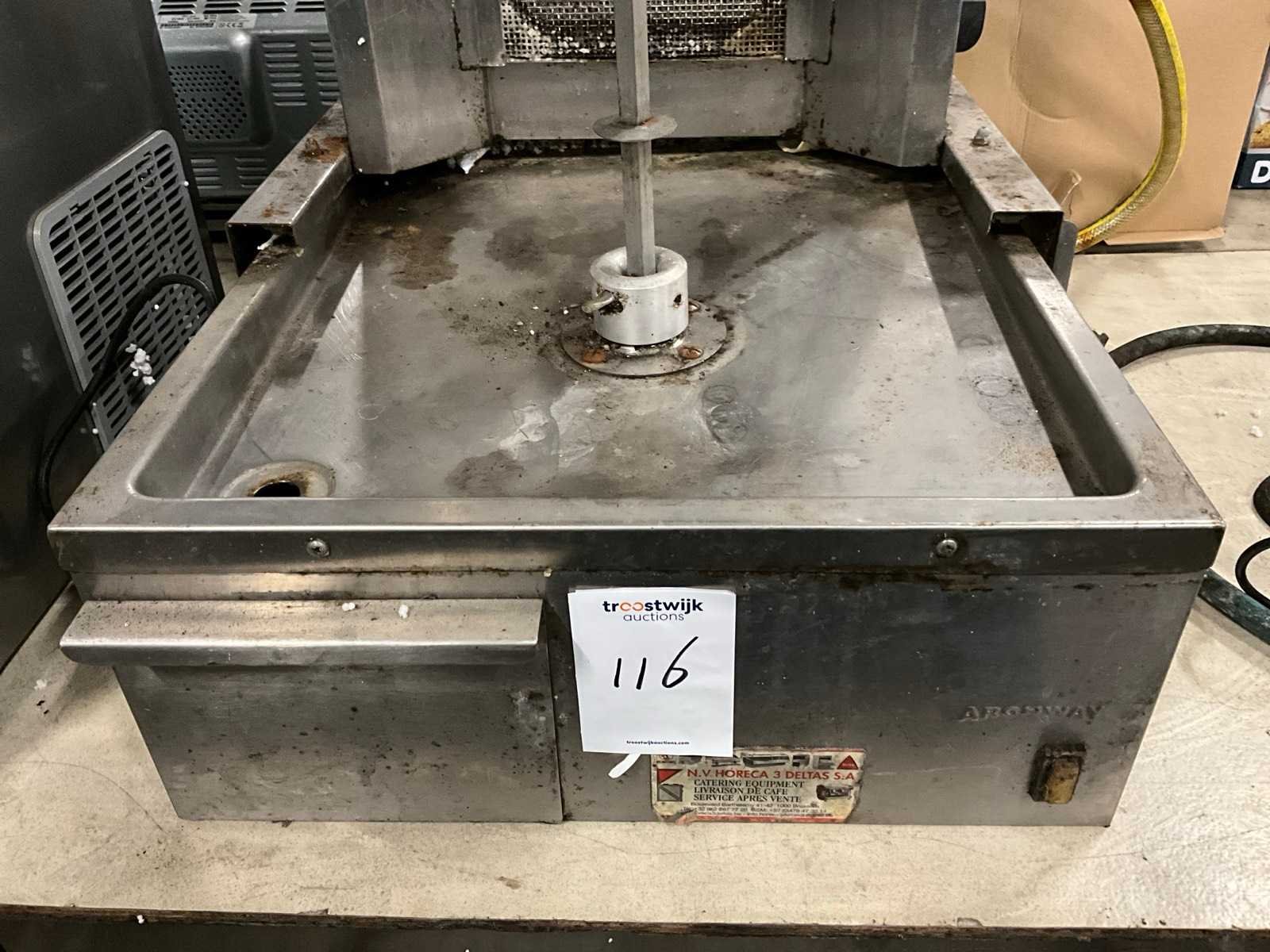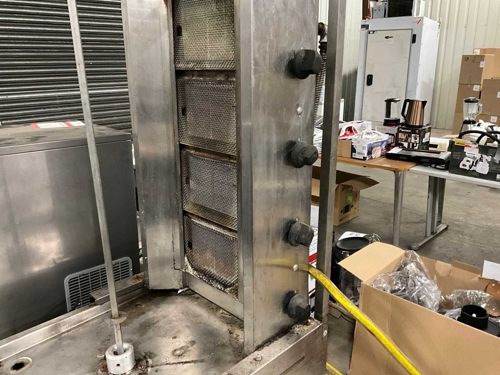 Voorzien van 4 instelbare grillworst en elektrisch aangedreven donersnijapparaat Merk: Archway Type: 4B STD/NG Gasgestookt: true Aansluiting: 220V Totale afmeting L: 650mm Totale afmeting Breedte: 500mm Totale afmeting Hoogte: 1100mm