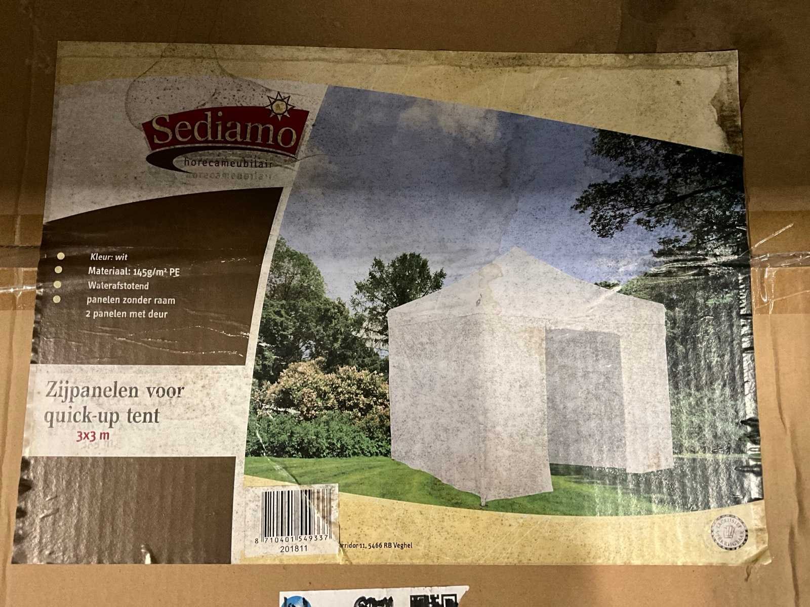 Ongebruikt in verpakking Merk: Sediamo Model: 3x3 Product type: Zijpanelen quick up tent