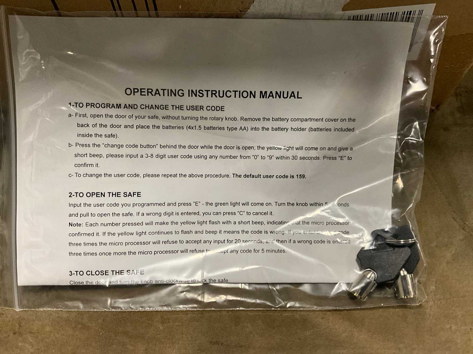 Ongebruikt in verpakking Merk: VDT Model: Elektronic safe Product type: 120968c Lengte: 20cm Breedte: 31cm Hoogte: 20cm