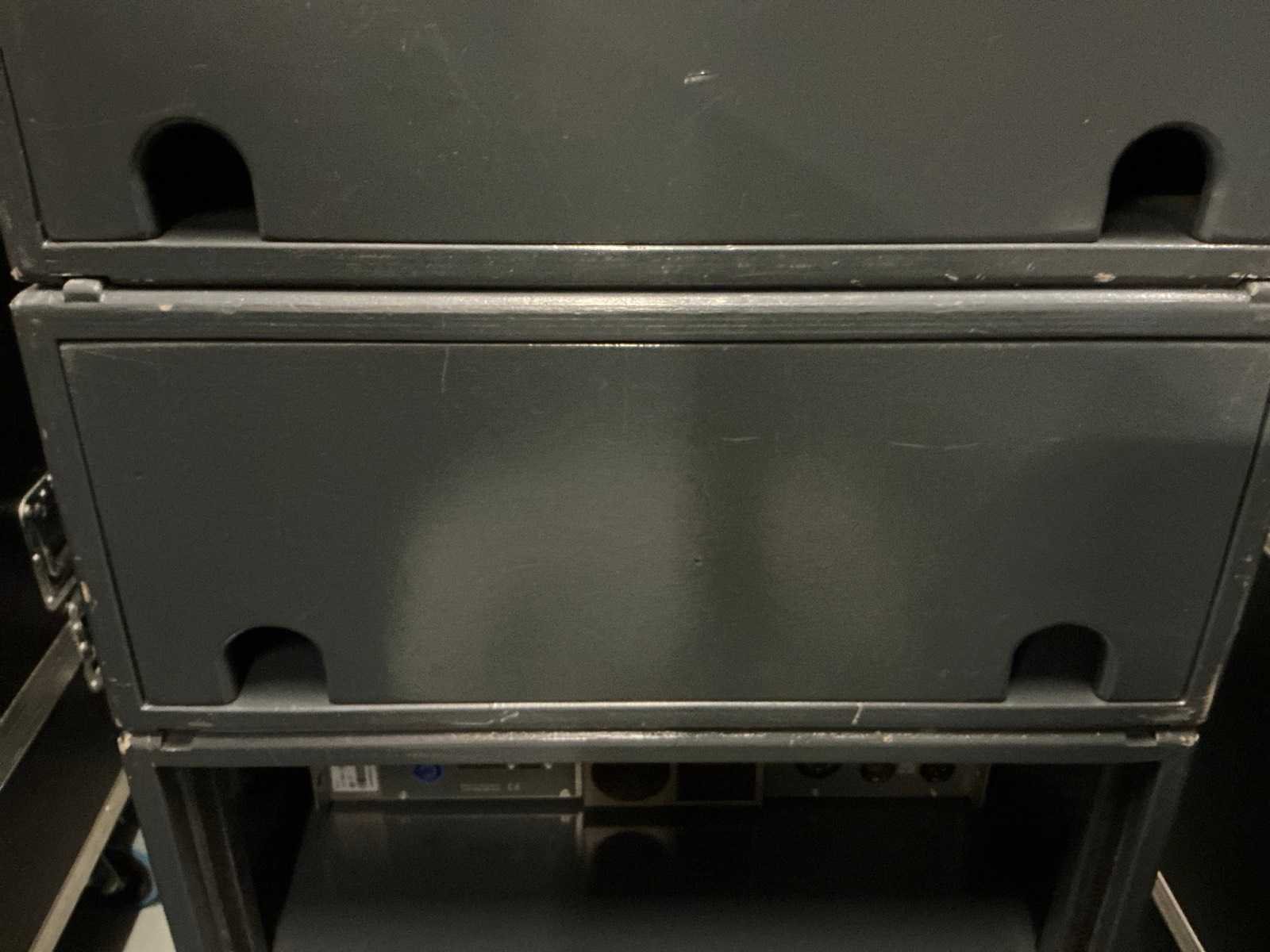 2x 1200W versterker op EP5 in rack; in case (107x39x124cm) Merk: D&B Audiotechnik