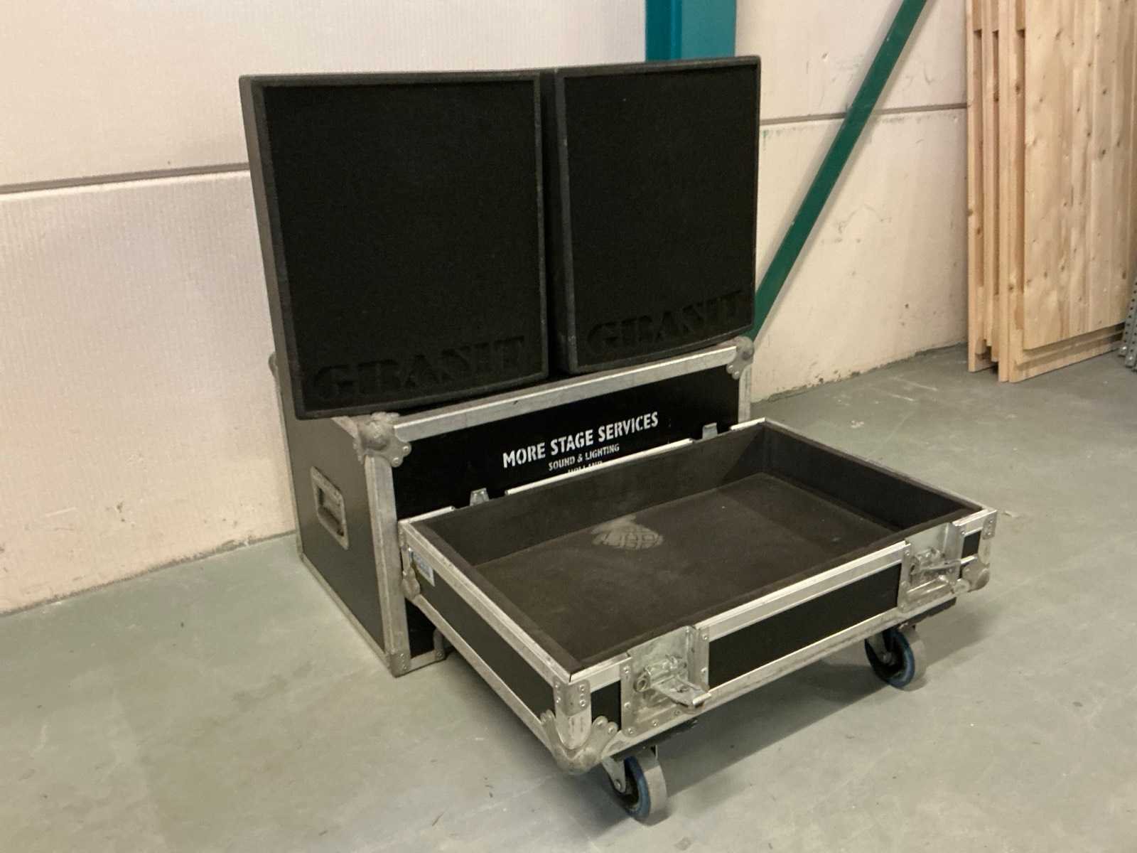 12"+ 2"coaxiale monitor in case; Merk: Granit Wattage: 350W Lengte: 47cm Breedte: 74cm Hoogte: 69cm