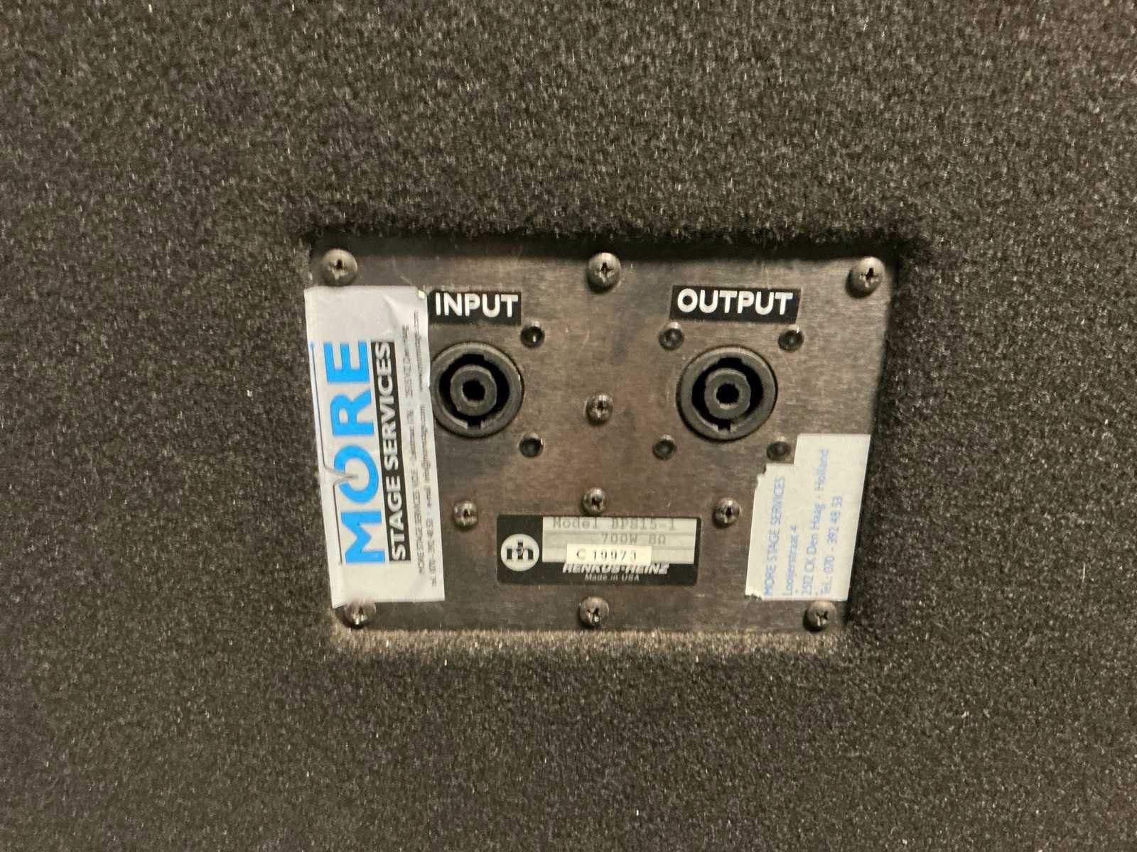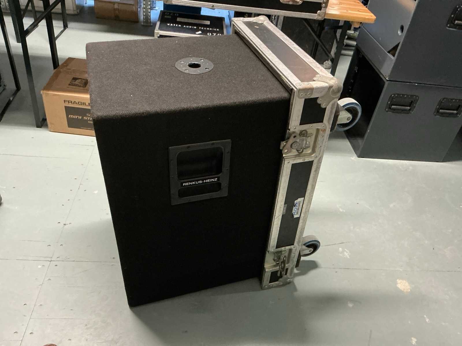 15"subwoofer in case Merk: Renkus-Heinz Wattage: 800W Lengte: 54cm Breedte: 46cm Hoogte: 77cm