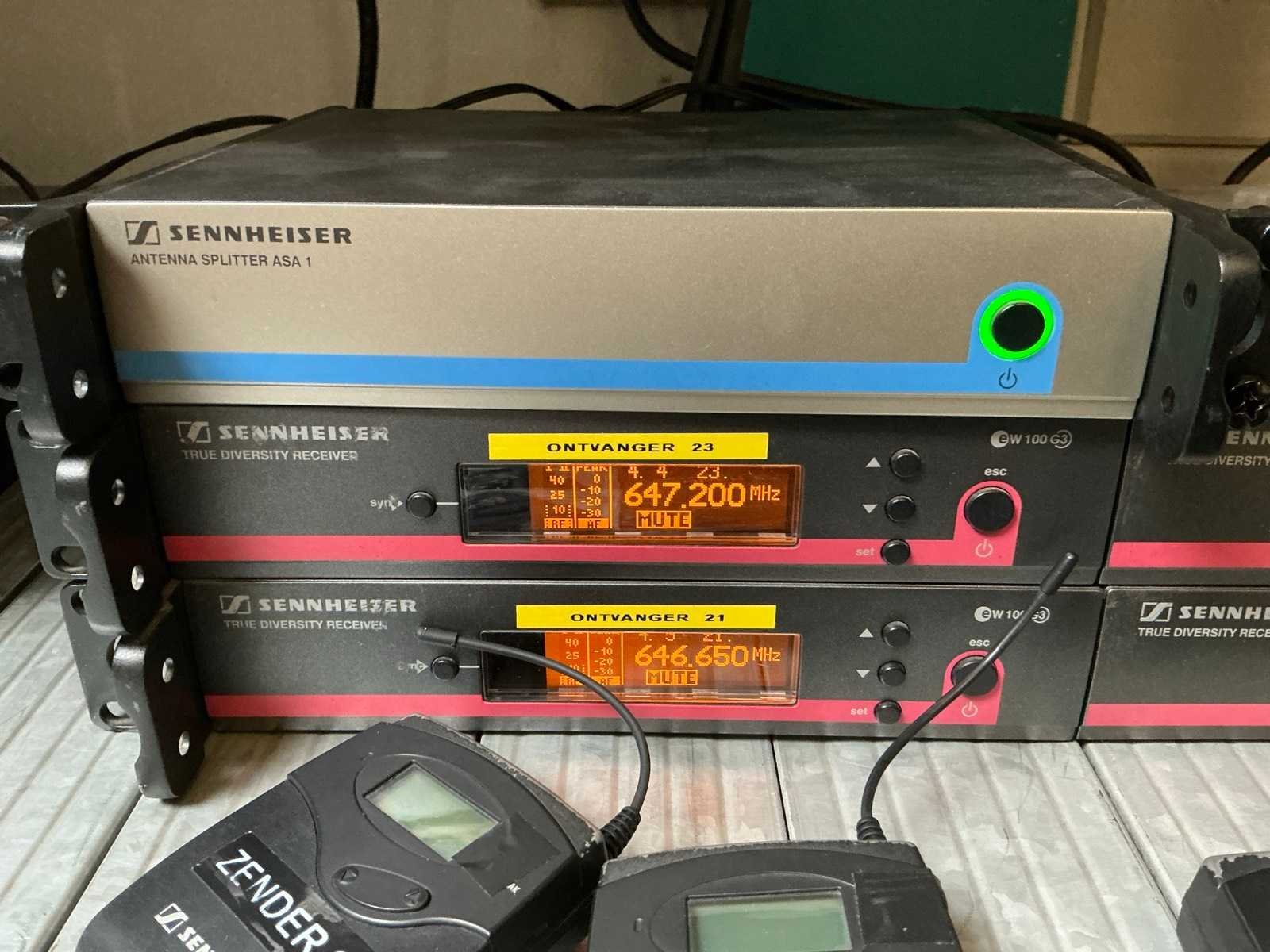 Met ASA 1 antenne splitter en SK100G3 3pin belt 626-668MHz Merk: Sennheiser