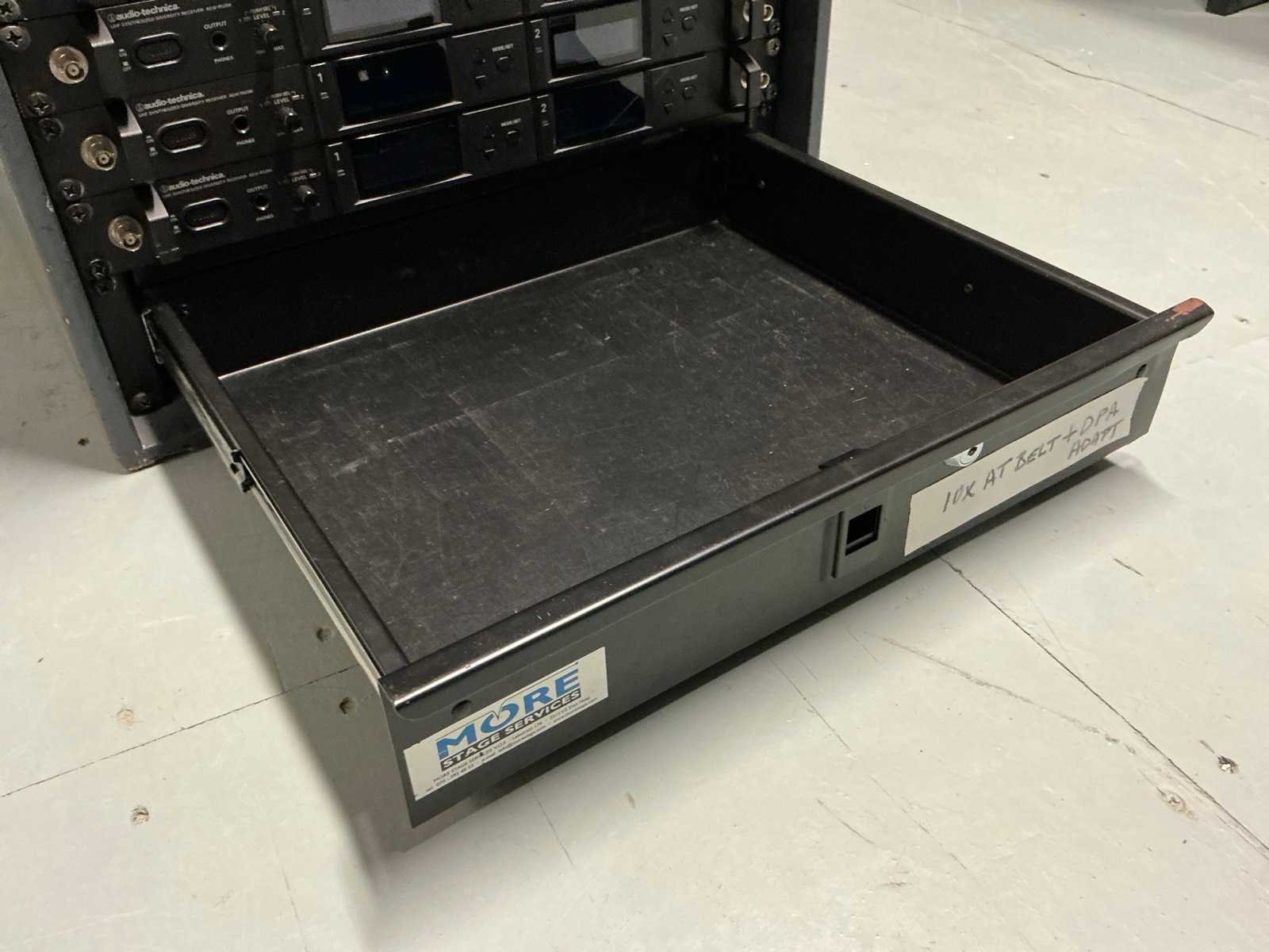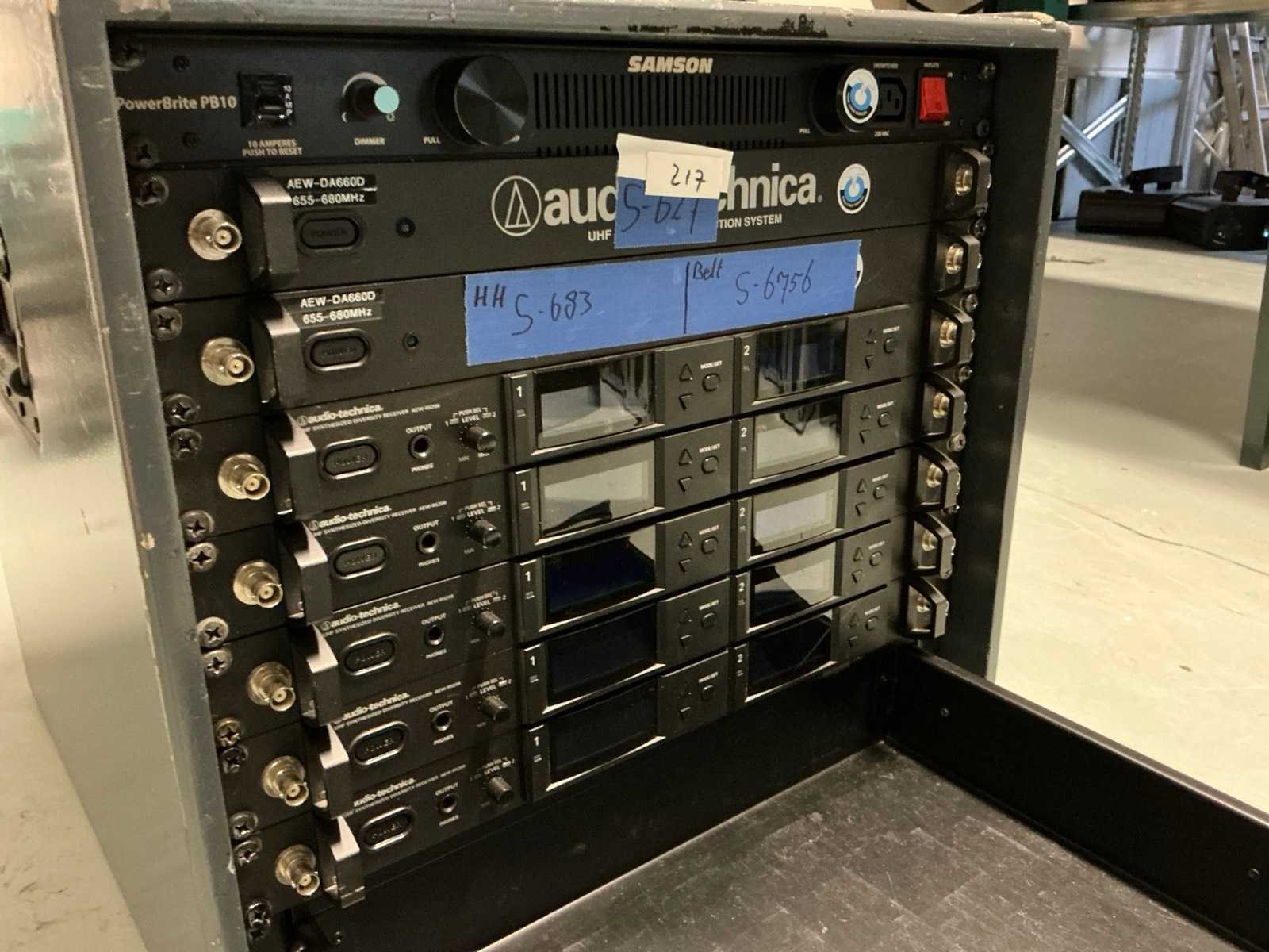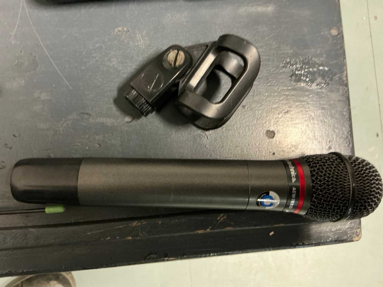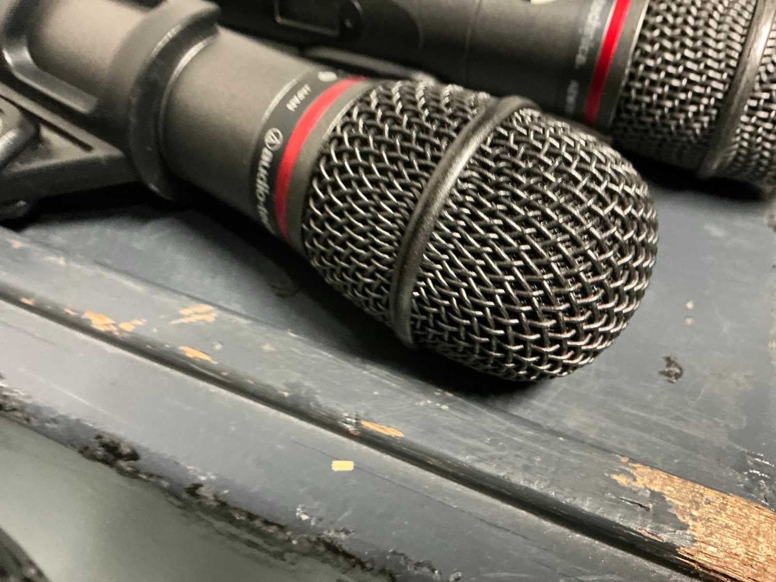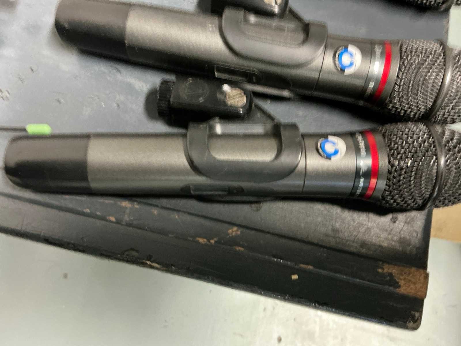10 kanaals set met 10 beltpacks en 6 handhelds 655-680MHz en 5 microfoons, 4 kabels. Merk: Audio Technica