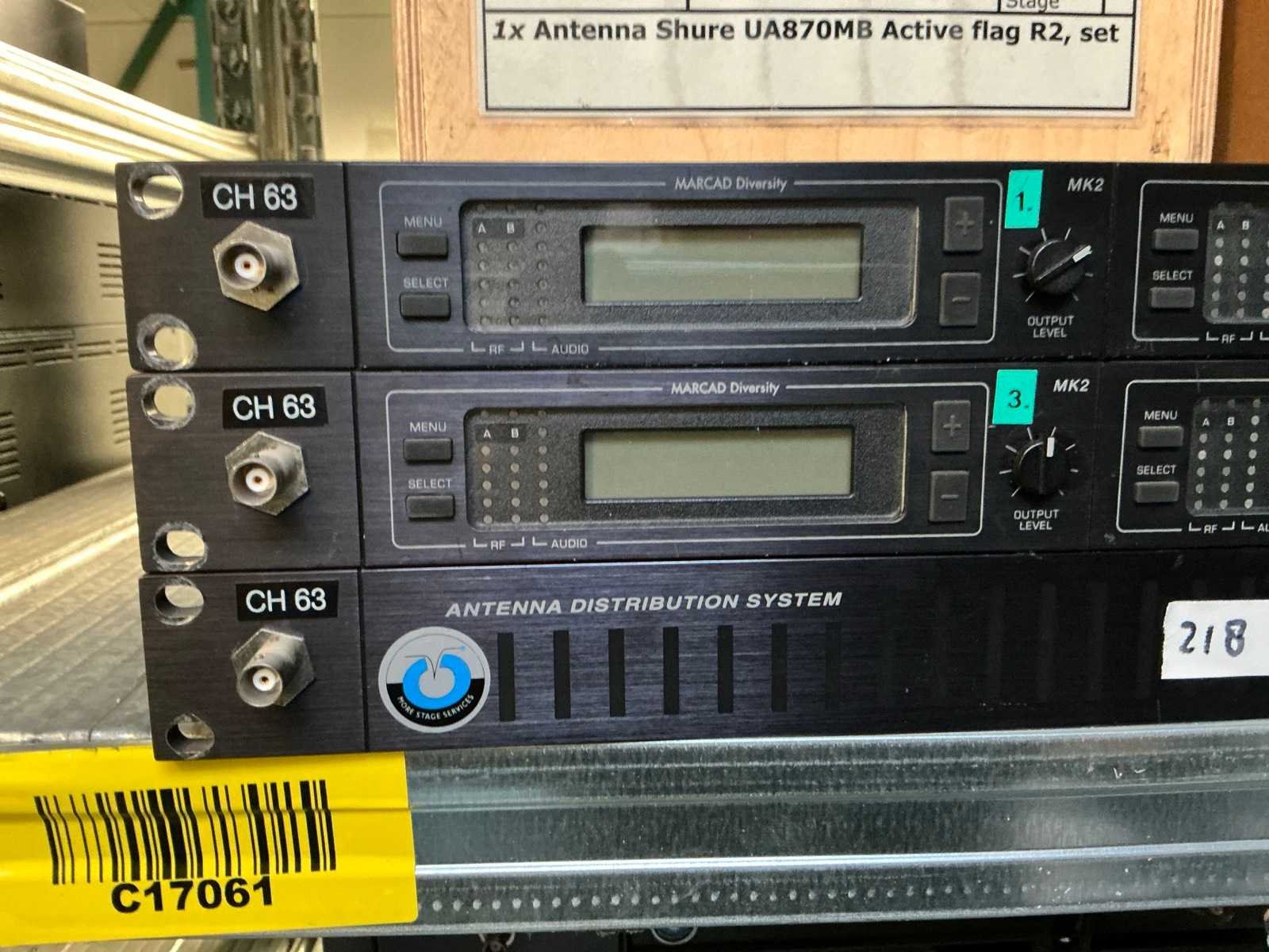 4 kanaals set met 4 U2 handheldbody en antennes en distribution 800-830MHz Merk: Shure