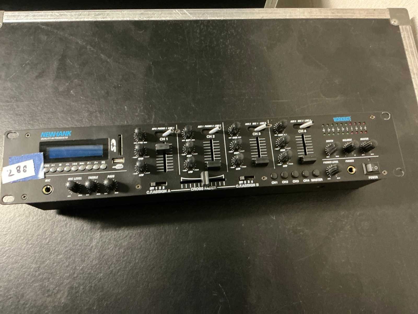 7 kanaals 19"mixer 2 mic 3 phono in Merk: Newhank Serienummer: 2014020077 Lengte: 8cm Breedte: 48cm Hoogte: 9cm