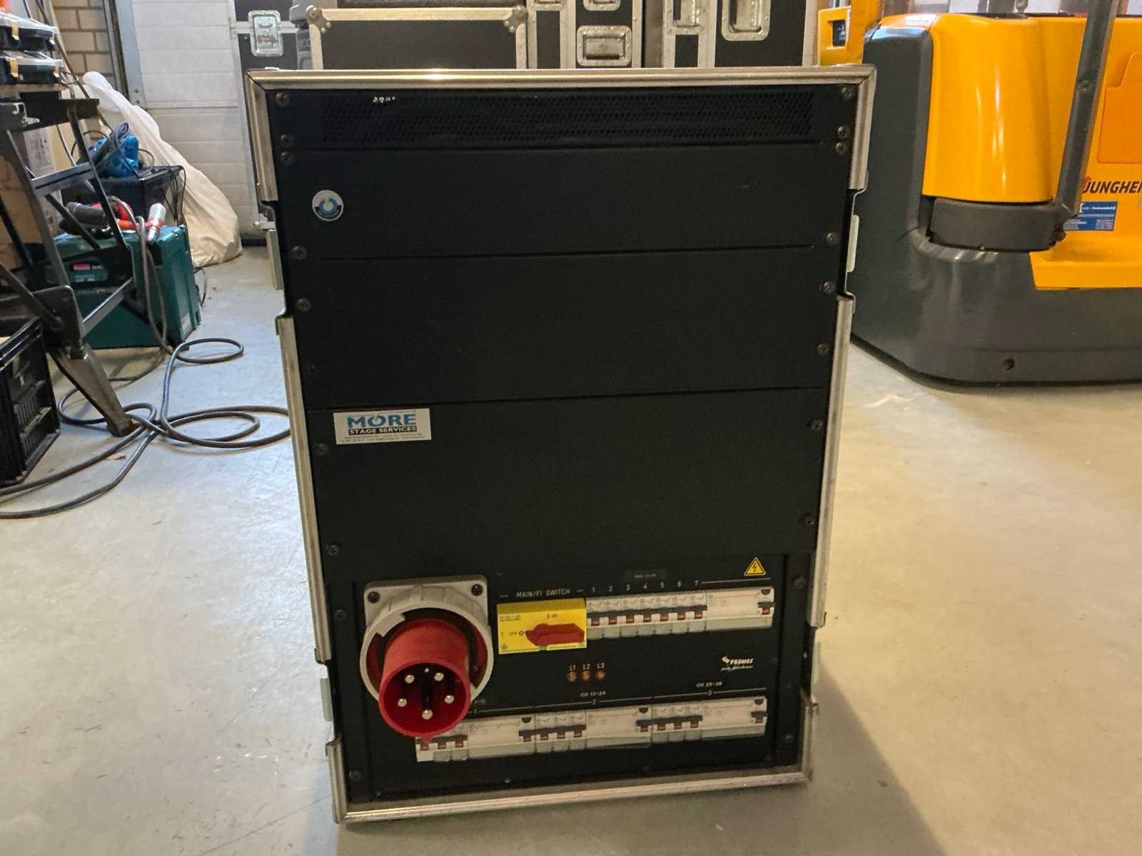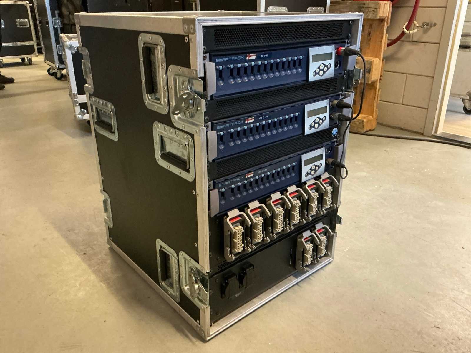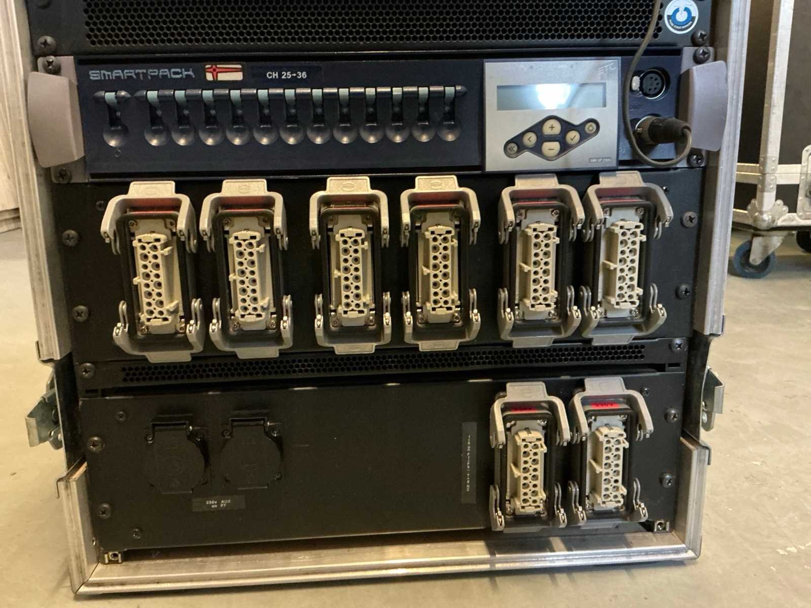 Dimmerpack met 125A stroomverdeler in case op wielen Merk: ETC Aantal kanalen: 36 Max. vermogen per kanaal: 10A Output harting: true Met flightcase: true Aansluiting: 380V