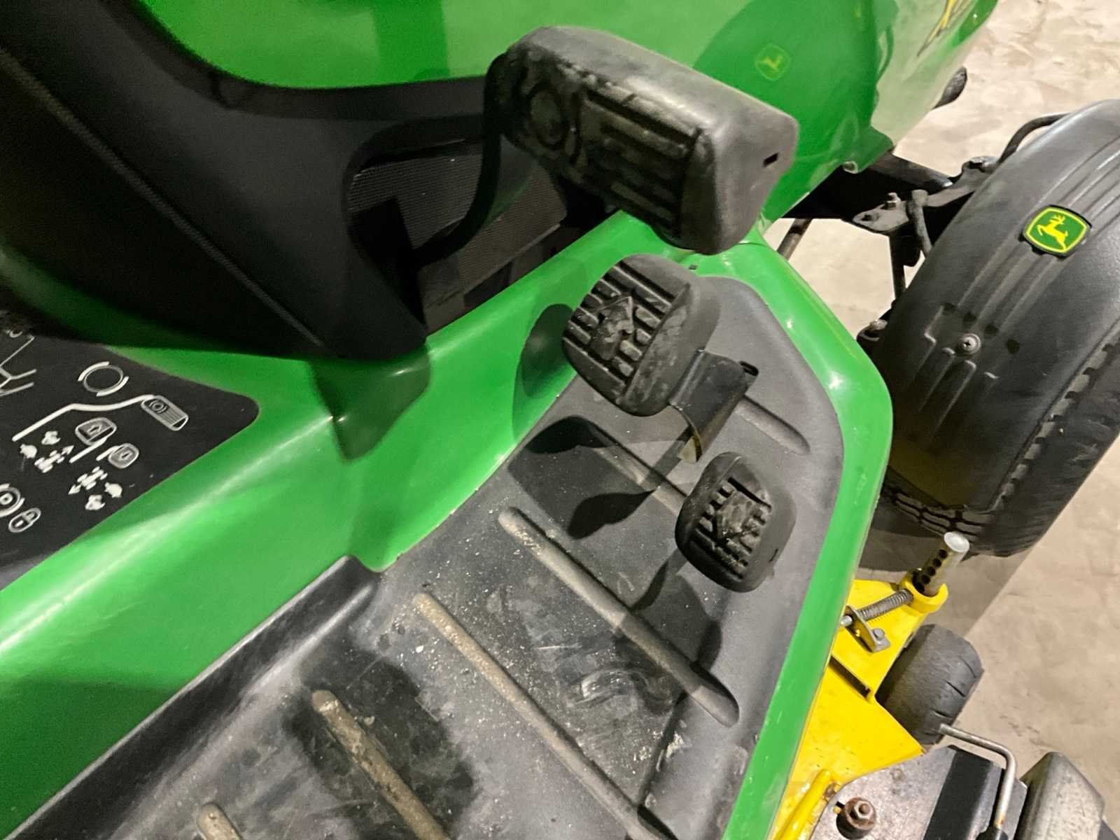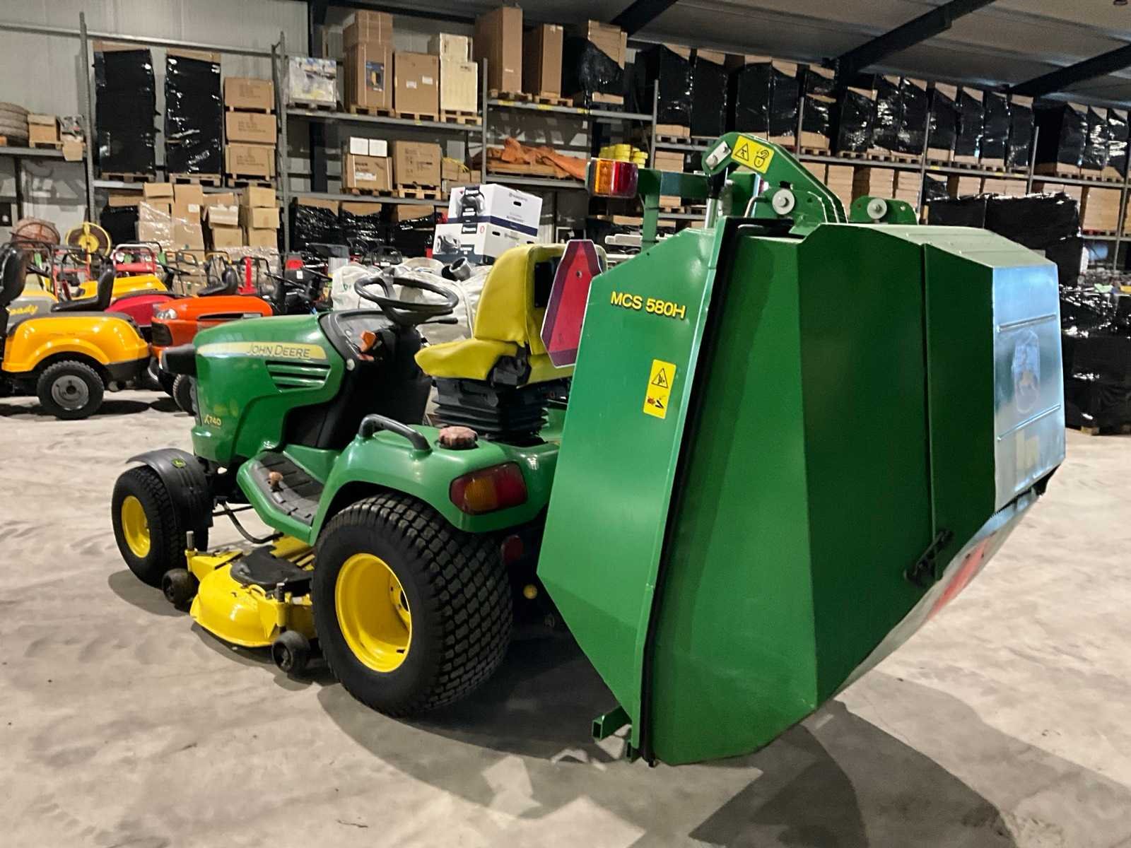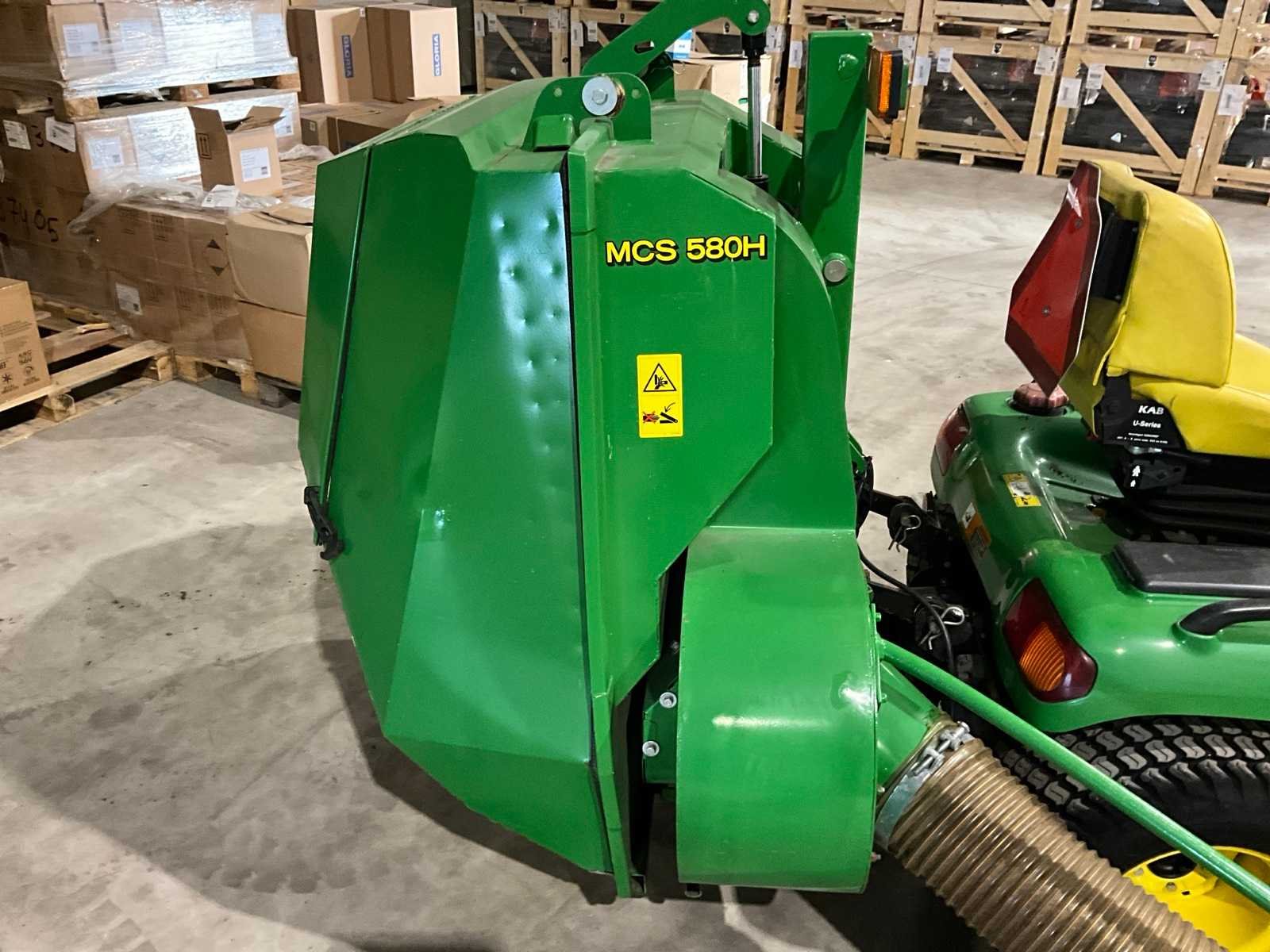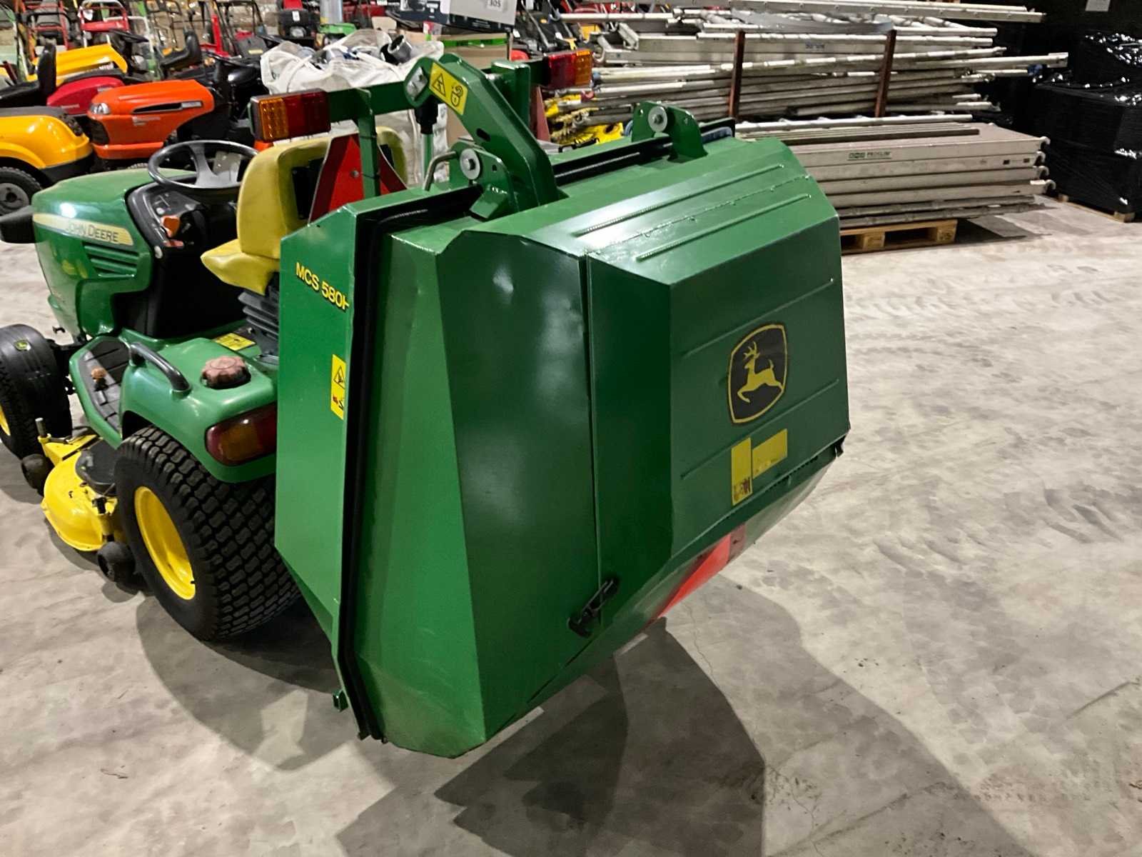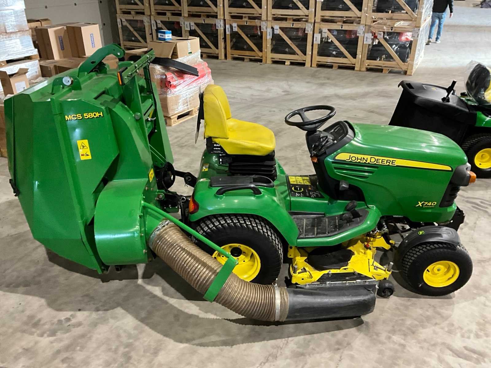 Voorzien: MCS 580H 580 liter hoogkiepend opvangsysteem met afzuiging, aftakas, hydraulische aansluiting achterzijde en rechtsvoor, trekhaak, frontgewicht ophanging, motor: “ Yanmar” type: 3TNV72-B (L71T), EdgeXtra 48” maaidek, Urenstand: 2779 Merk: John Deere Type: X740 Ultimate Bouwjaar: 2011 Serienummer: 1M0X740BCBM070108 Werkbreedte: 1200mm Zitmaaier: true Benzinemotor: true Brandstof: Diesel Motorvermogen (kW): 16.5kW Opvang container: true Eigen gewicht: 538kg Totale afmeting L: 3250mm Totale afmeting Breedte: 1680mm Totale afmeting Hoogte: 1650mm