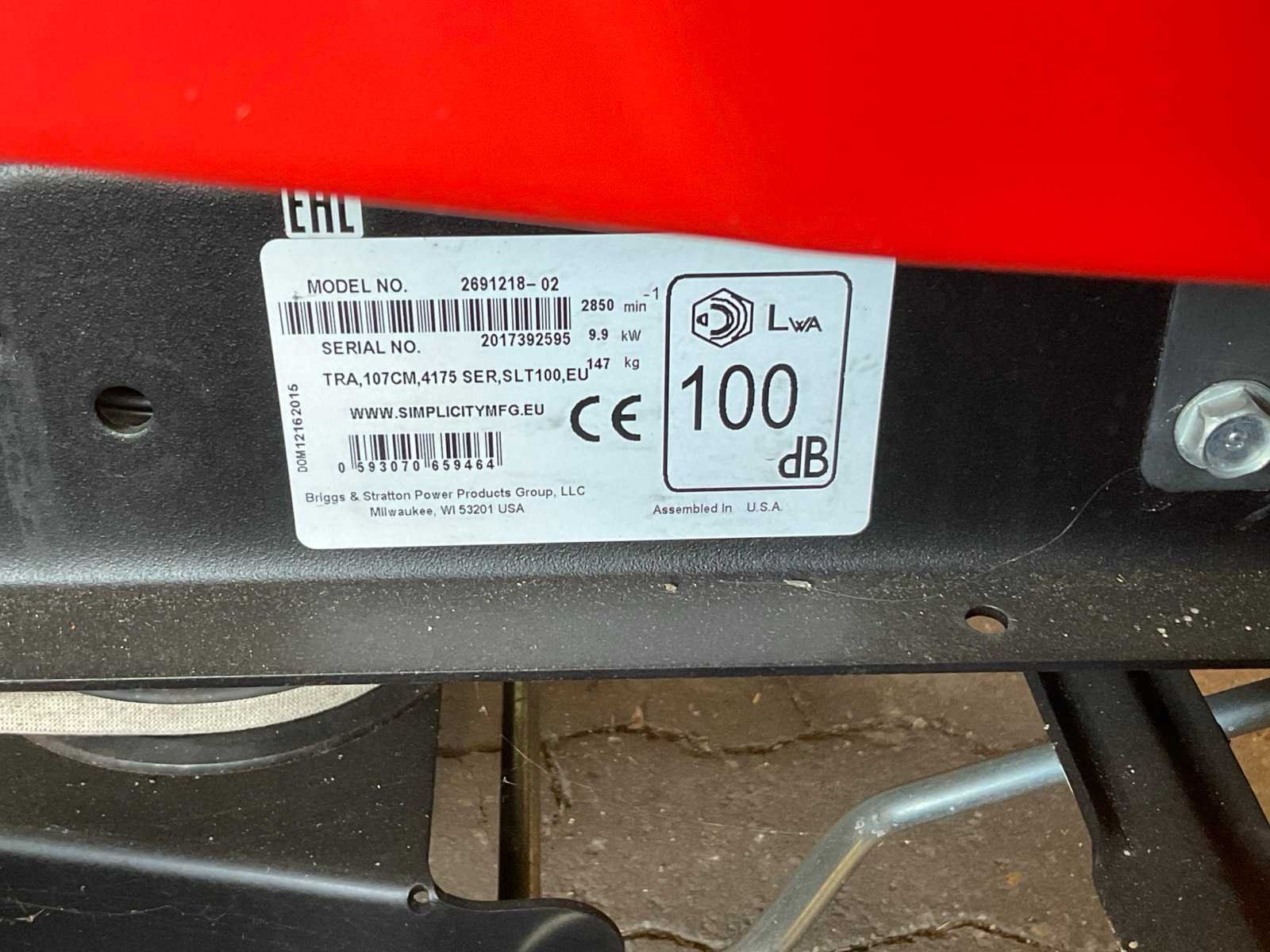 Voorzien van B&S benzinemotor, ongebruikt Merk: Simplicity Type: SLT100 Serienummer: 2017392595 Werkbreedte: 1070mm Zelfrijdend: true Zitmaaier: true Benzinemotor: true Brandstof: Benzine Motorvermogen (kW): 9.9kW Eigen gewicht: 147kg Totale afmeting L: 1800mm Totale afmeting Breedte: 1400mm Totale afmeting Hoogte: 1160mm