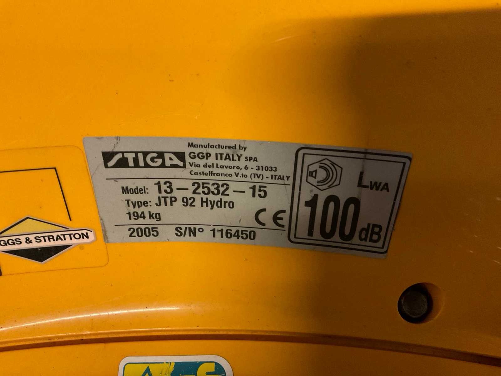 Voorzien van B&S benzinemotor Merk: Stiga Type: JTP 92 Hydro Bouwjaar: 2005 Serienummer: 116450 Werkbreedte: 850mm Zelfrijdend: true Zitmaaier: true Benzinemotor: true Brandstof: Benzine Opvang container: true Eigen gewicht: 194kg Totale afmeting L: 2200mm Totale afmeting Breedte: 900mm Totale afmeting Hoogte: 1100mm