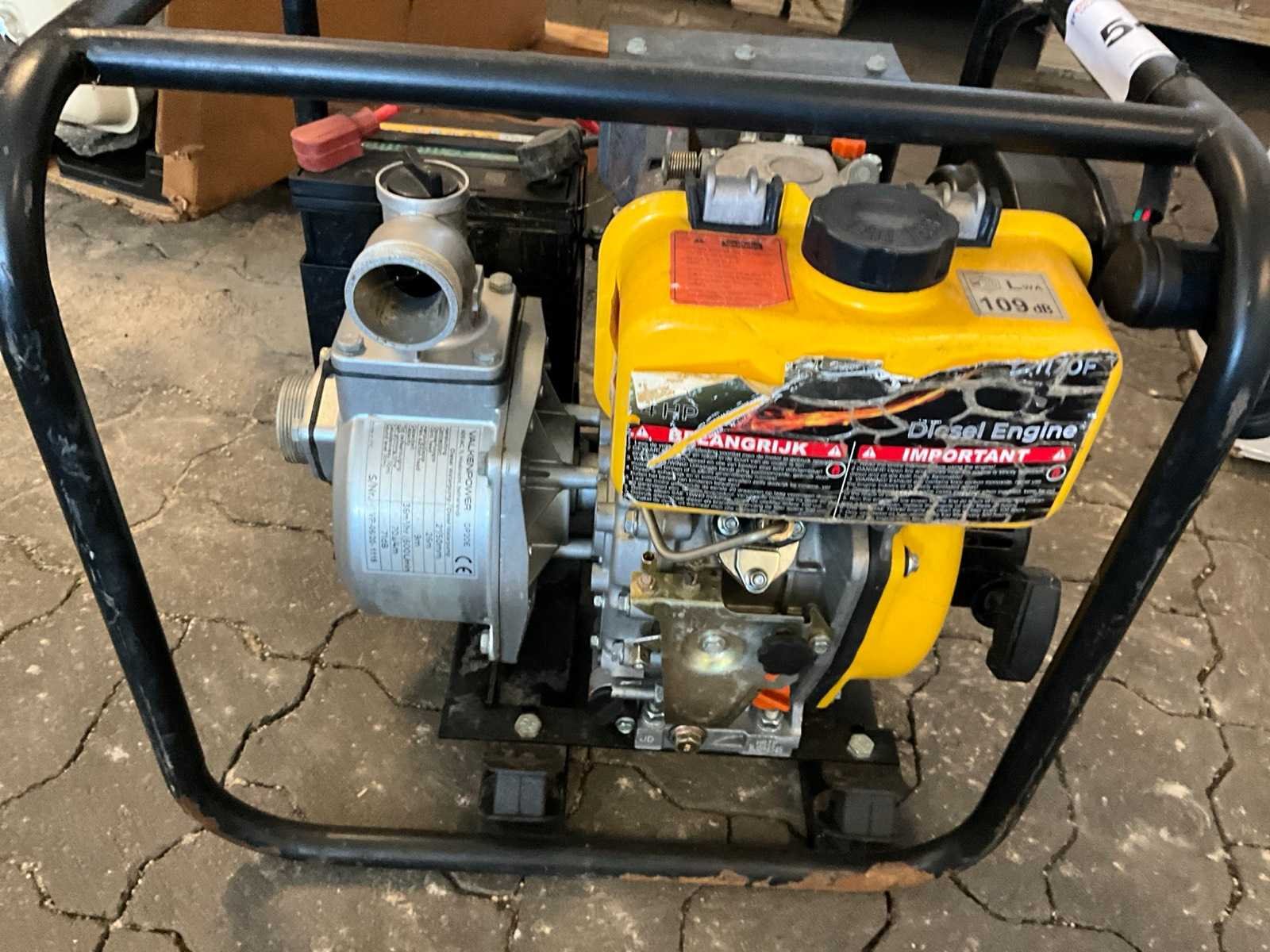 Voorzien van elektrische startmotor, Aansluiting 50mm, Opvoerhoogte: 26m, aanzuigdiepte 9m, Capaciteit 600L/min. Merk: Valkenpower Product type: DP20E Lengte: 55cm Breedte: 45cm Hoogte: 55cm