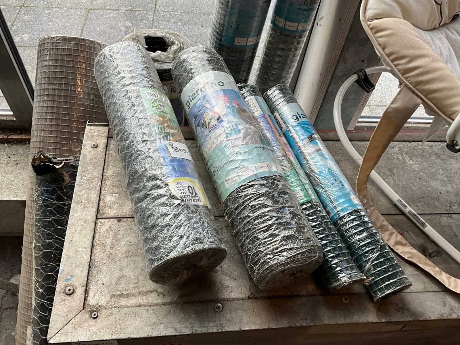 Waaronder: 3x eetkamer, diverse afmetingen gaas, etc., kist afmeting circa: 2150x500x720 mm.