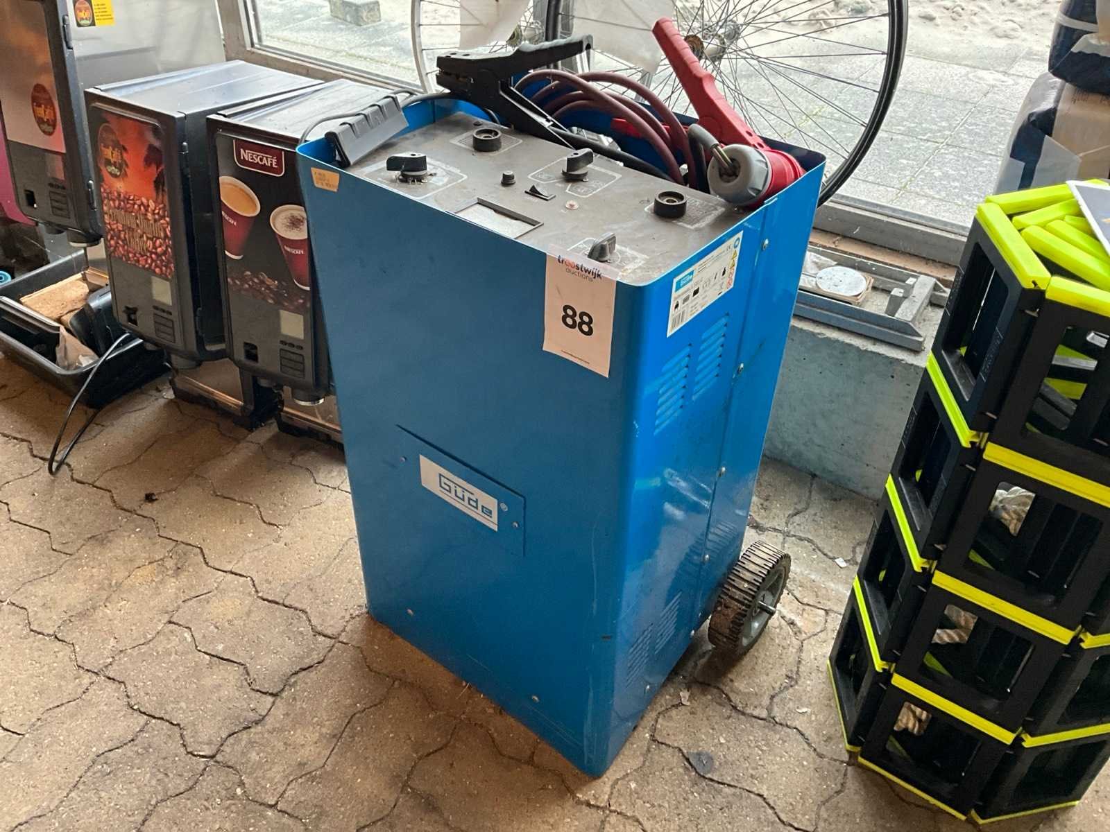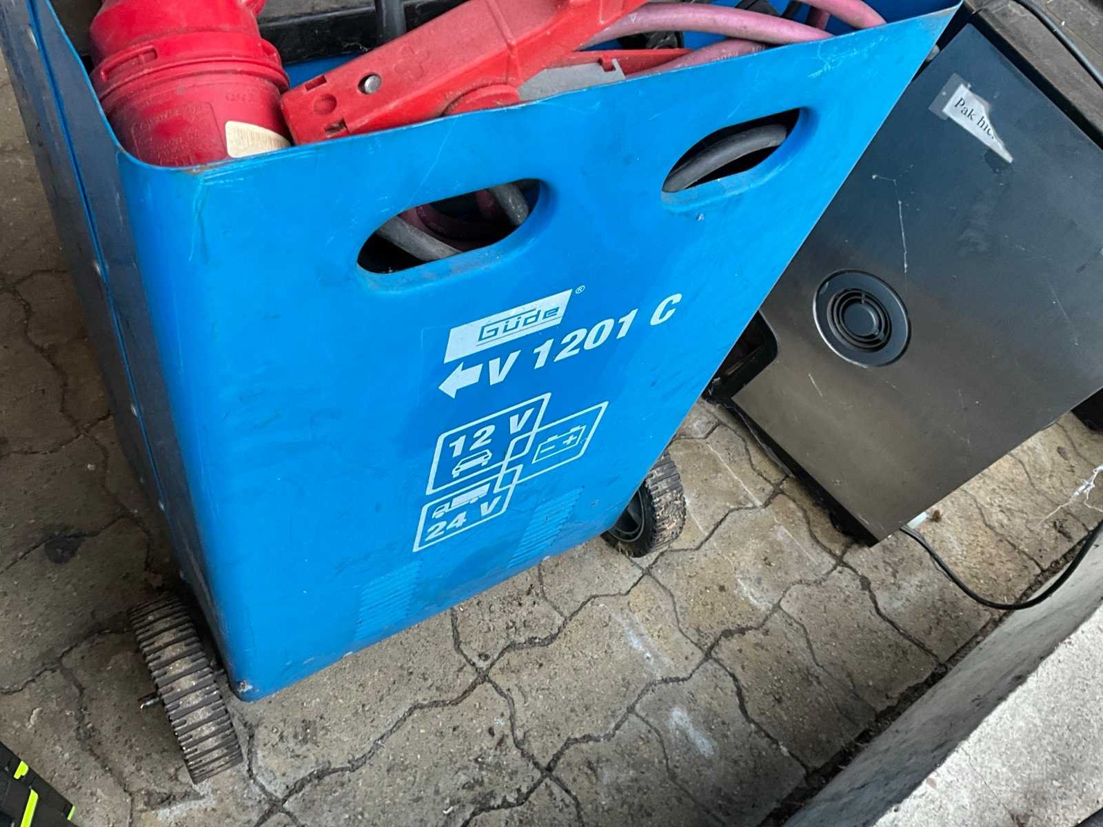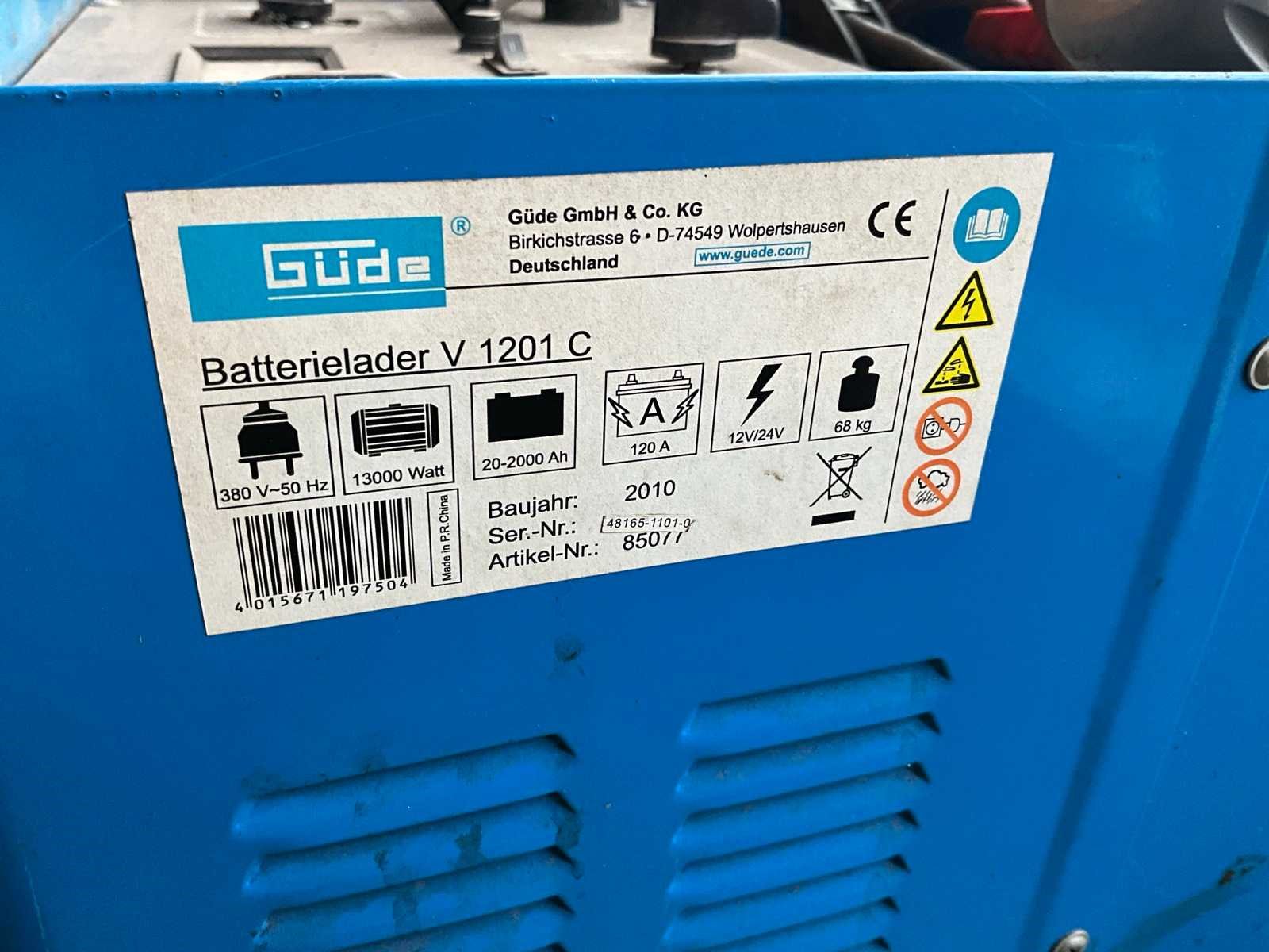 Merk: Güde Type: V 1201 C 12/24 V Bouwjaar: 2010 Met starthulpfunctie: true Laadstroom: 120A Aansluiting: 400V Eigen gewicht: 68kg Totale afmeting L: 430mm Totale afmeting Breedte: 440mm Totale afmeting Hoogte: 700mm
