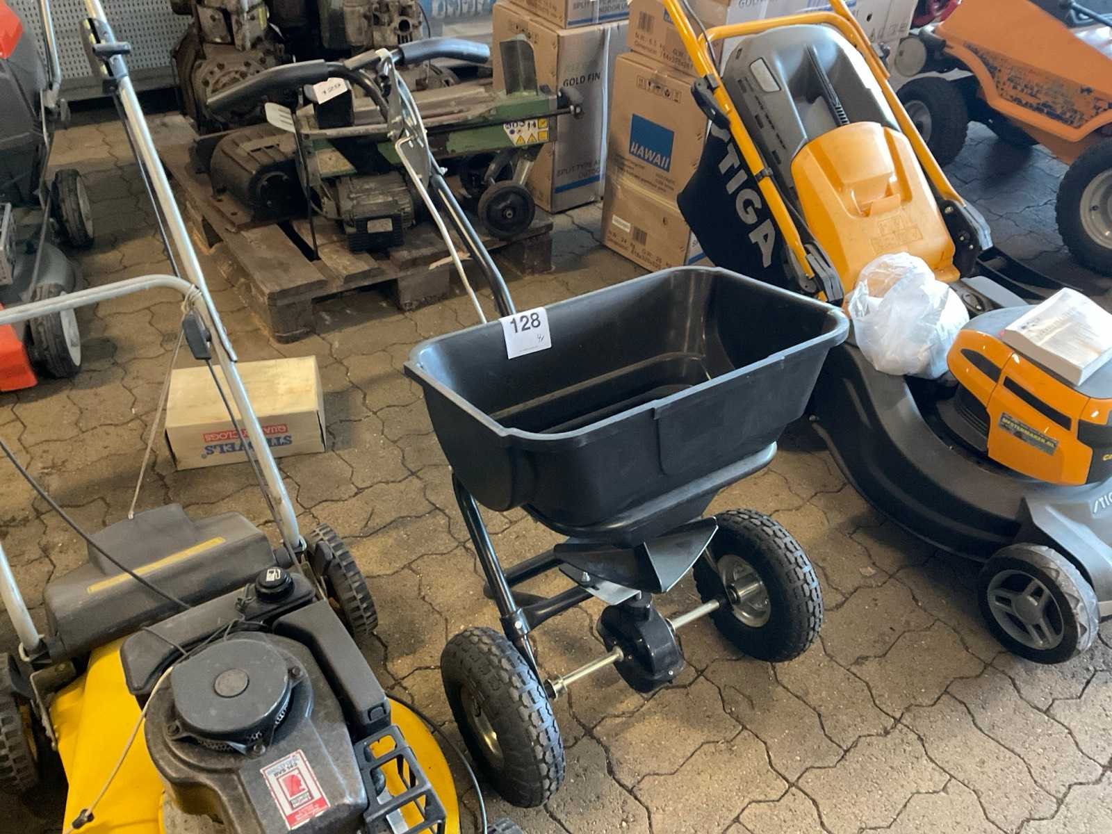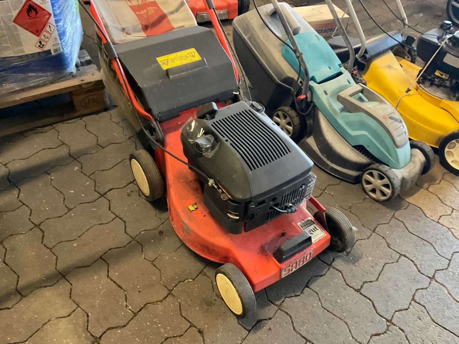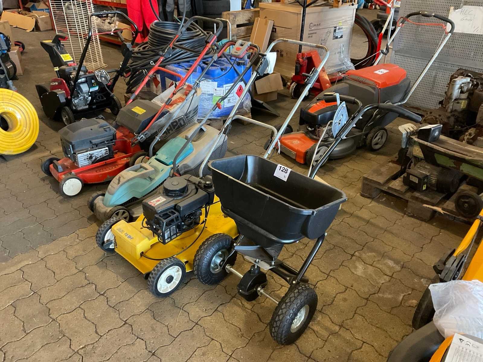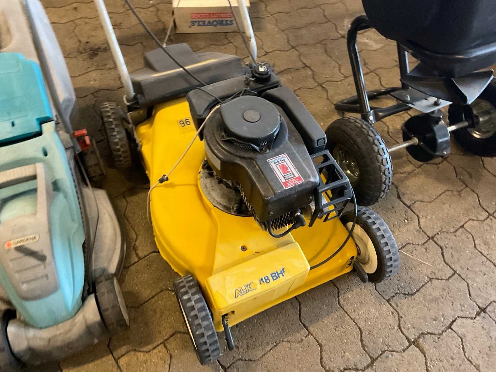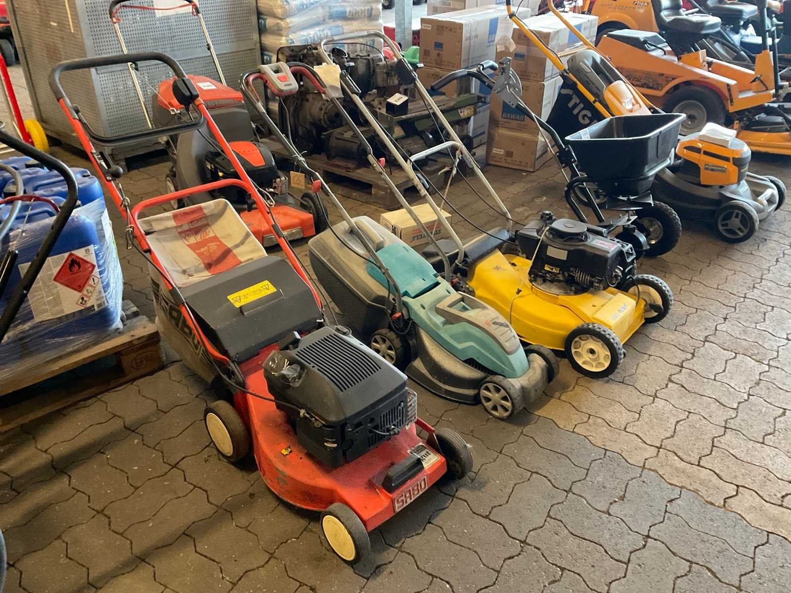 1x Al-Ko motor grasmaaier (volgens opgave defect), 1x Sabo motor grasmaaier, 1x Gardena elektrische grasmaaier. Inclusief 1x kunstmeststrooier