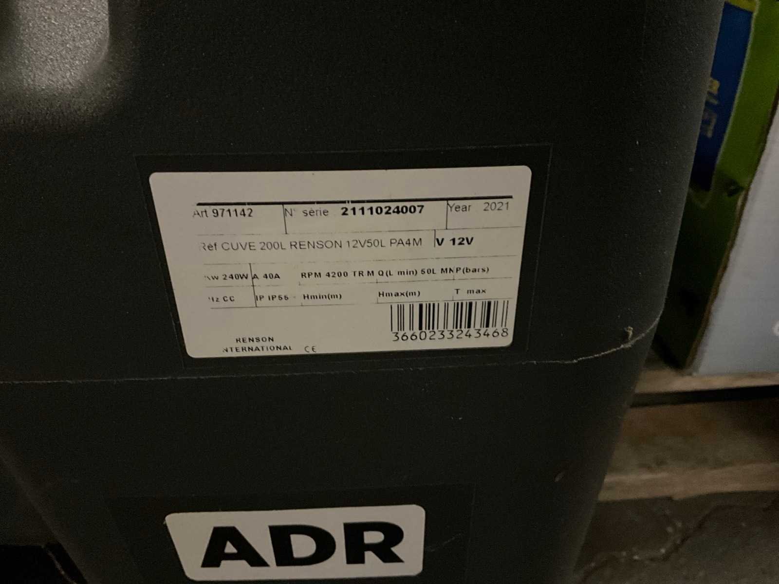 Voorzien van vulpistool, 12V pomp, betreft een ongebruikt product Merk: Renson Type: 200 Ltr Kunststof: true Capaciteit.: 200l
