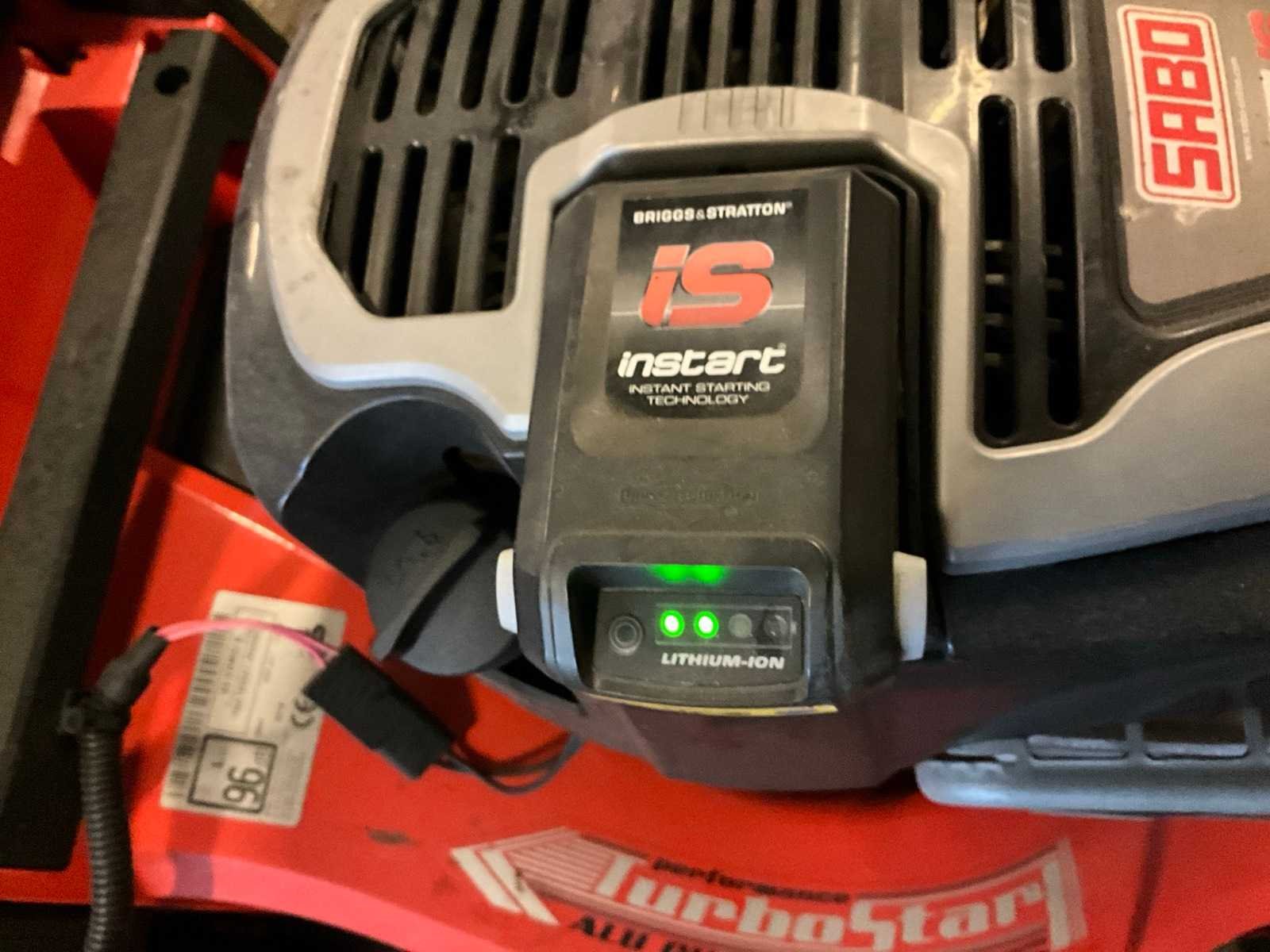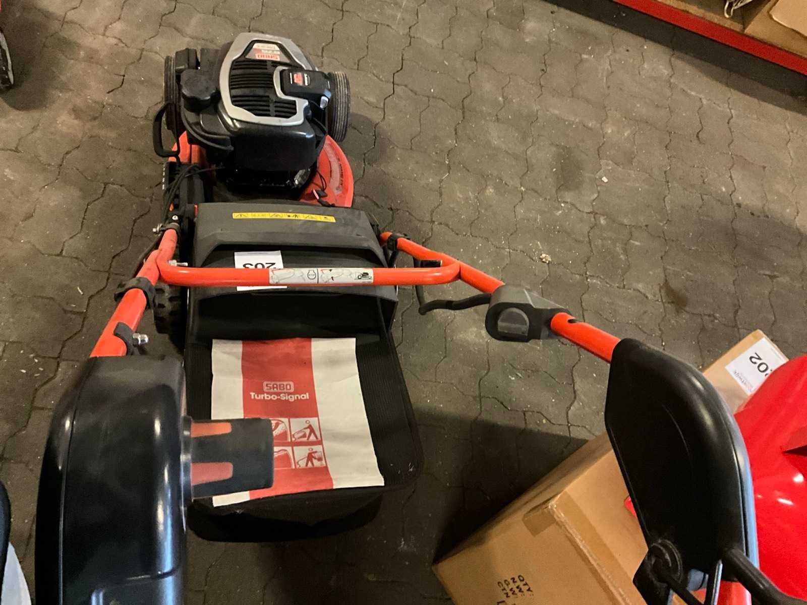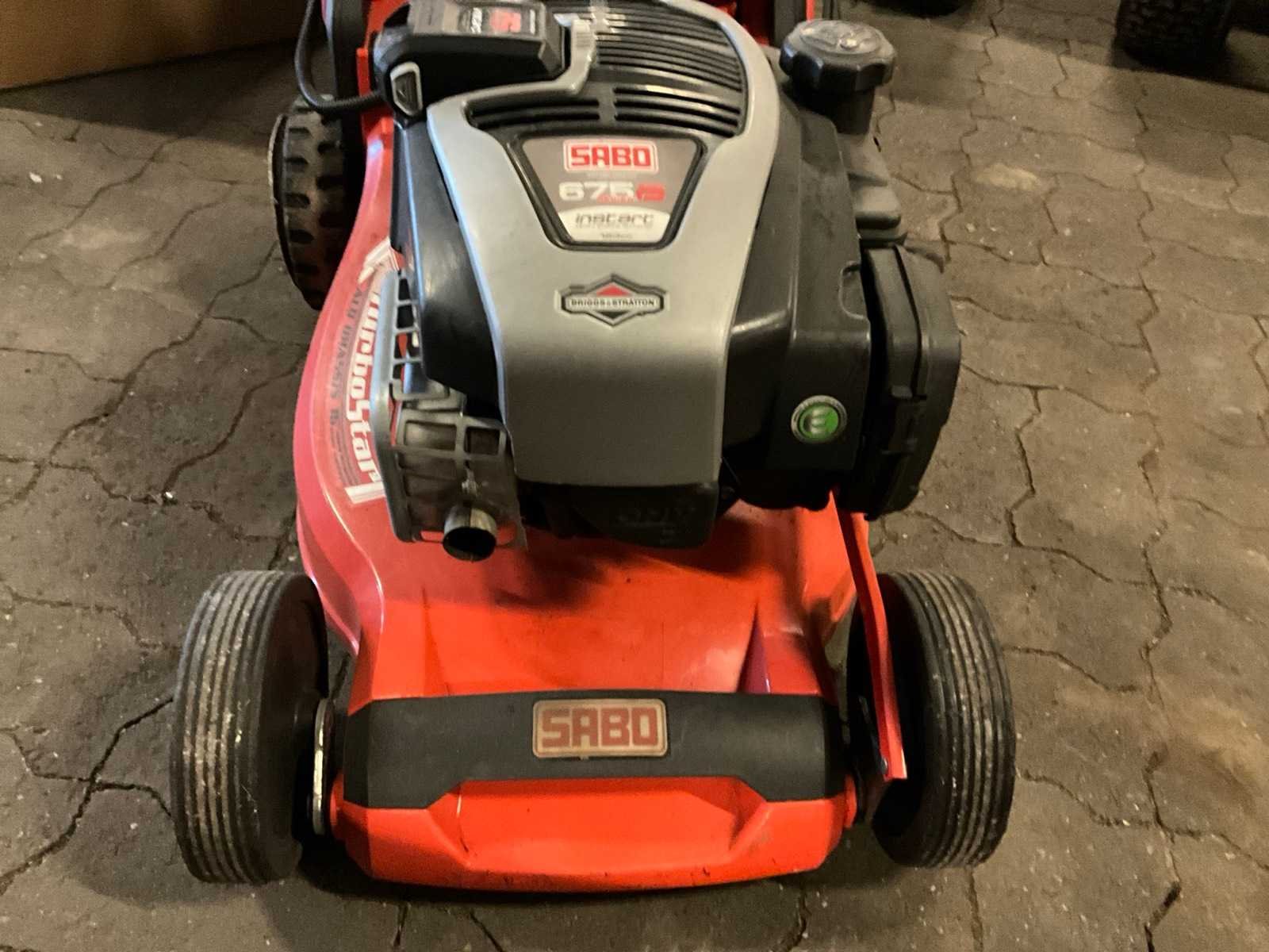Voorzien van elektrische startmotor, vermogen: 2.6 kW Merk: Sabó Type: 43-Vario E Zelfrijdend: true Benzinemotor: true Opvang container: true Totale afmeting L: 132cm Totale afmeting Breedte: 50cm Totale afmeting Hoogte: 110cm