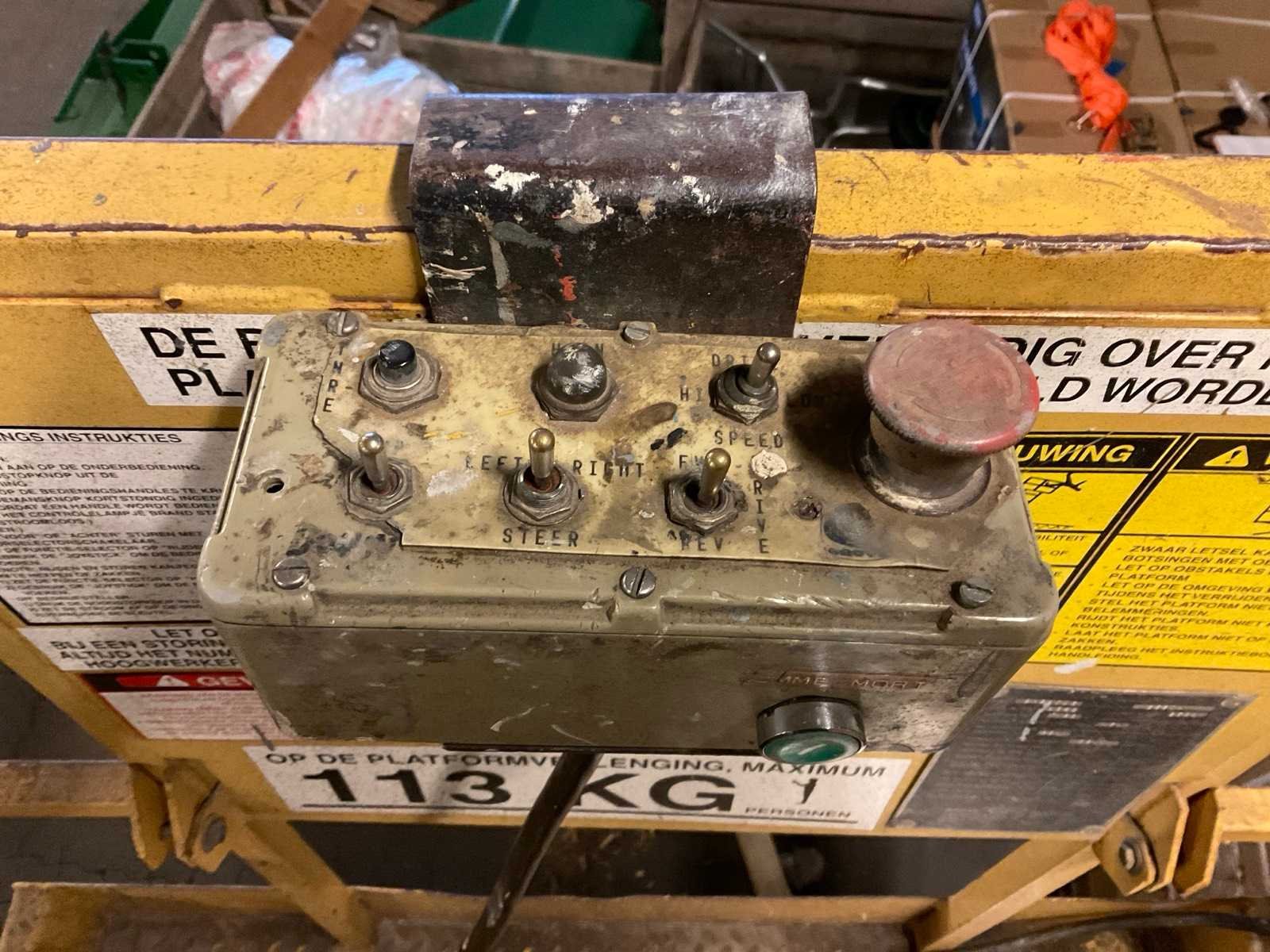 Voorzien uitschuifbaar platform tot 370cm Merk: Grove North America Type: SM130E Bouwjaar: 1992 Serienummer: 25904 Elektrisch: true Schaarhoogwerker: true Werkhoogte: 7620mm Plateau afm. l: 2400mm Plateau afm. b: 1300mm Platform capaciteit: 454kg Accu lader: true Afgelezen urenstand: 320 Eigen gewicht: 2594kg Totale afmeting L: 2800mm Totale afmeting Breedte: 1600mm Totale afmeting Hoogte: 2600mm