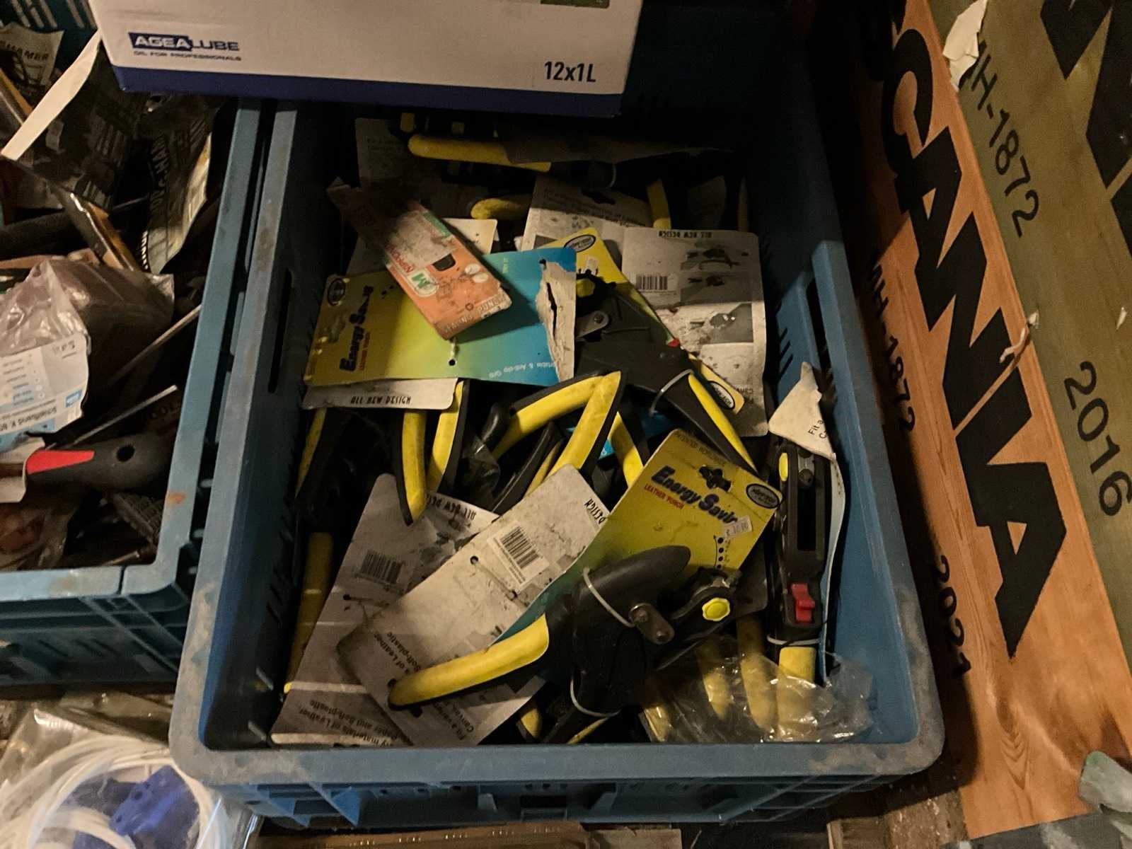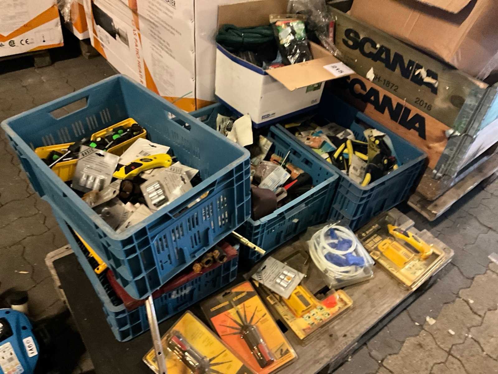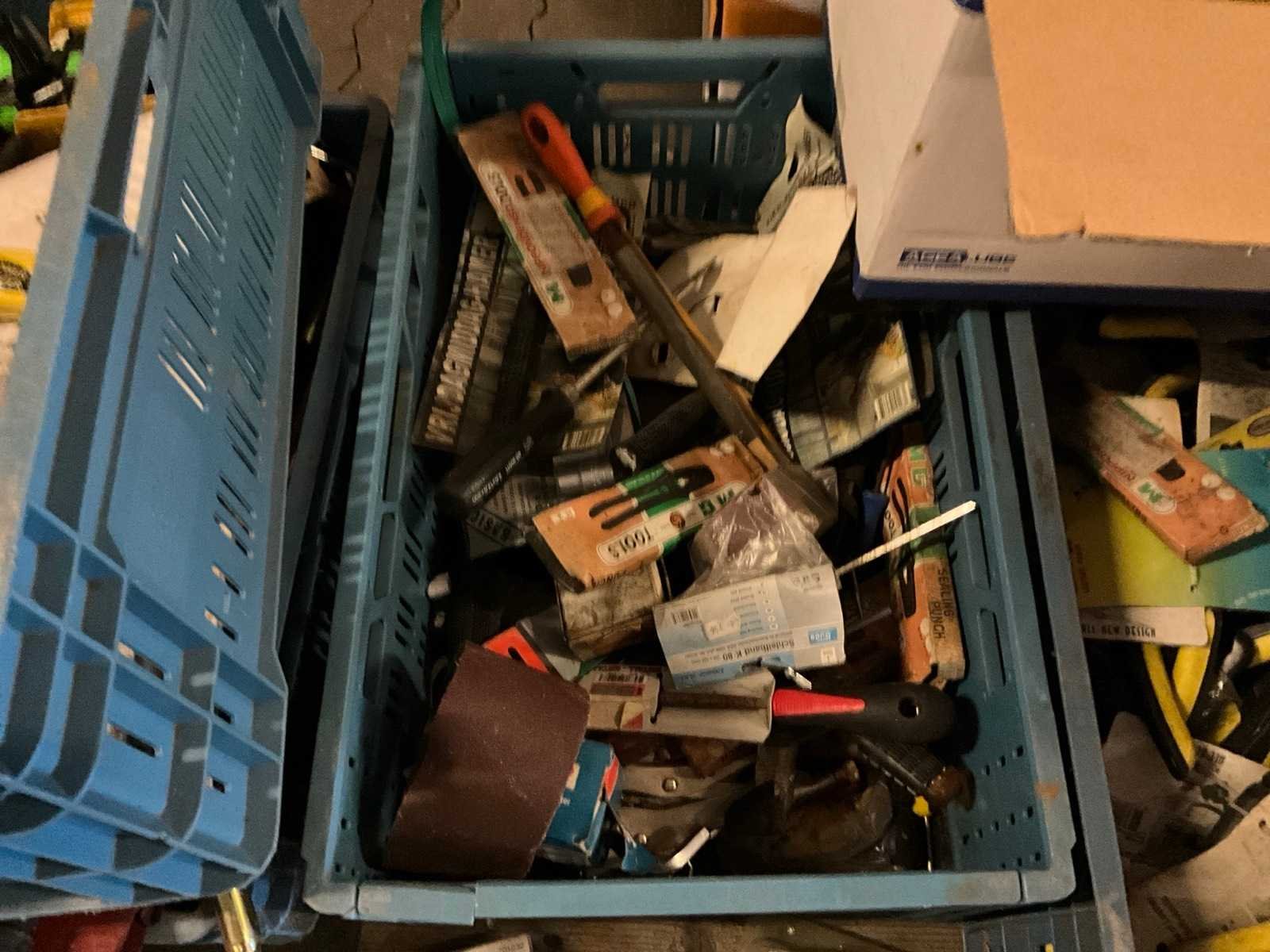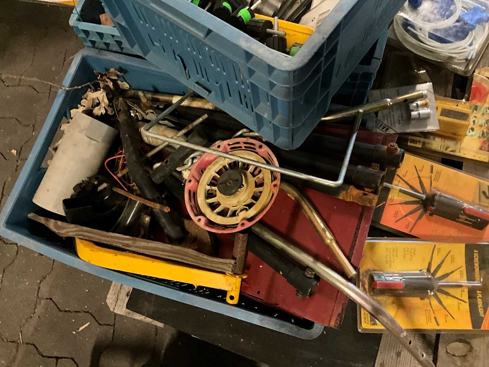 Bestaande uit 3x krat met diverse gereedschappen, 1x krat diverse tuingereedschap onderdelen