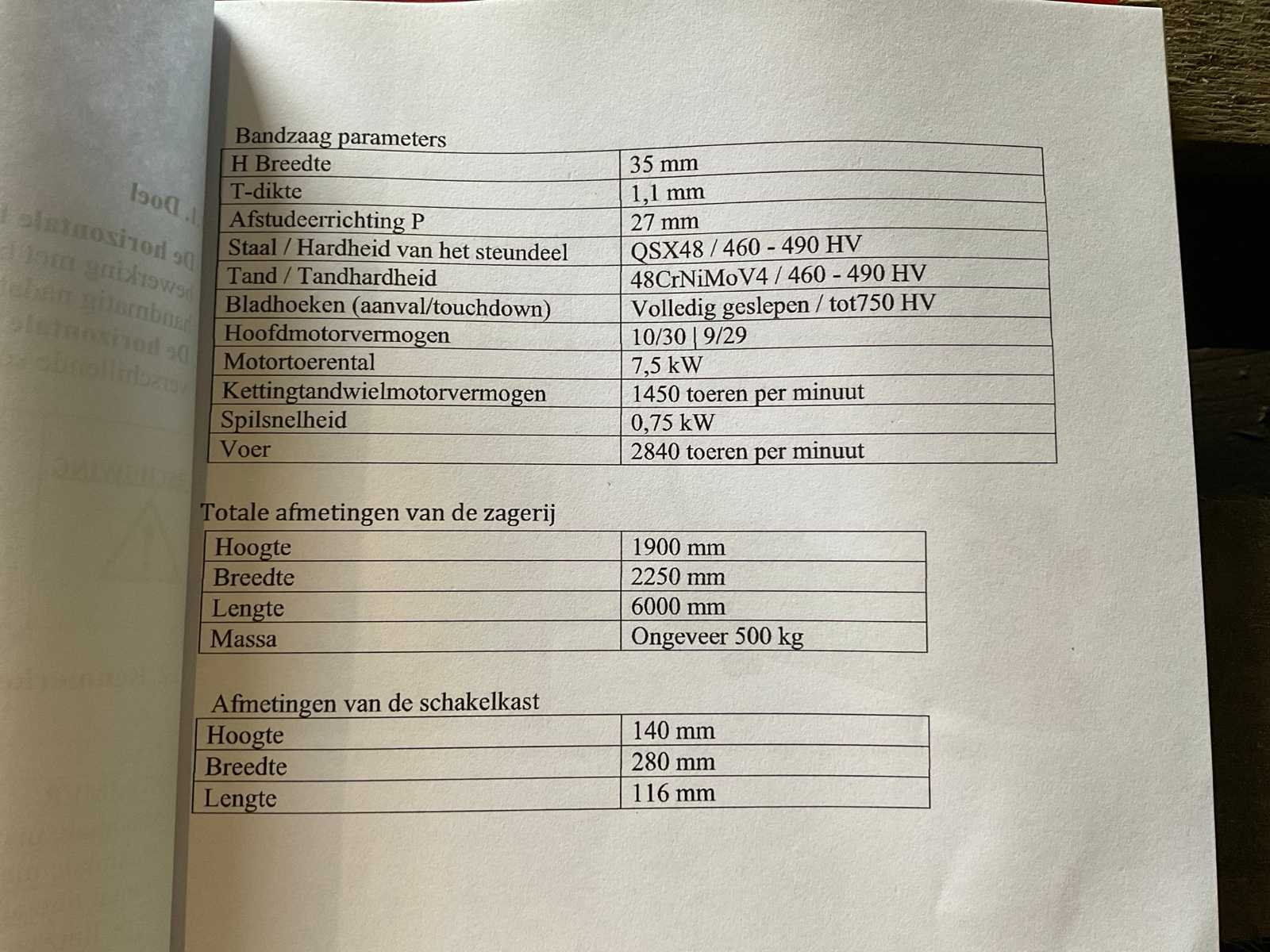 Bandzaag voor boomstammen, horizontaal stationeer, handmatige toevoer van het frame, vermogen 7.5kW Merk: CrissWood Type: SAM MK 2006 Bouwjaar: 2020 Serienummer: 0467/2020 Tafel afmeting l: 6000mm Tafel afmeting b: 2250mm Aansluiting: 400V Machinegewicht: 500kg