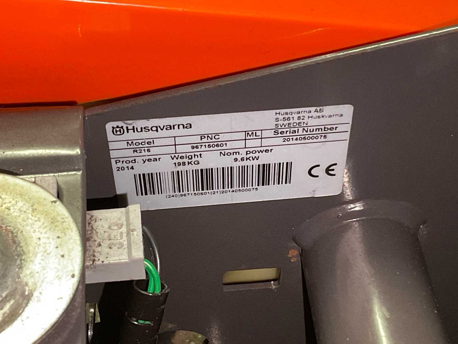 Merk: Husqvarna Type: R216 Bouwjaar: 2014 Serienummer: 20140500075 Zelfrijdend: true Zitmaaier: true Benzinemotor: true Brandstof: Benzine Motorvermogen (kW): 9.6kW Opvang container: true Eigen gewicht: 198kg Totale afmeting L: 2300mm Totale afmeting Breedte: 800mm Totale afmeting Hoogte: 1100mm