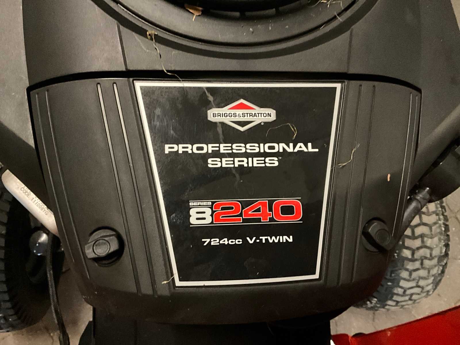 Voorzien van: B&S 8240 724cc V-twin motor, urenstand: 390 Merk: Simplicity Type: REGENT XL RD ELT2440RD Bouwjaar: 2012 Serienummer: 2015837557 Werkbreedte: 950mm Zitmaaier: true Benzinemotor: true Brandstof: Benzine Motorvermogen (kW): 17.9kW Opvang container: true Eigen gewicht: 284kg Totale afmeting L: 2500mm Totale afmeting Breedte: 1050mm Totale afmeting Hoogte: 1120mm
