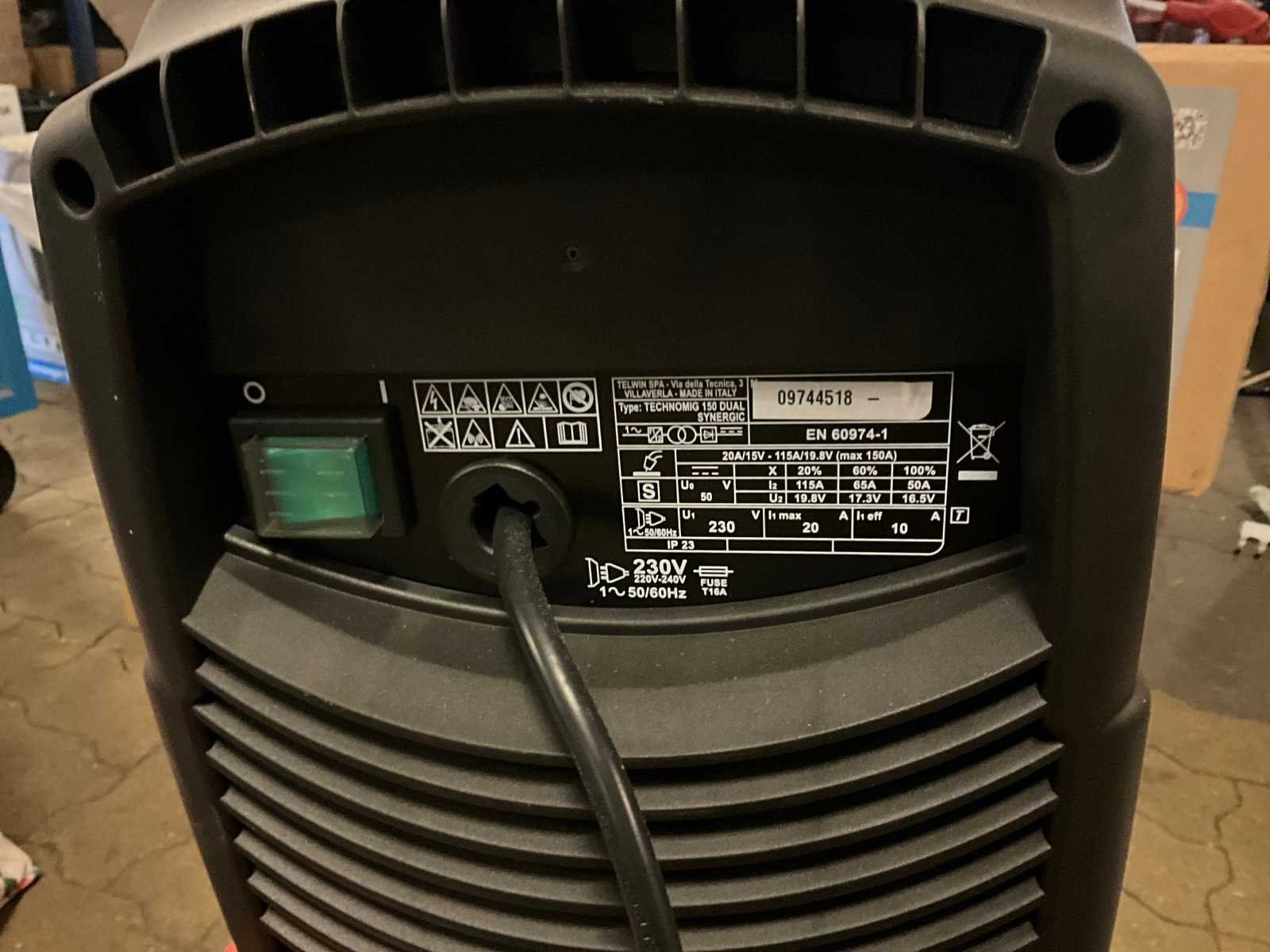 Merk: Telwin Type: Technomig 150 dual Inschakelduur: 20% Max. lasvermogen: 150A Aansluiting: 230V Afmeting l: 500mm Afmeting b: 240mm Afmeting h: 37mm