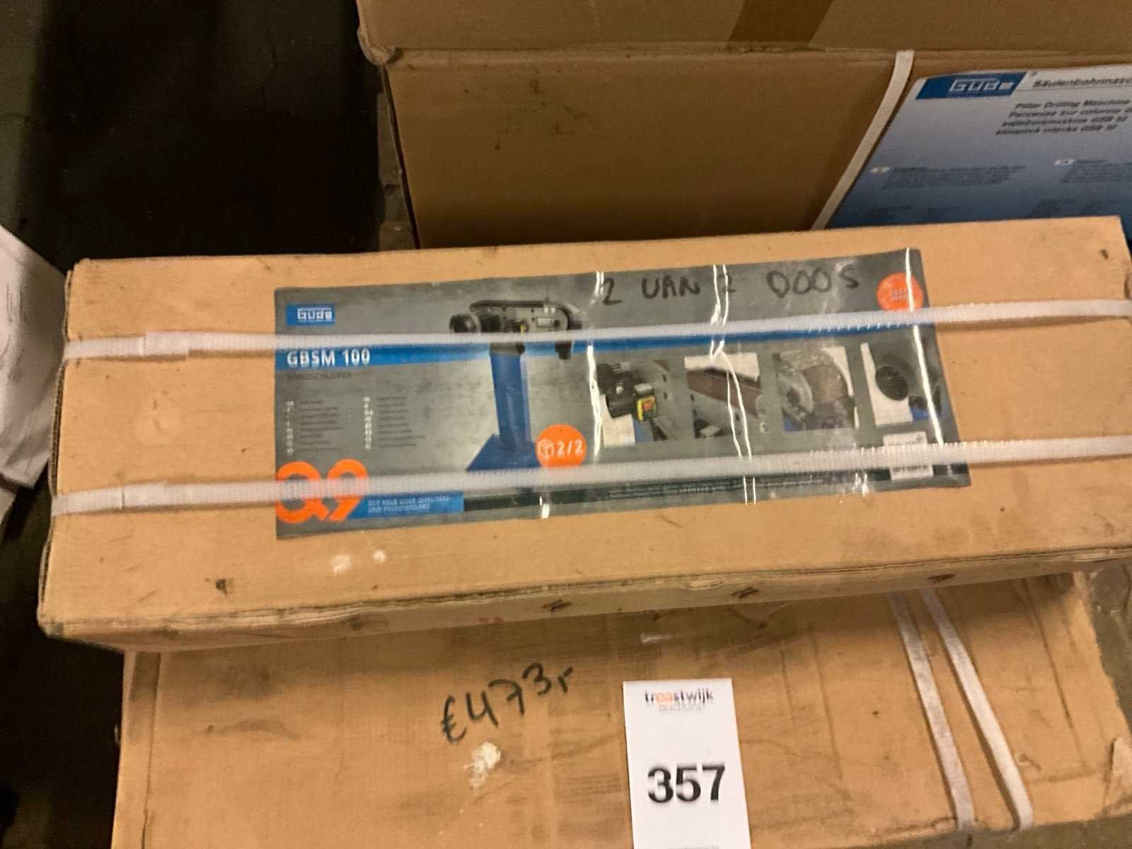 Aansluiting: 230 V, Motorvermogen: 1500 W, Machine afmeting circa: 690x380x970 mm. Ongebruikt in 2x doos. Merk: Güde Type: GBSM 100 Werkbreedte: 100mm Schuurband afm. b: 100mm Doorvoersnelheid: 1140m/min Aansluiting: 230V Machinegewicht: 44kg