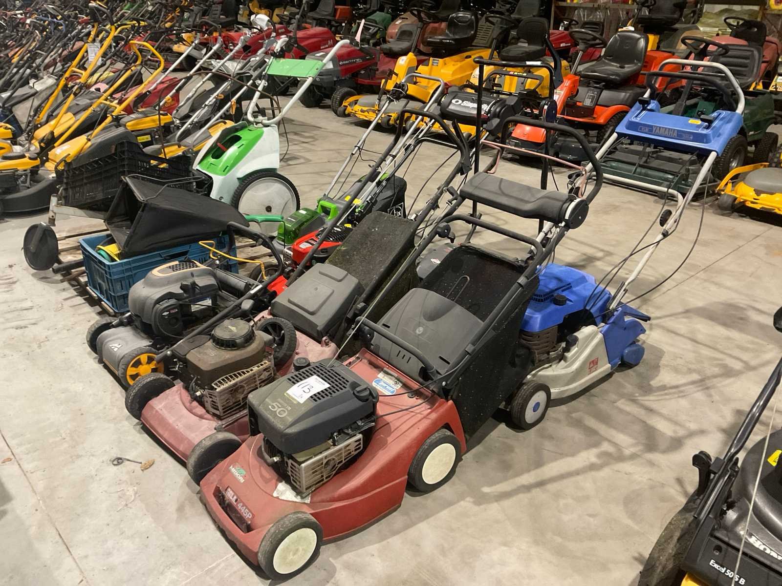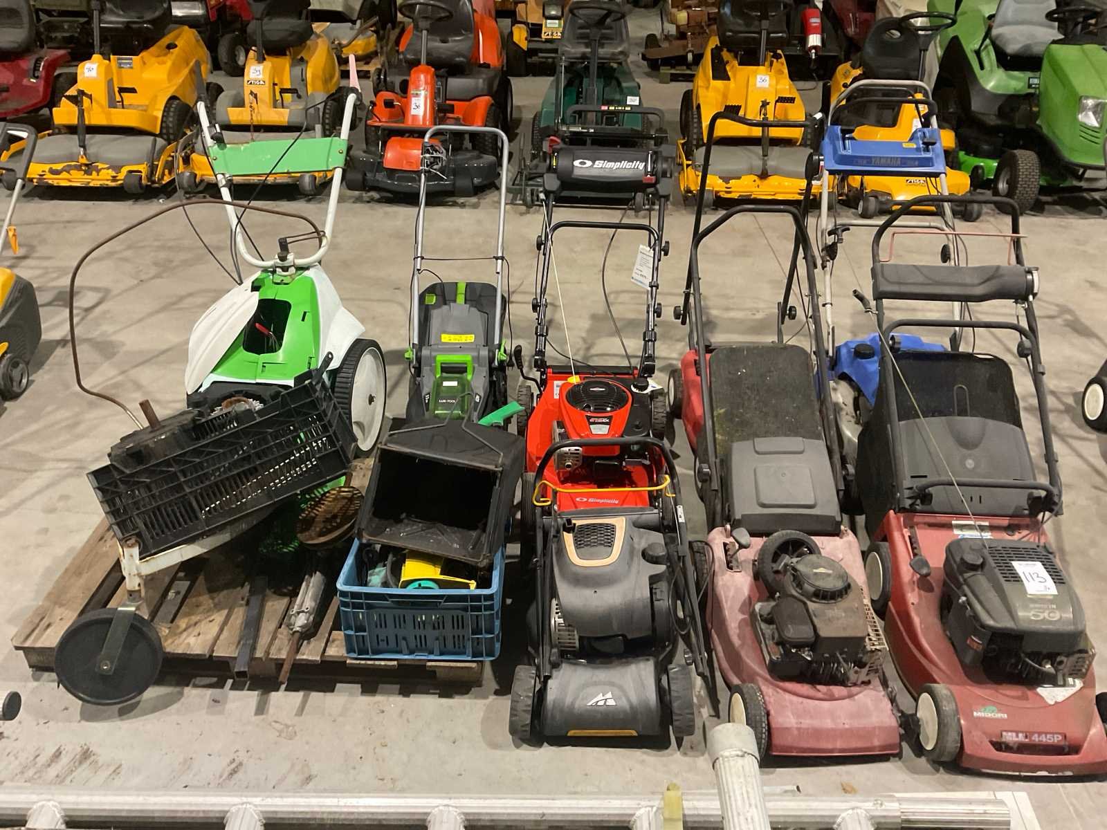 Diverse merken grasmaaiers waaronder Midori/Lux-Tools/Simplicity, deels zelfrijdend, deels met opvangbak. Betreffen inruilmachines. Benzinemotor: true Brandstof: Benzine