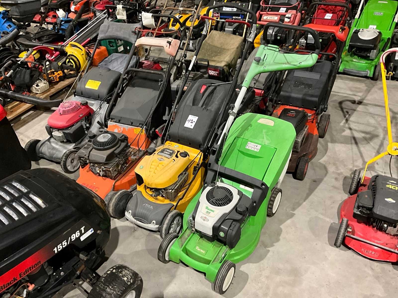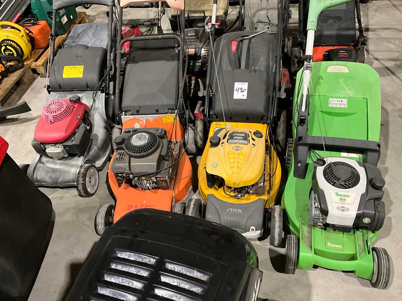 Diverse grasmaaiers waaronder Stiga/Honda/Efco/Toro/Viking, deels zelfrijdend, deels met opvangbak. Betreffen inruilmachines. Benzinemotor: true Brandstof: Benzine