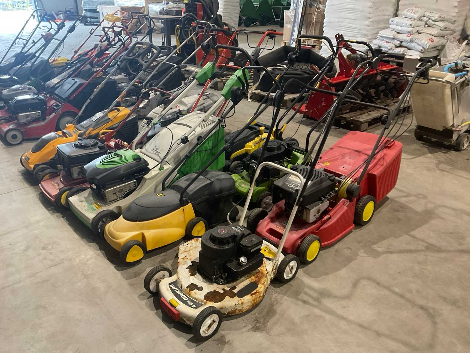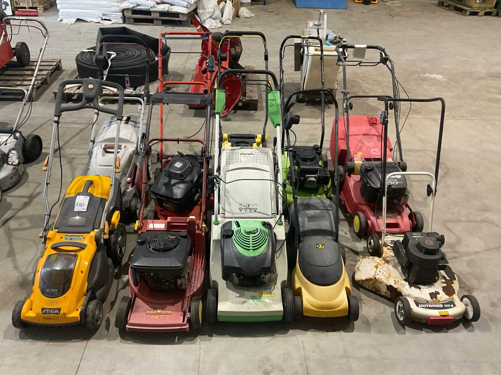 Diverse merken grasmaaiers waaronder Stiga/Sabo/Gutbrod/Wolf, deels zelfrijdend, deels met opvangbak. Betreffen inruilmachines. Benzinemotor: true Brandstof: Benzine