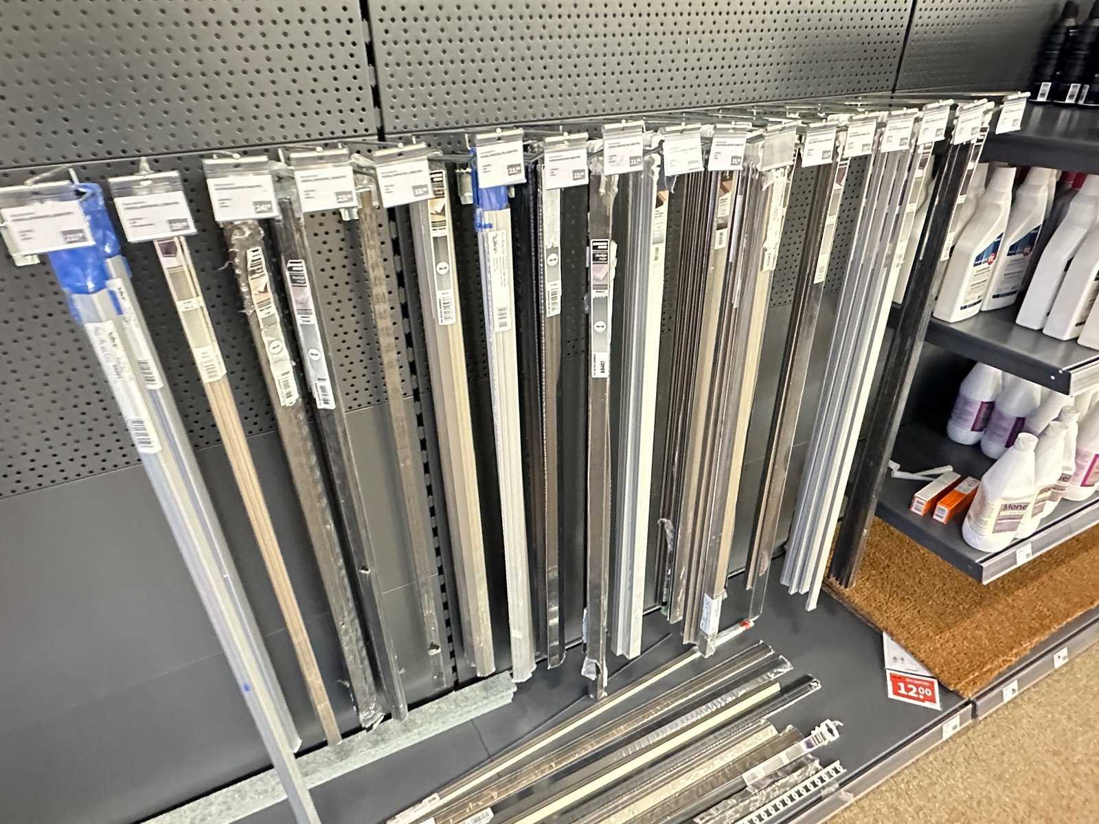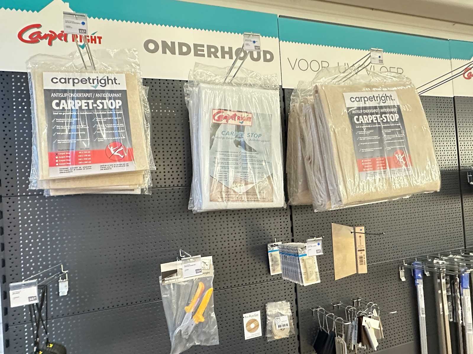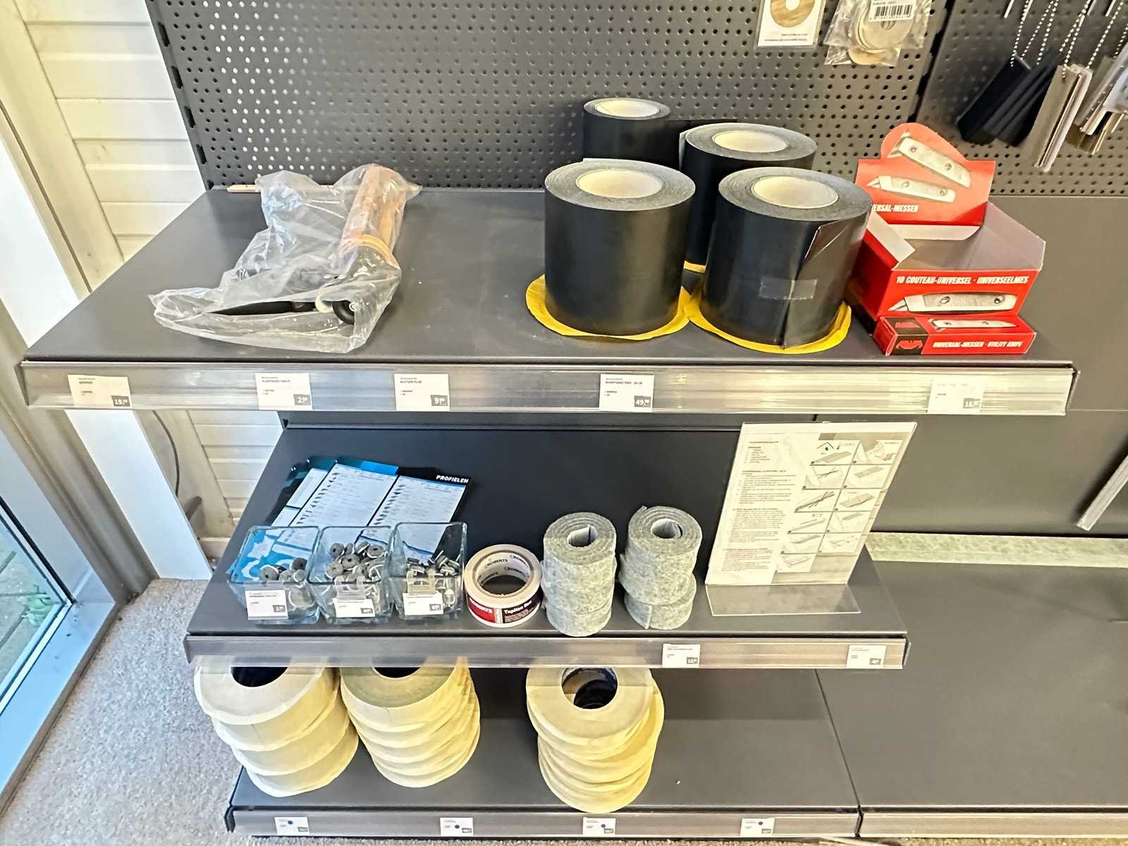 Deze partij bestaat uit plinten, ondervloeren, meubelviltjes en tape.