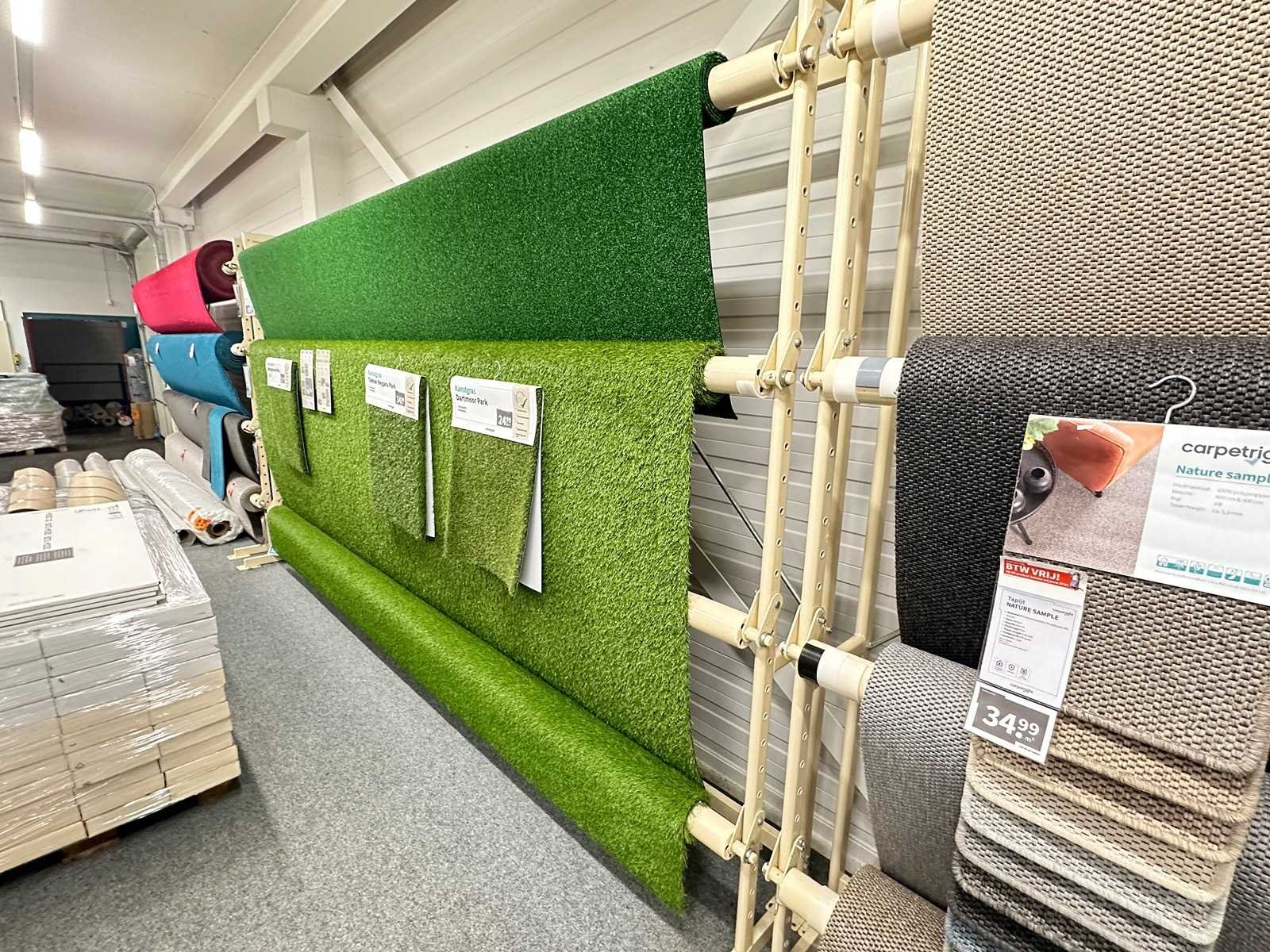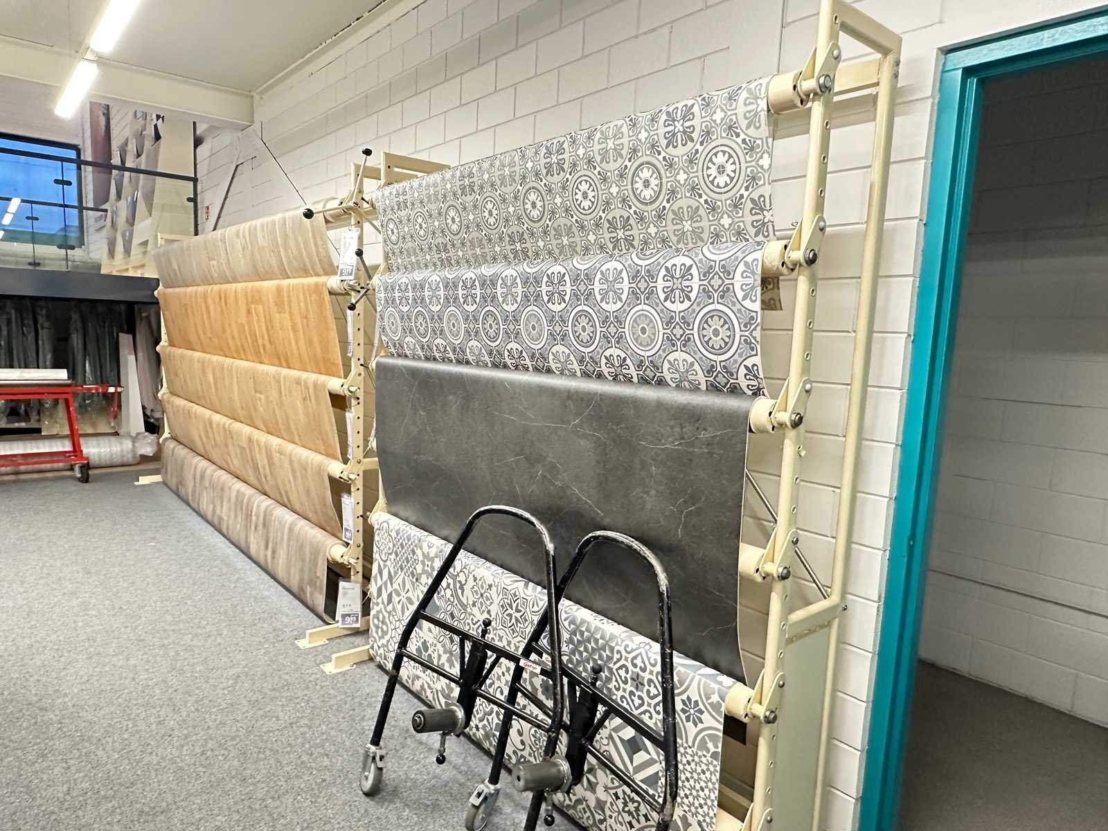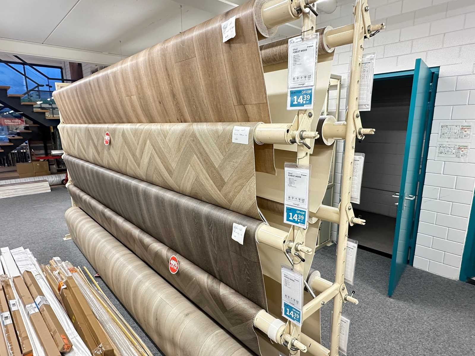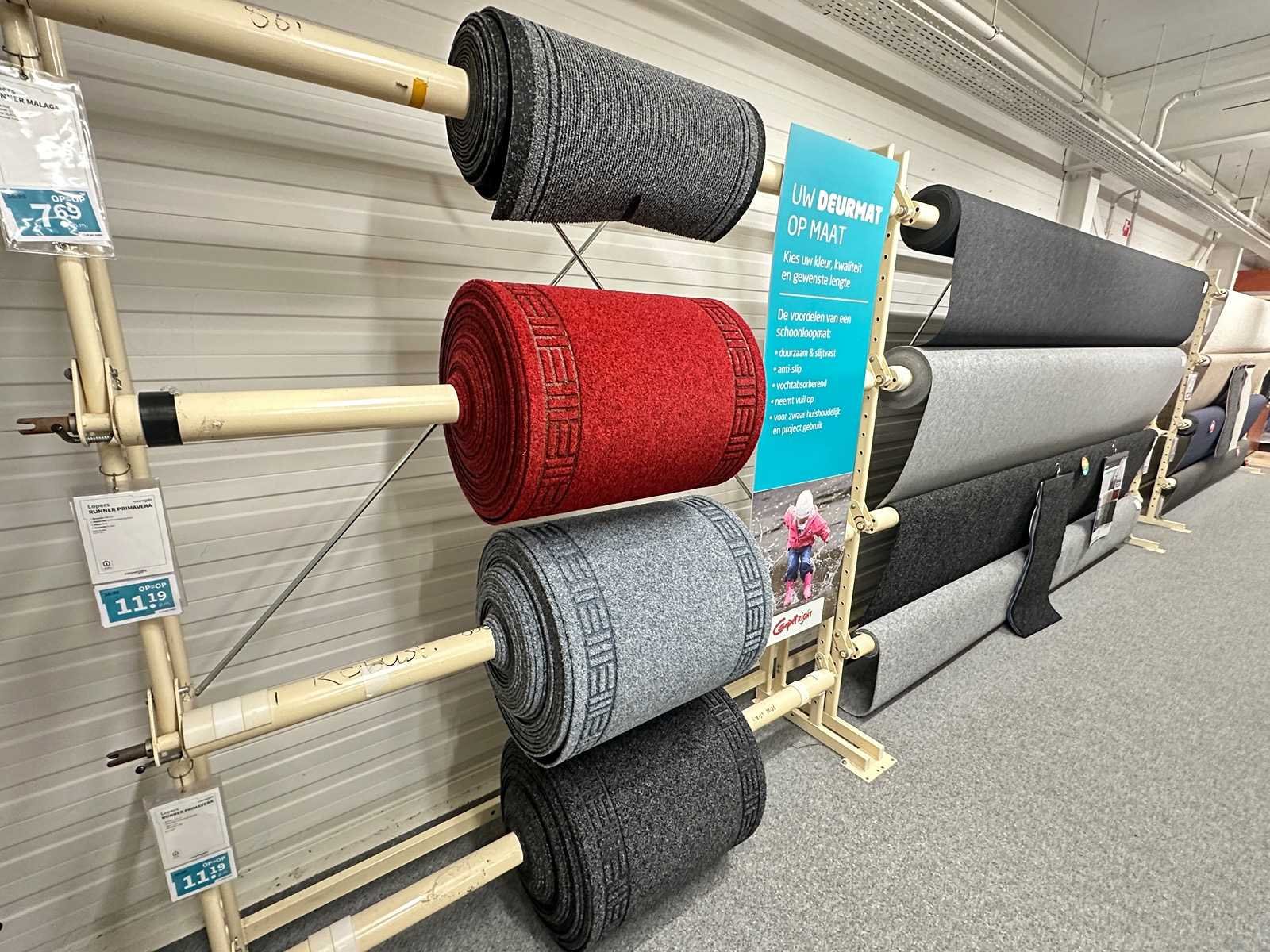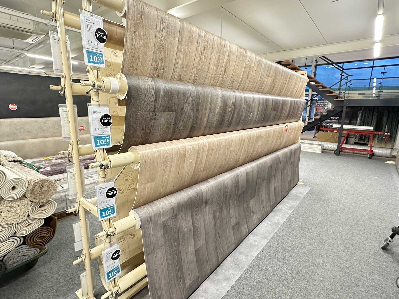 Deze partij bestaat uit diverse soorten vloerbedekking op 15 rekken. Verschillende afmetingen en kleuren. Exclusief rekken.