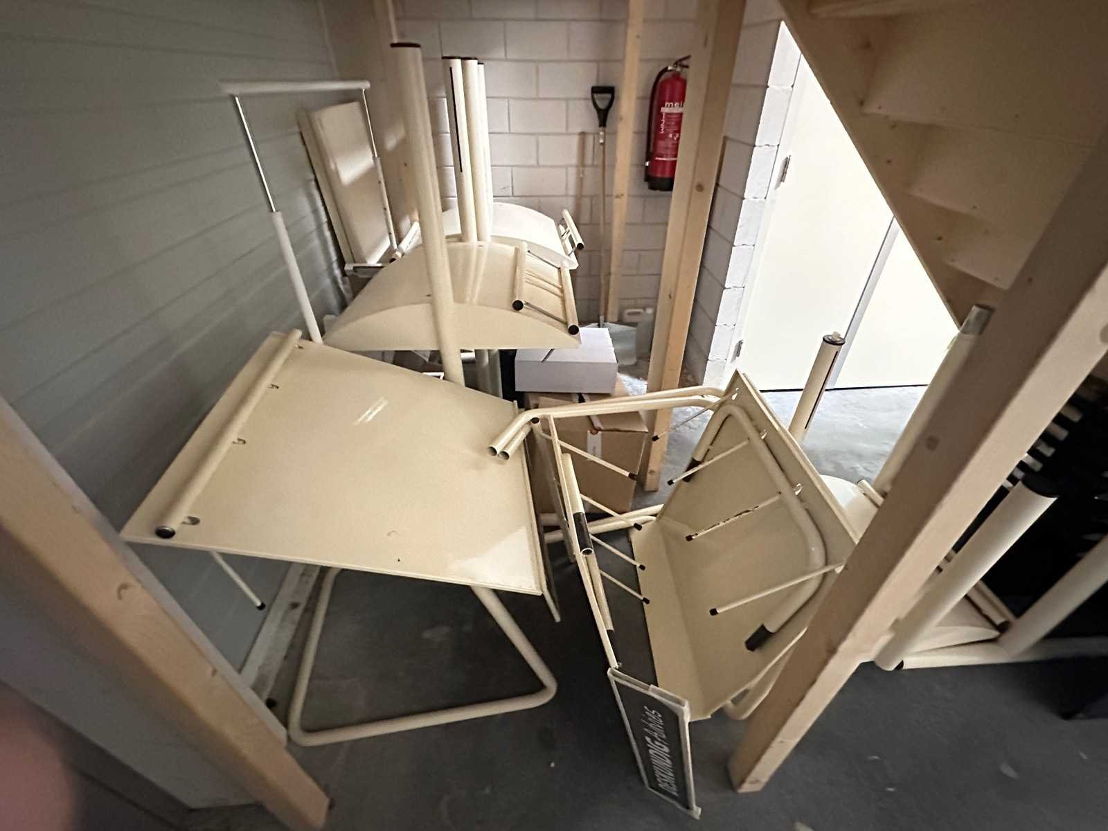 Deze vrijstaande meubels worden verkocht inclusief samples. 7 stuks staan in de winkel en de rest bevindt zich onder de trap. Lengte: 70cm Breedte: 83cm Hoogte: 150cm Materiaal: Staal