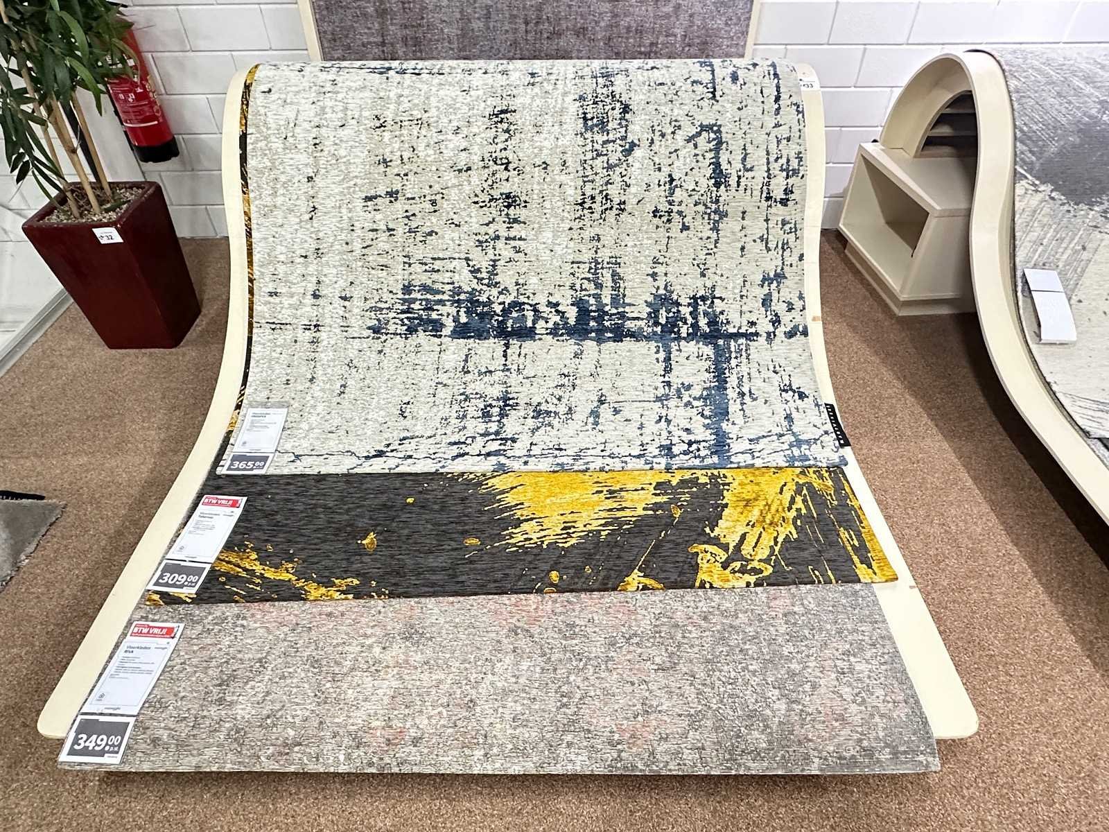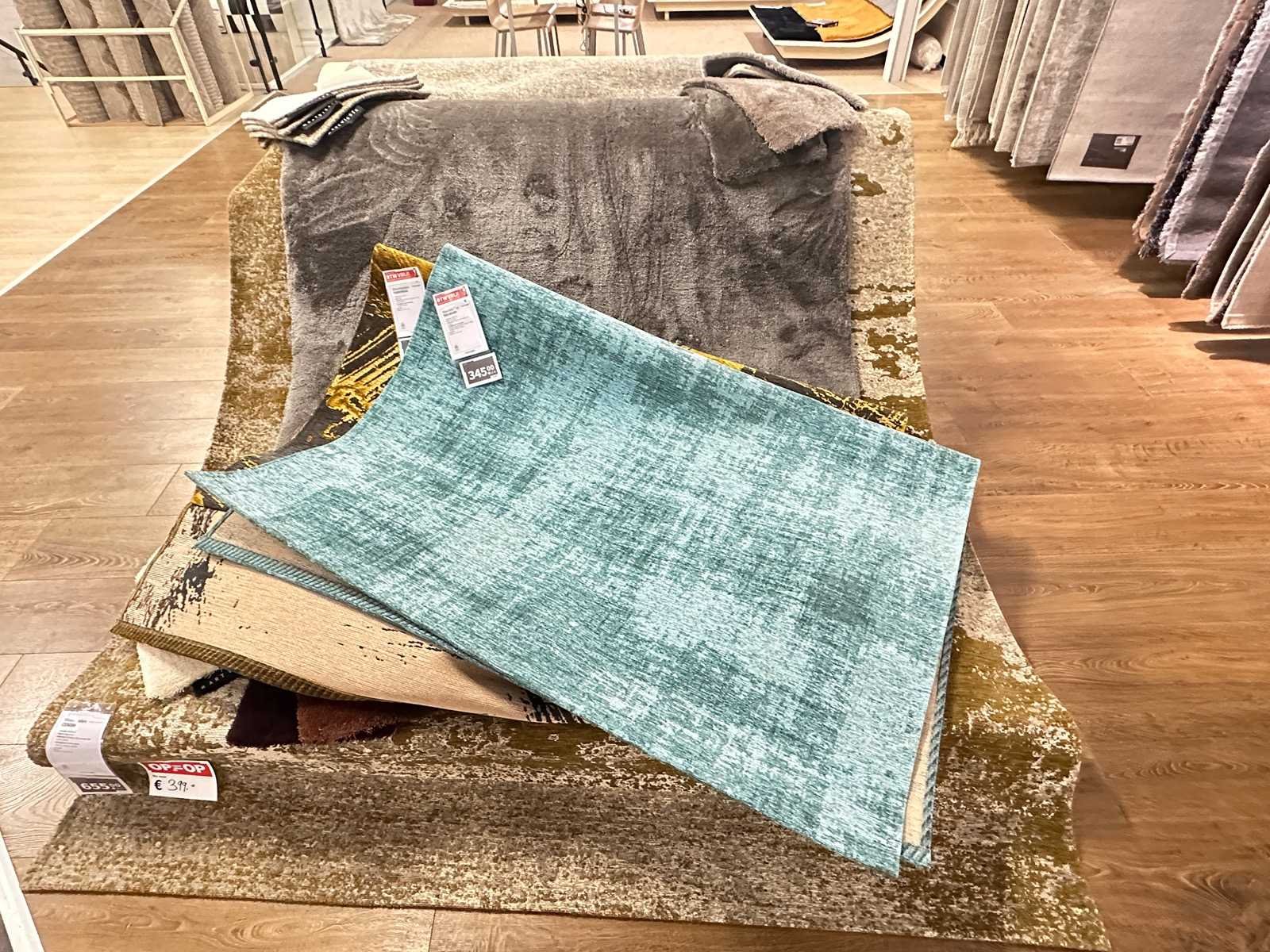 Dit betreft 15 verschillende vloerkleden in diverse afmetingen. Exclusief presentatiemeubel.