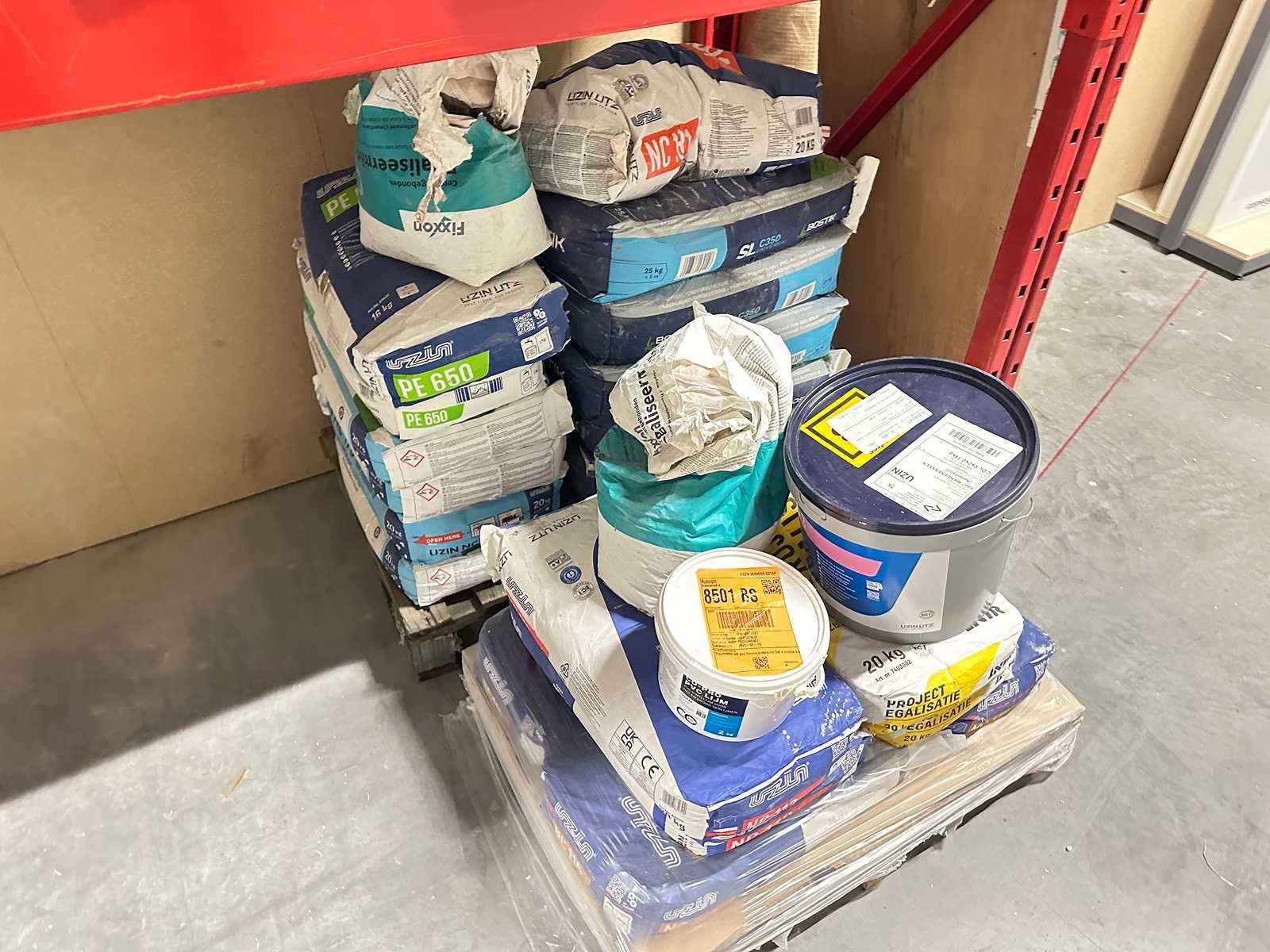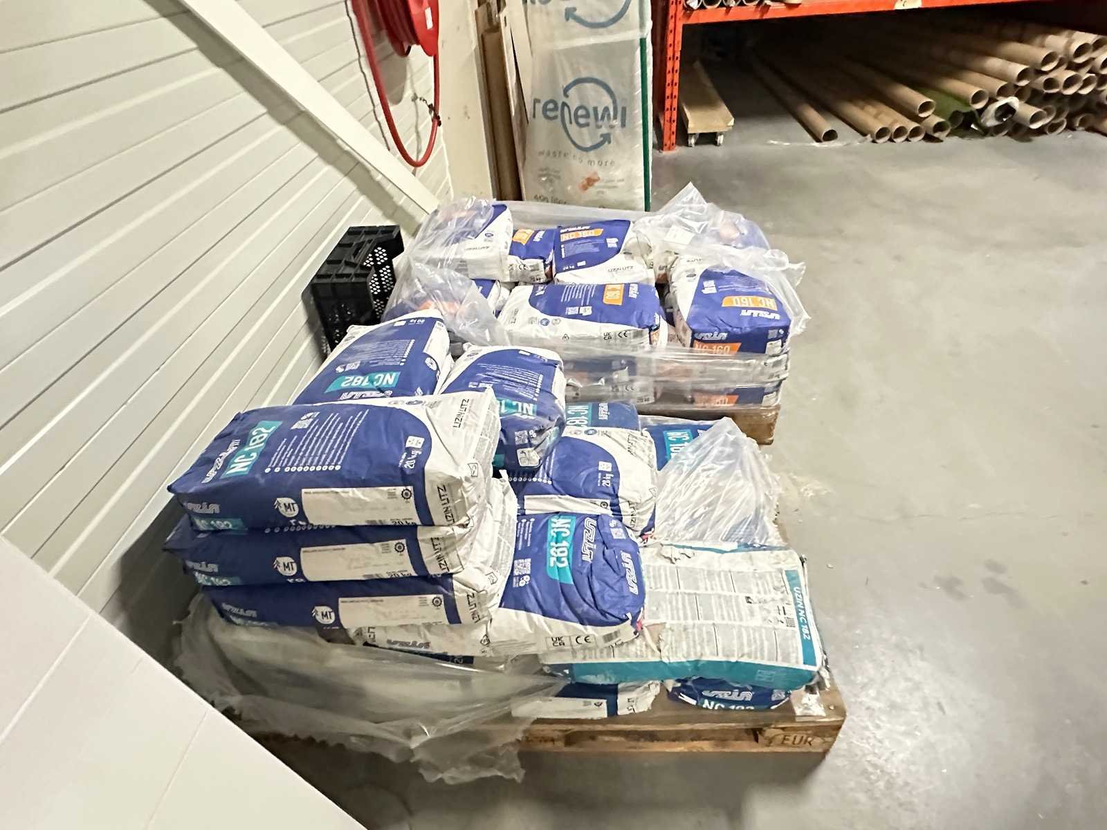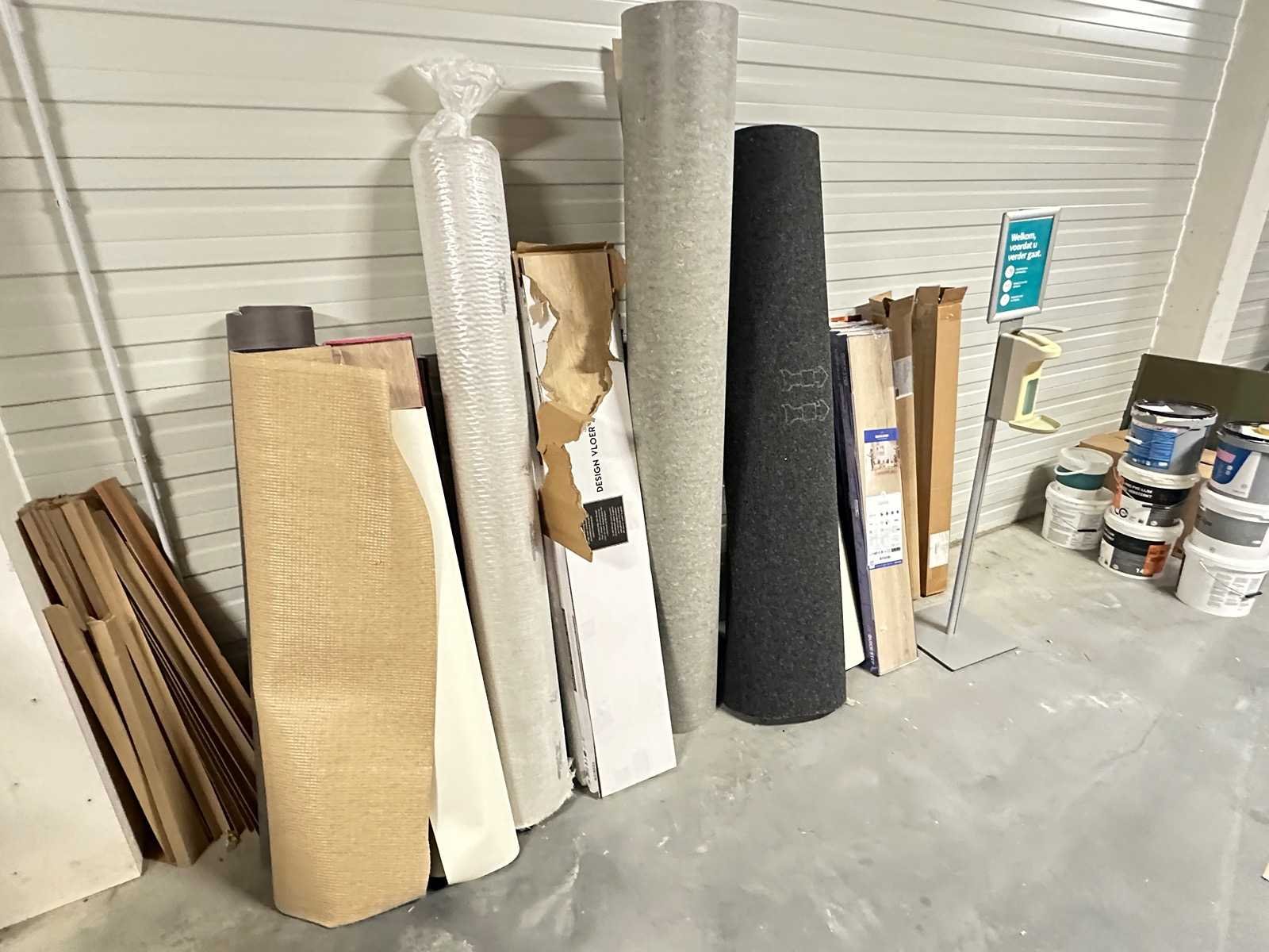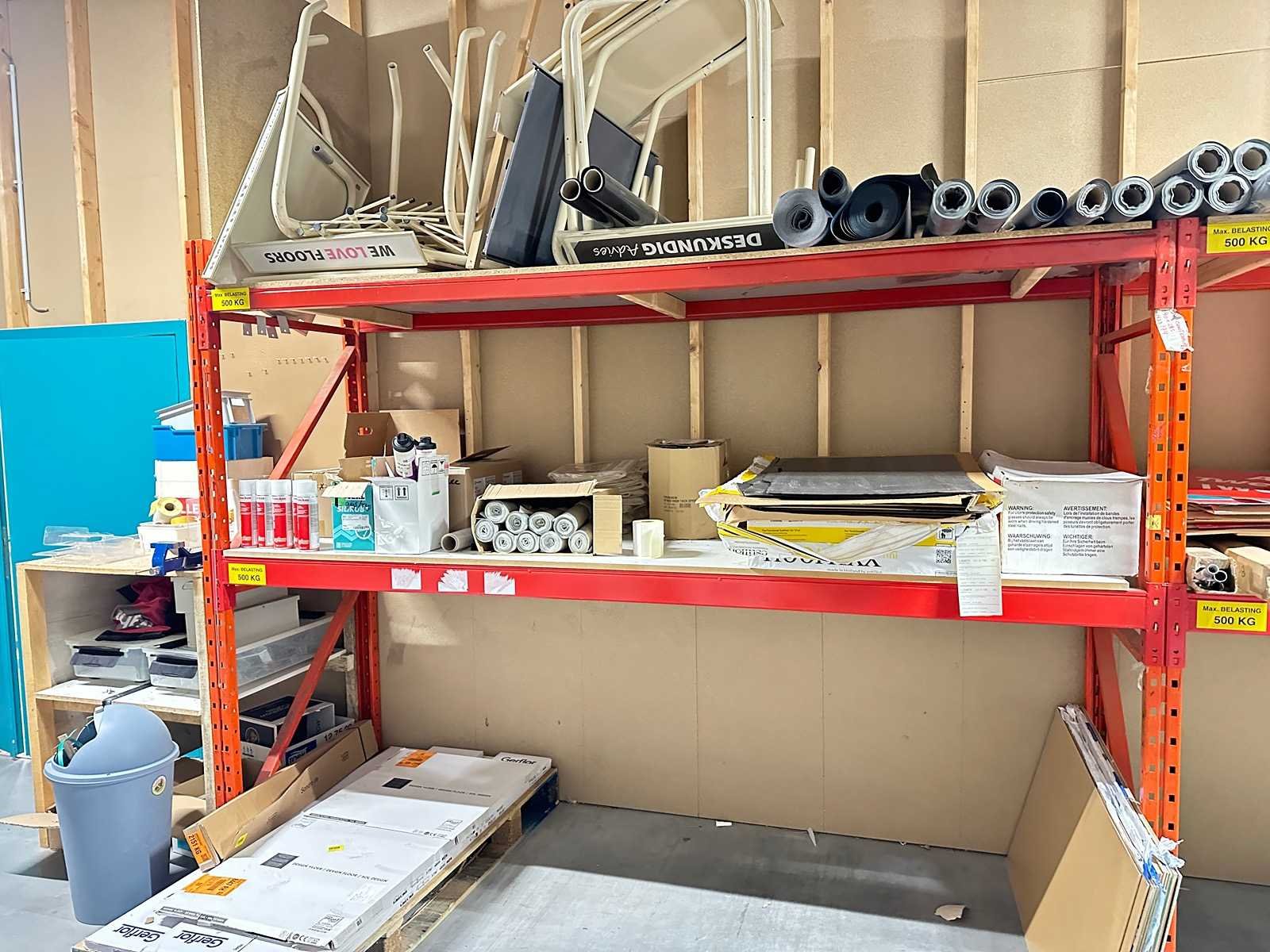 Exclusief stellingen. De inhoud bestaat uit plinten, montagemateriaal, vloerbedekking en ondervloeren.