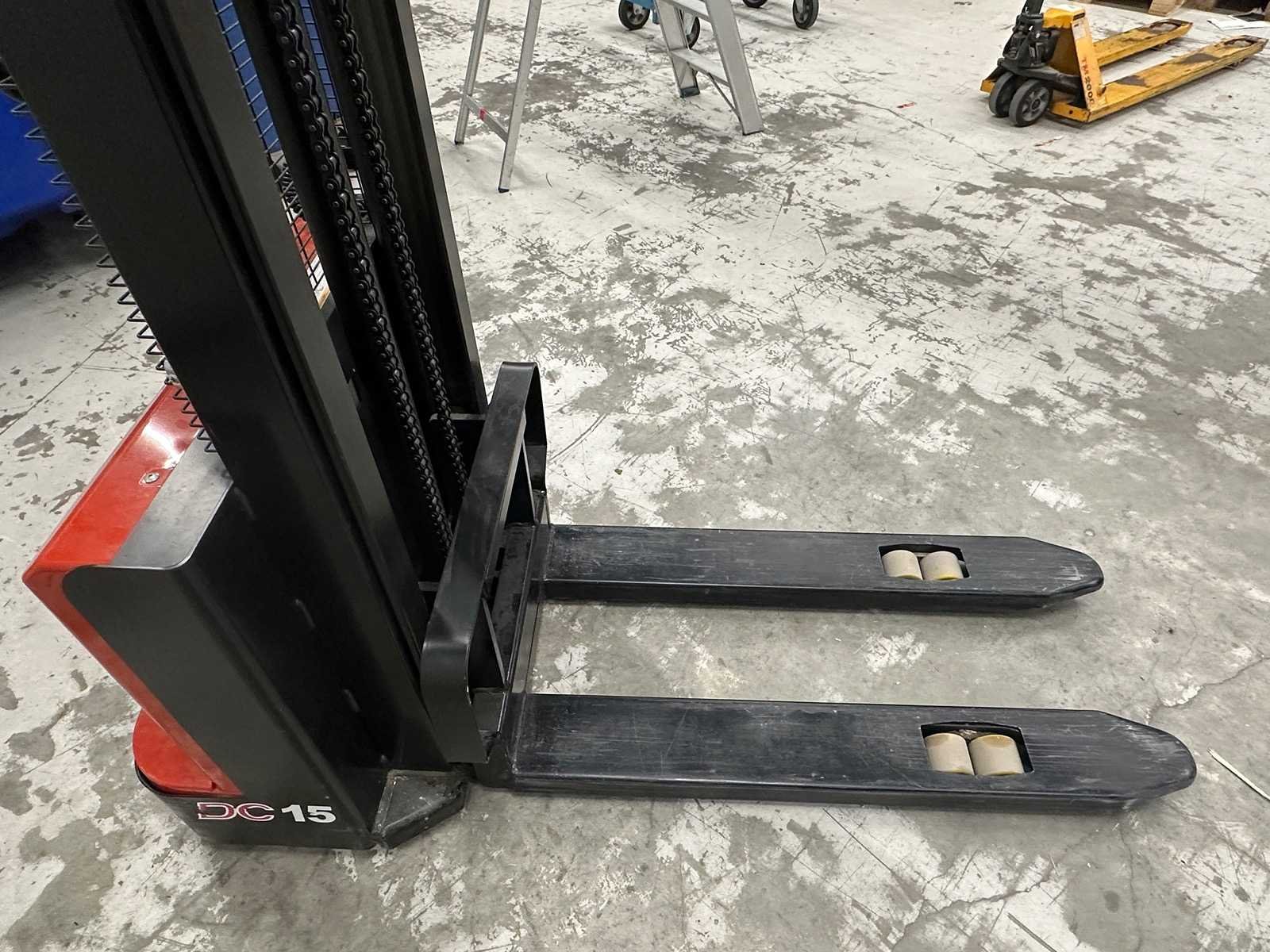 Voorzien van gelbatterijen en ingebouwde lader. Merk: Heli Type: CDD15J Bouwjaar: 2022 Serienummer: 08015JM7108 Hefvermogen: 1500kg Hefhoogte: 3000mm Lepellengte: 1140mm Afgelezen urenstand: 253 Eigen gewicht: 450kg Meerij stapelaar: false