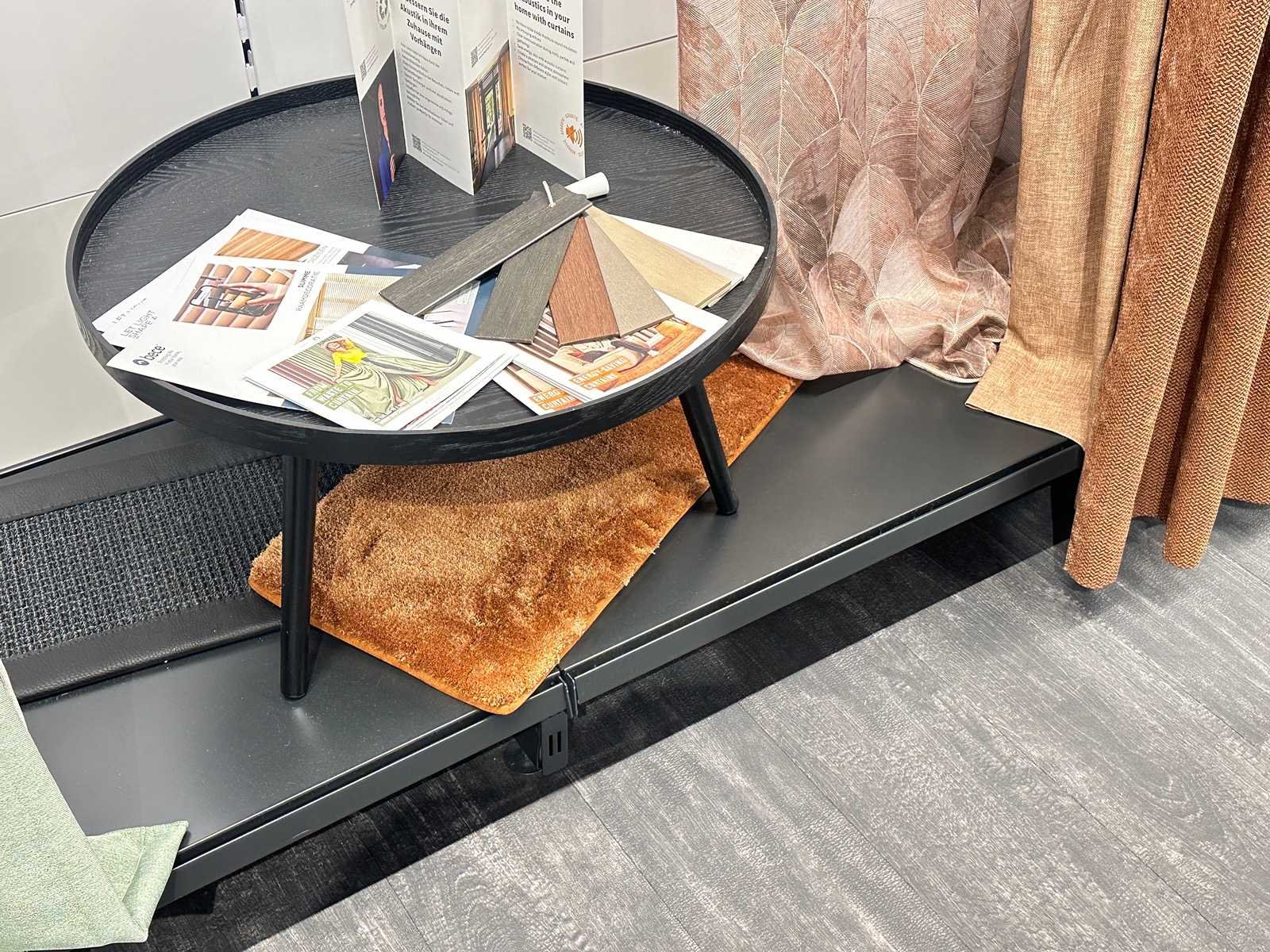 Deze wand staat in een hoekopstelling en bestaat uit 14 delen van 1 meter. De delen zijn demontabel. Inclusief stalen en monsters. Afmeting l: 1400mm Afmeting b: 750mm Afmeting h: 2700mm Hout: true Staal: true