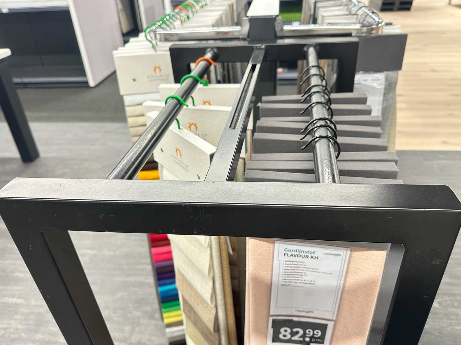 Exclusief hangers met voorbeelden. De afmeting van het losse stelen rek wat bij dit kavel hoort is 65x44x140 cm. Totale afmeting L: 2030mm Totale afmeting Breedte: 600mm Totale afmeting Hoogte: 1430mm