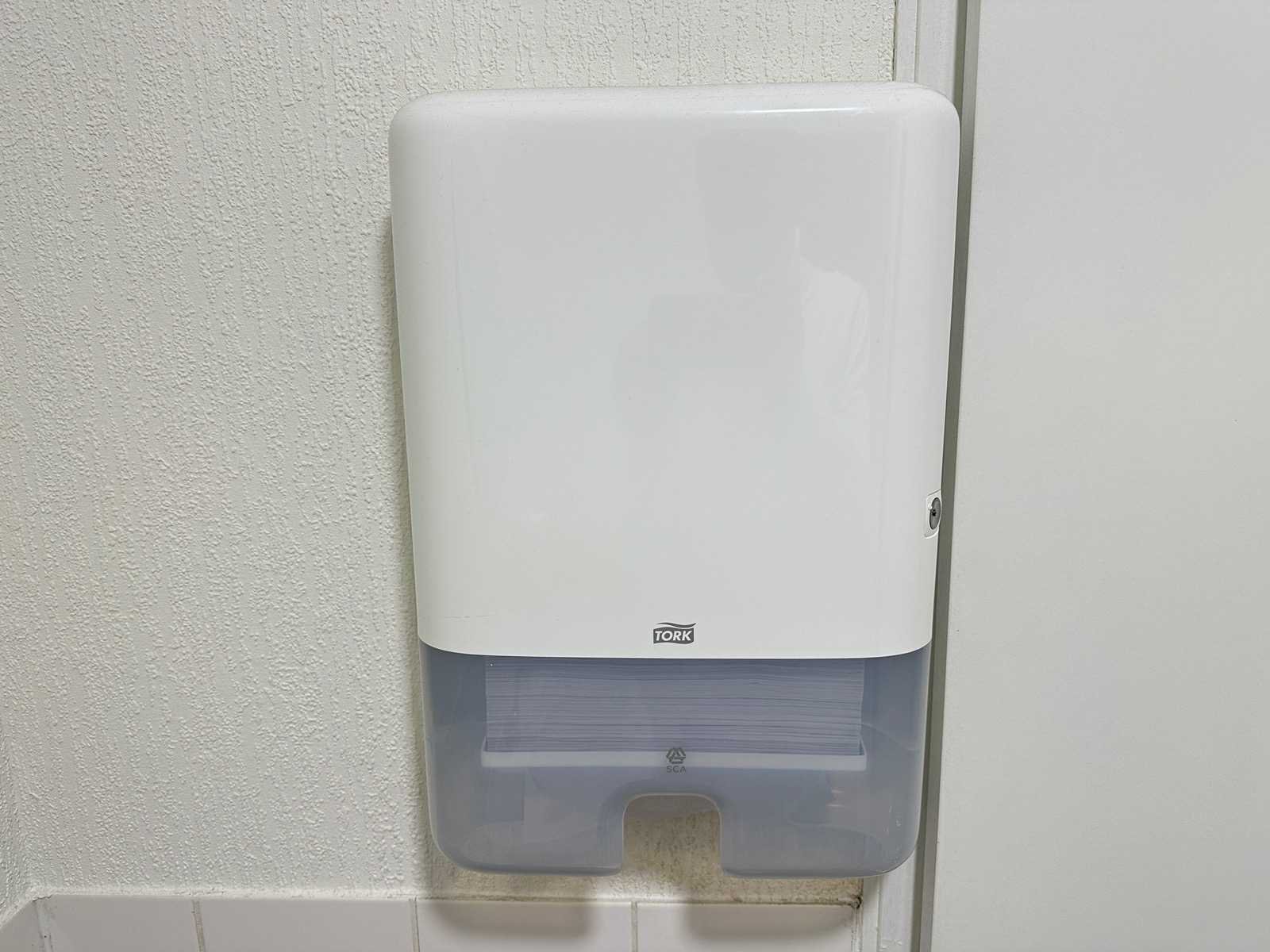 Deze set bestaat uit 2 handdoekdispensers, 2 papierdispensers en 2 zeepdispensers. De sleutels ontbreken. Merk: Tork