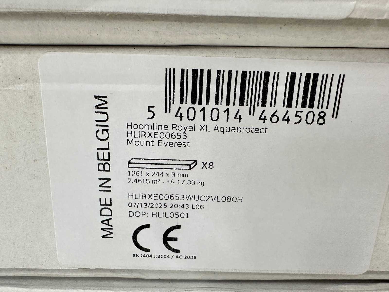 25 verpakkingen met 8 planken, 2,46 m2. Totaal 61,5 m2 Merk: Homeline Royal Model: XL Aquaprotect
