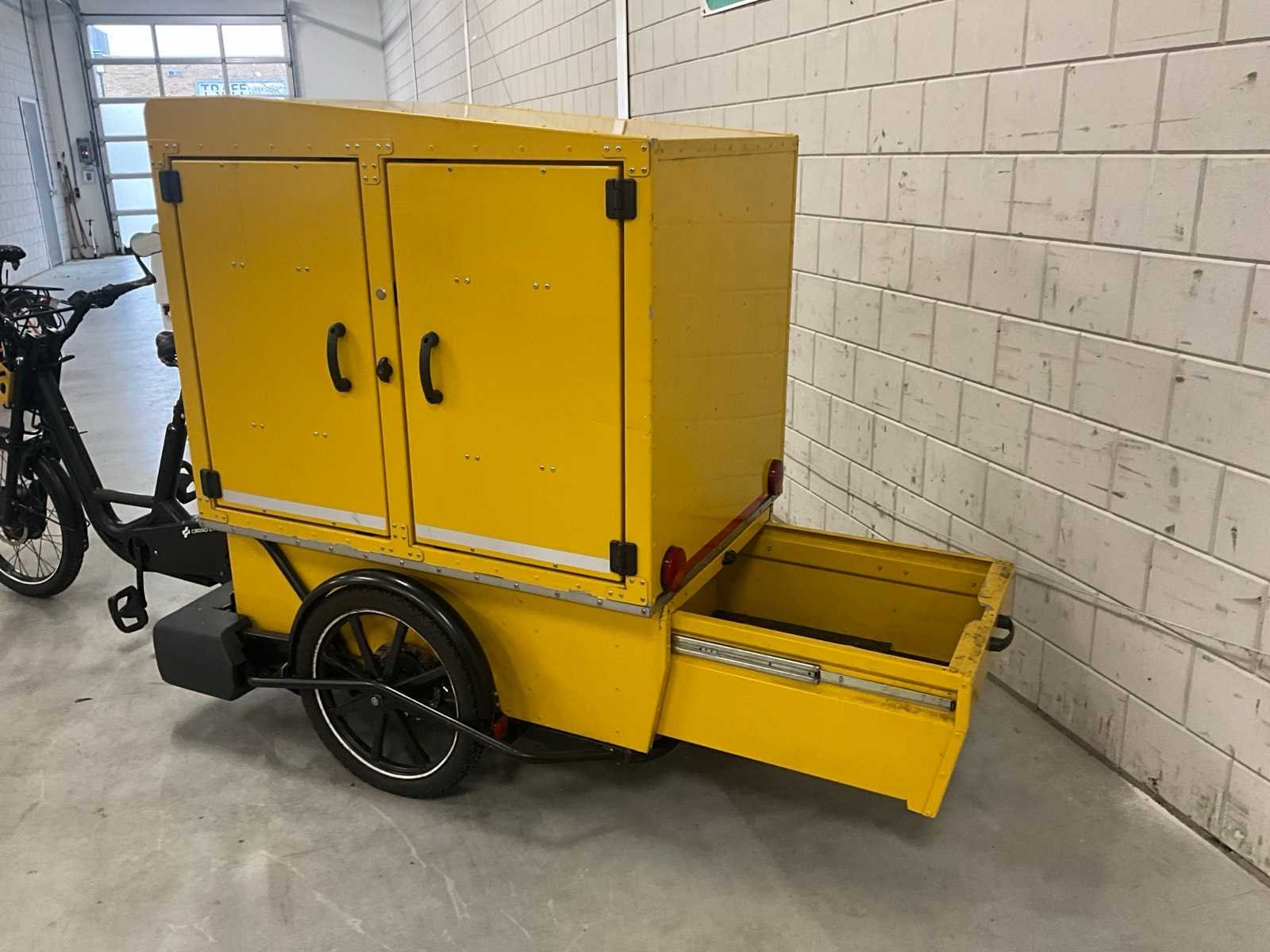 Bakinhoud: 1500 liter, laadvermogen 200Kg, afmeting laadbak 133x85x115cm, greenpack accu 1400Wh, kilometerstand 13992km. Merk: Nijland Model: Cargo Cycling Chariot Frame type: Uni Motorpositie: Voor Remsysteem: Hydraulisch Zadelvering: true Versnellingen: 7 Lengte: 315cm Breedte: 95cm Hoogte: 160cm