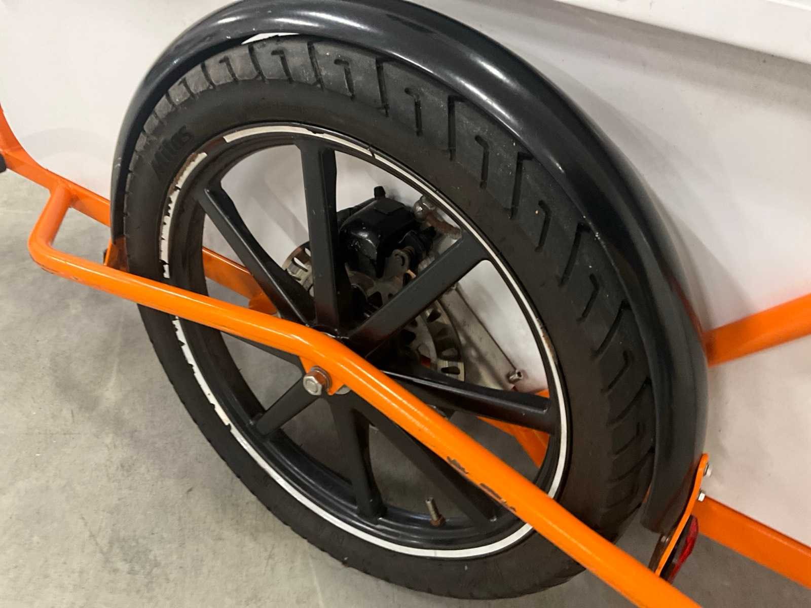 Bakinhoud: 1000 liter, laadvermogen 200Kg, afmeting laadbak 120x85x90cm, Greenpack 1400Wh. Merk: Nijland Model: Cargo Cycling Clarion Frame type: Uni Motorpositie: Achter Remsysteem: Hydraulisch Lengte: 235cm Breedte: 100cm Hoogte: 120cm